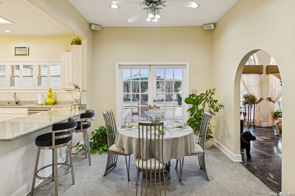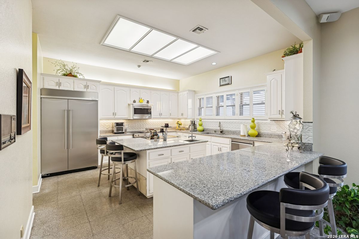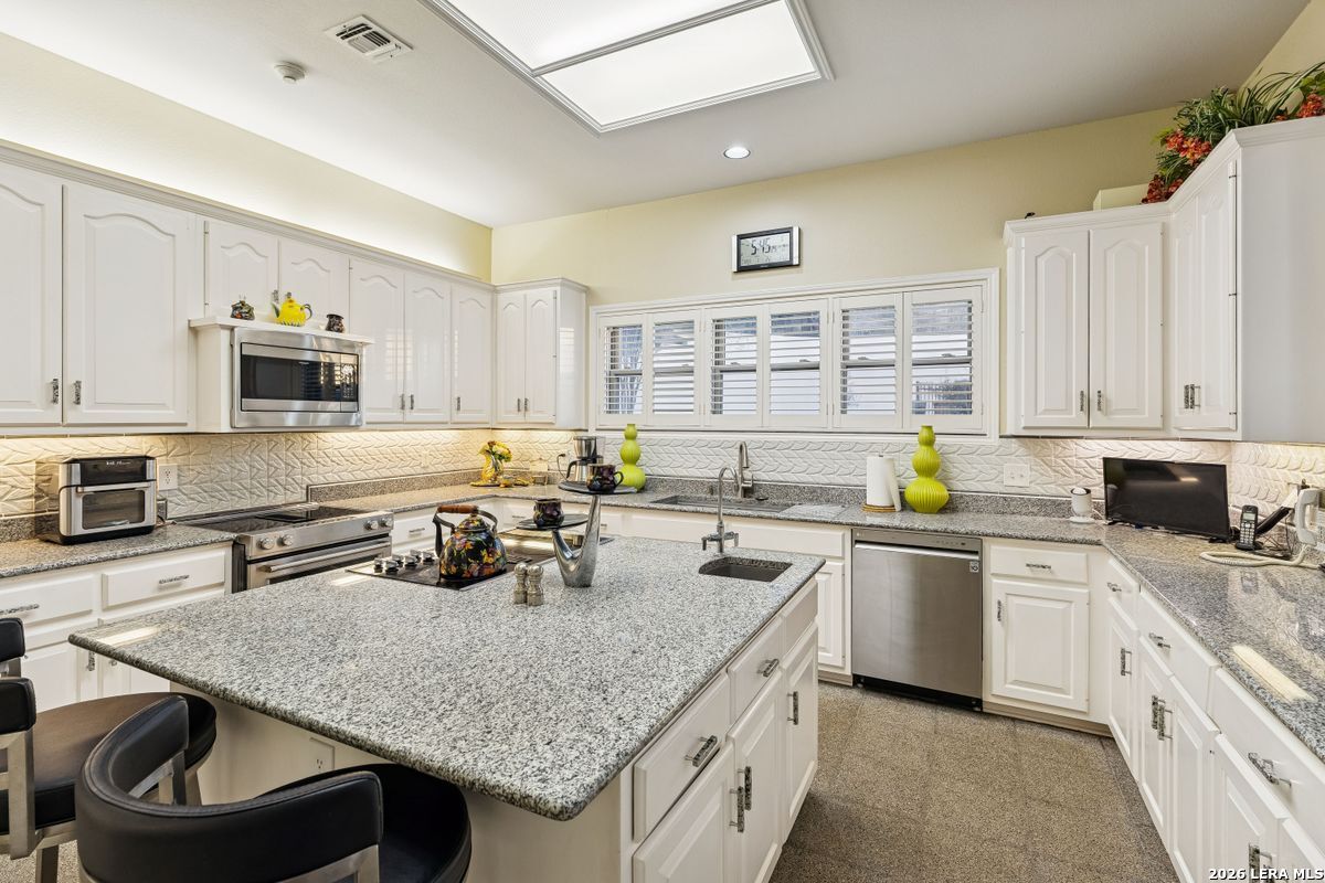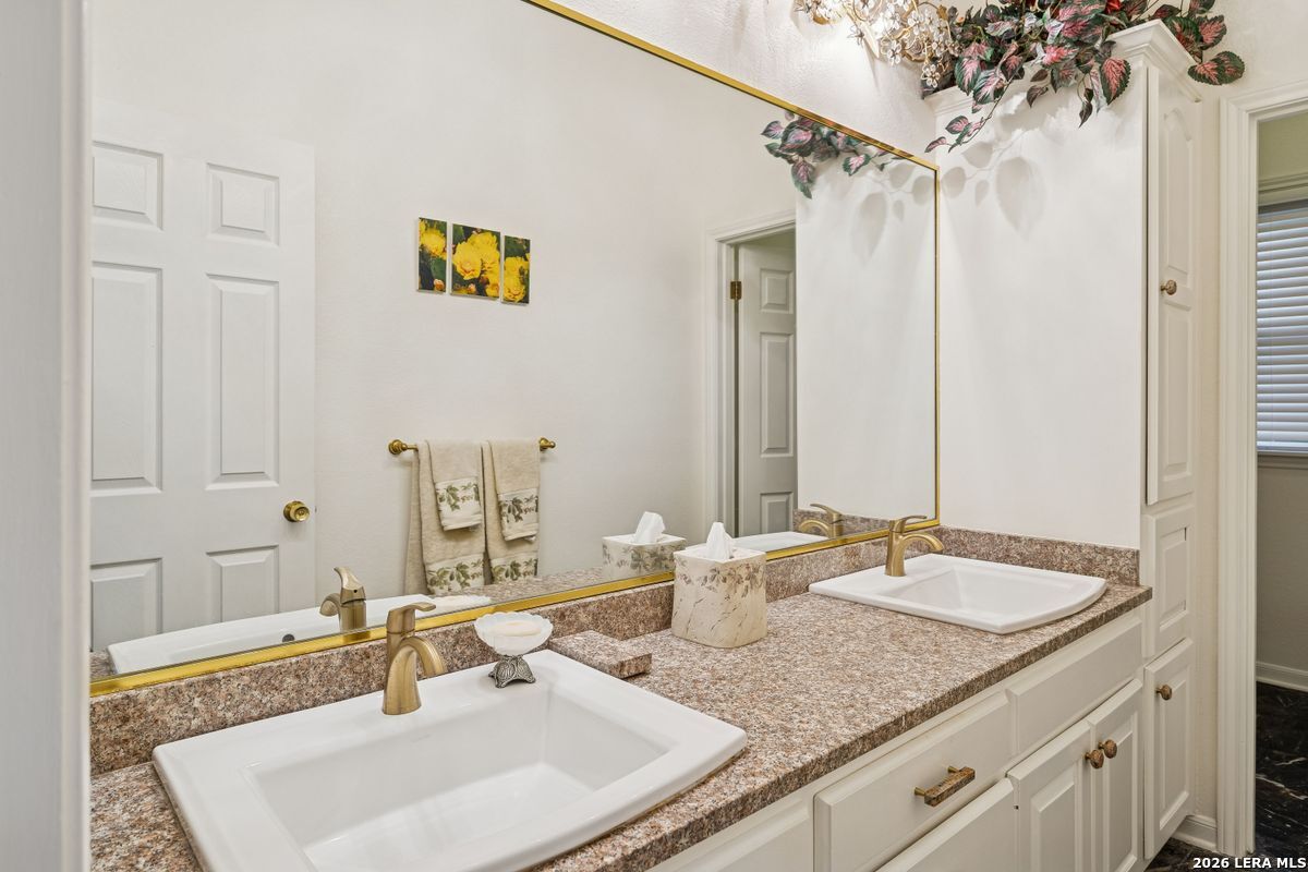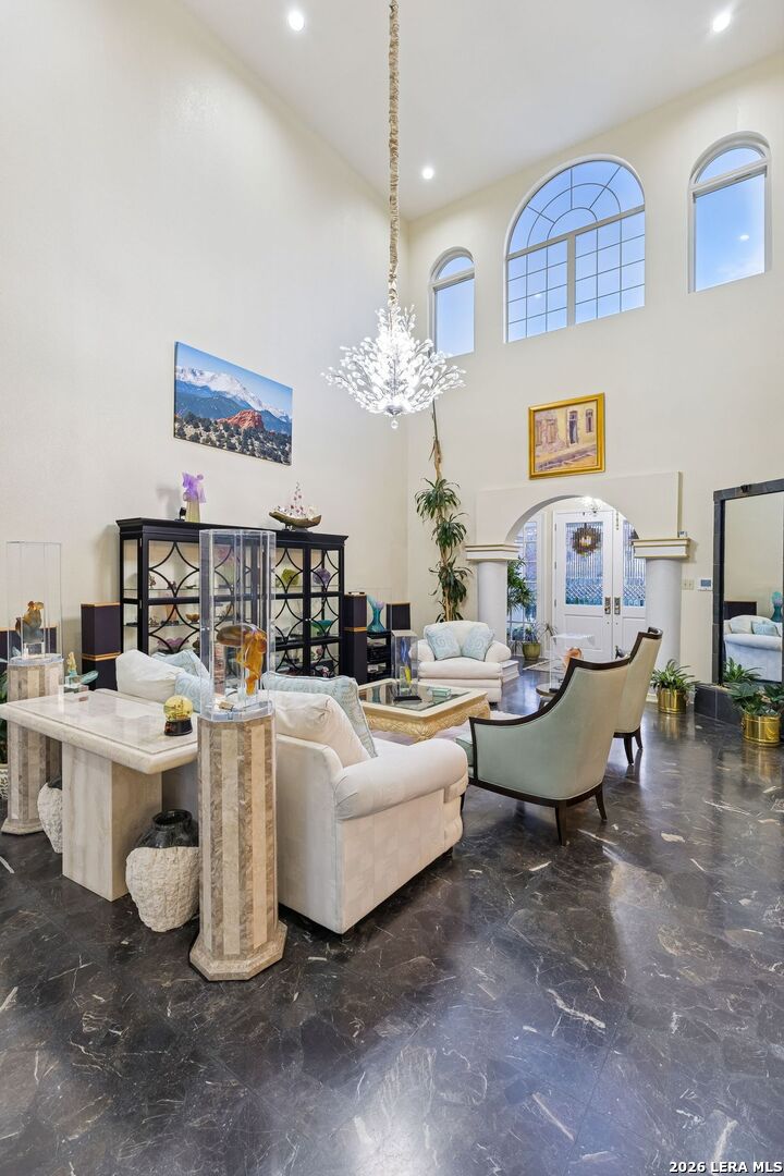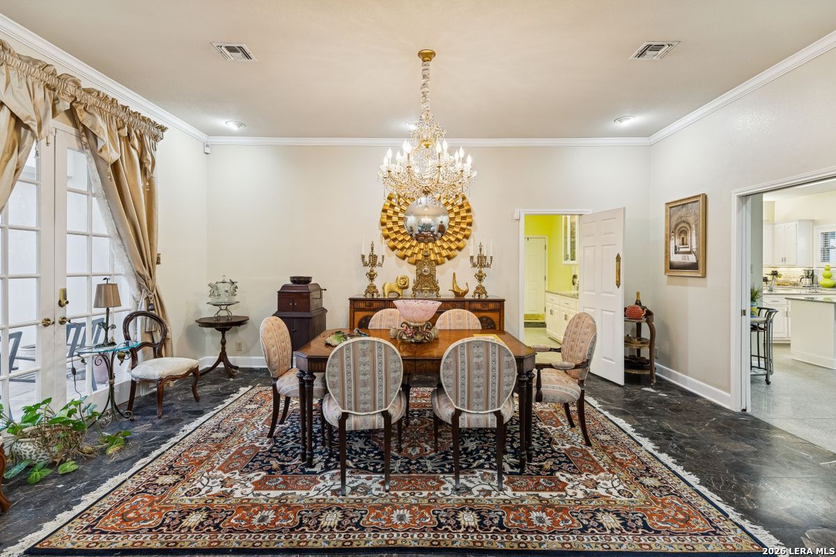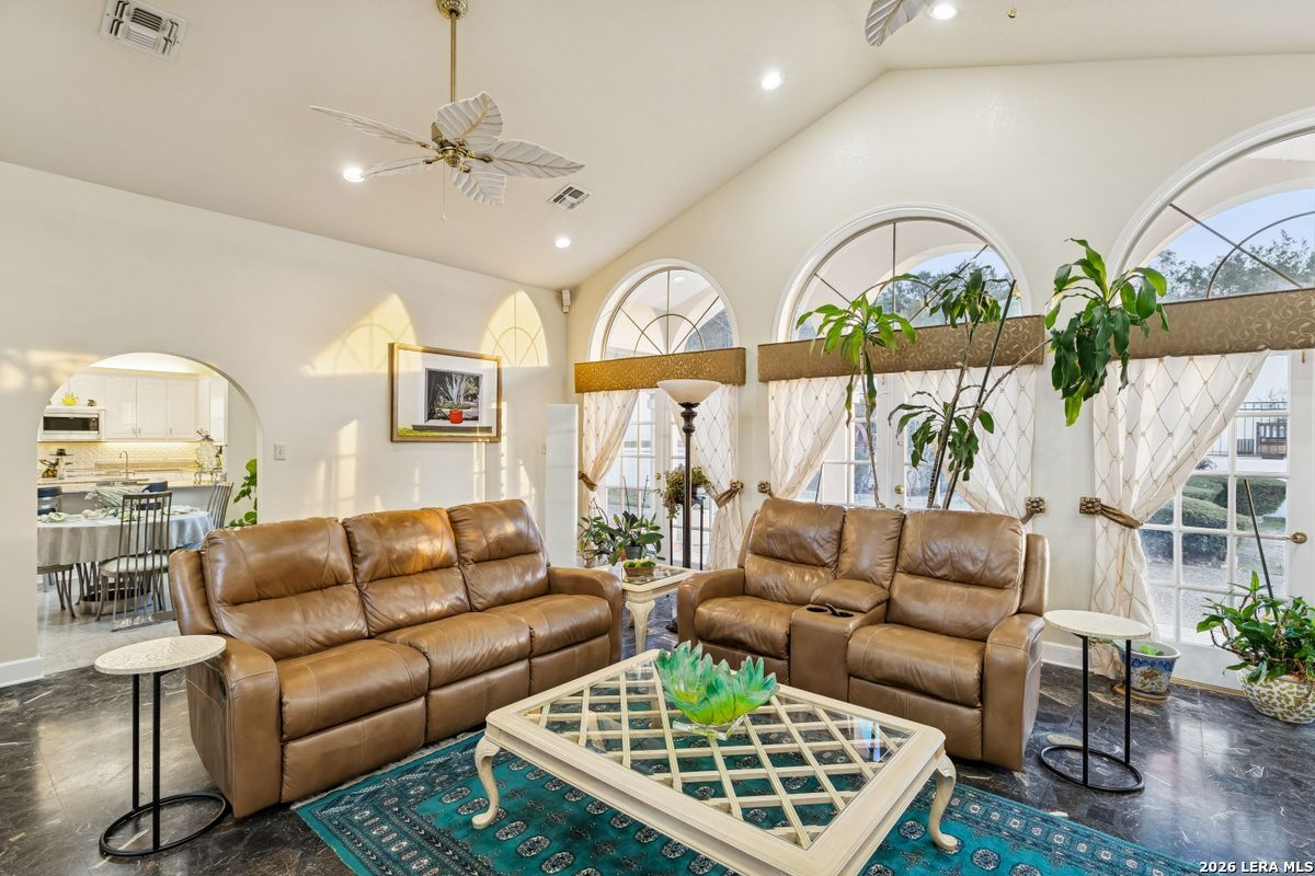 Showings Begin on Saturday 1/31/26 at 9 AM. Exquisite single-story home located in The Dominion. The breathtaking two-story foyer sets the tone for the grandeur of the home. The formal living and dining areas boast refined finishes and ample natural light. In the heart of the home, the expansive family room showcases a full bar and flows into the chef's kitchen, equipped with KitchenAid and JennAir appliances, an oversized island and a separate informal dining area. The butler's pantry is a perfect addition for entertaining guests and large family gatherings. Views of the parklike back yard, as well as outdoor access, are enjoyed from both the kitchen and family room. Completing the home is a study, with beautiful custom shelving, and three spacious bedrooms, in addition to the Primary Suite. Within the primary suite is a fireplace, a generous custom closet and a spa like bath equipped with a soaking tub, walk-in shower, and a steam shower. The oversized three car garage provides ample parking and storage for all members of the family! This exceptional home is the perfect blend of sophistication and comfort with the opportunity to customize it as your own!