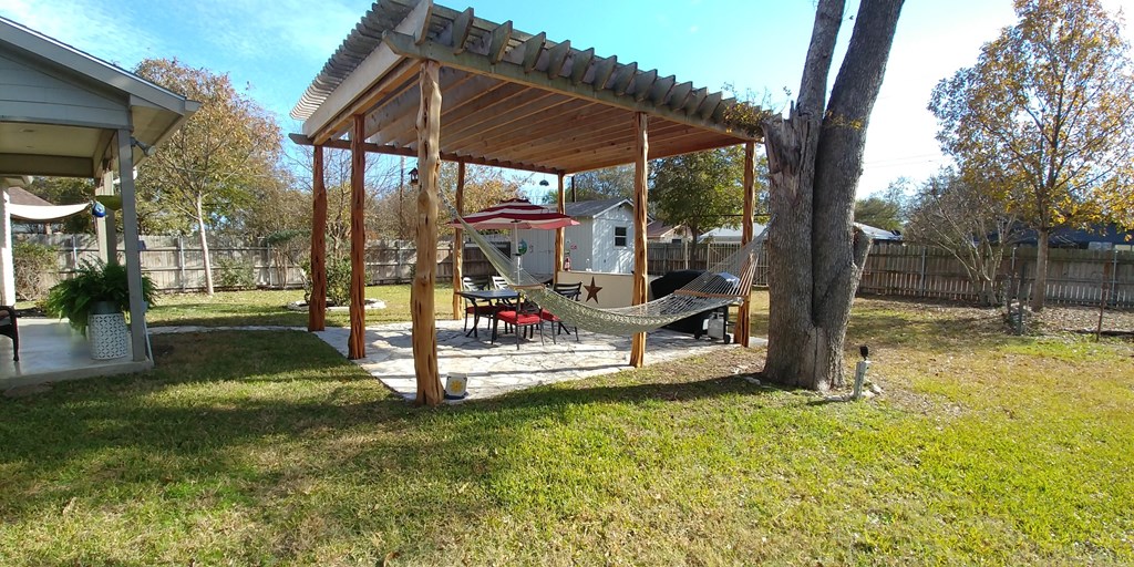 Lots of updates in this move in ready 3 bedroom , 2 bath home with fenced back yard, nice storage shed with Electric and a Pergola for entertaining ! Large master with jetted tub ! Updates that were completed within the last year include :Plantation Shutters, roof on home and shed, gutters, flooring , appliances, paint, granite kitchen sink, trees professionally trimmed and doctored and fresh paint on driveway and side walk ! 3rd bedroom used as office ! Wrought Iron Fence in front with Huge Oak Tree and Landscaped yard ! Lots of pride of ownership ! A must see !