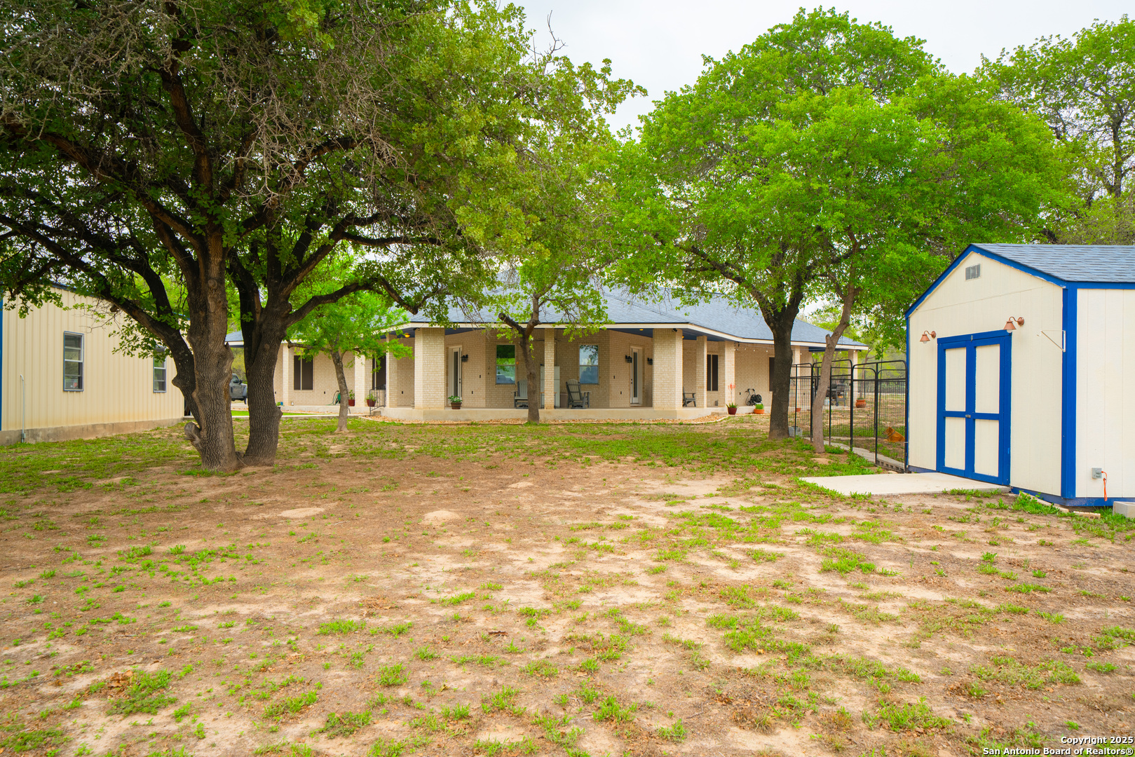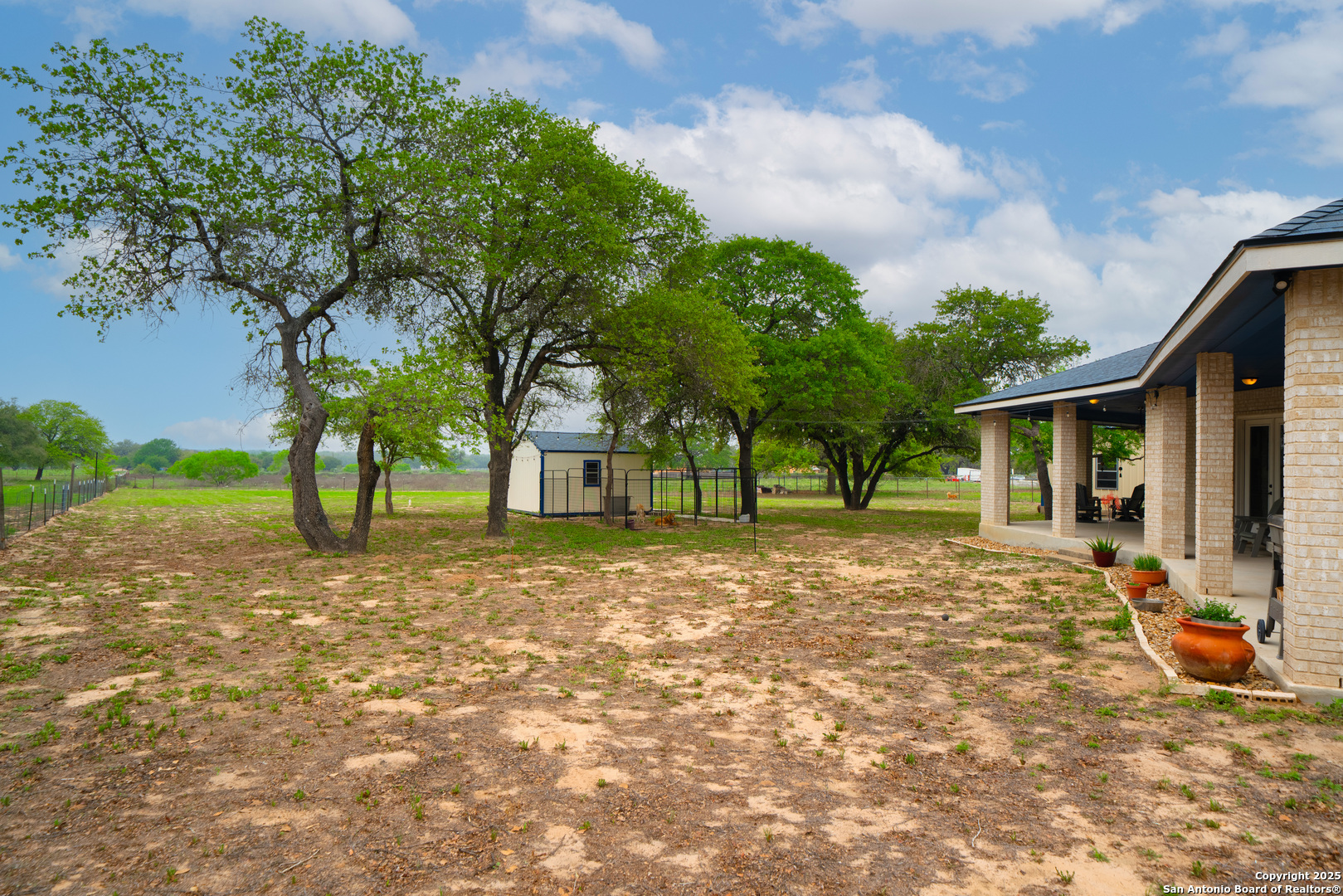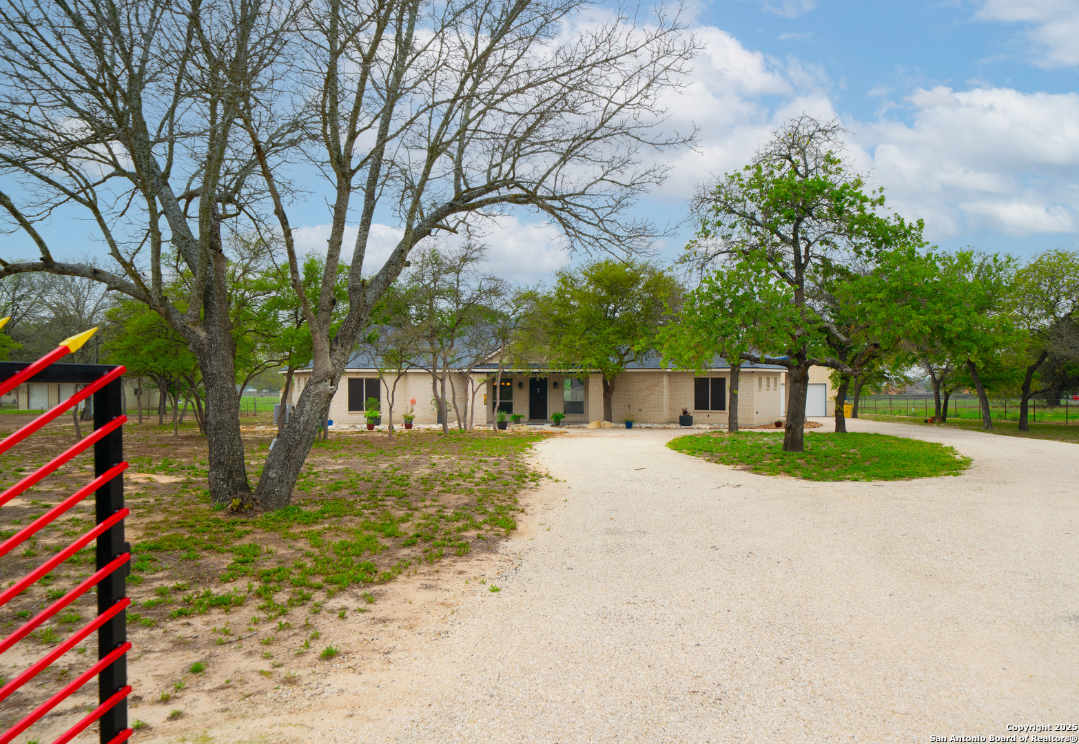 Drive through the private gate up the circular driveway to this stunning all-brick home, perfectly situated on a 1.93-acre fully fenced property with an electric gate and a wraparound covered patio, offering the perfect blend of privacy and space. Inside, the split floor plan features two large bedrooms and two bathrooms, along with an oversized shop that makes for a fantastic garage or workshop. The spacious open-concept living and dining area flows seamlessly into the large kitchen, which boasts stainless steel appliances, granite countertops, and a stylish glass tile backsplash. Outside, the property includes a dog kennel, storage shed, and security lights, providing both convenience and functionality. Located just minutes from HEB, dining, and shopping, with a short drive to Natalia, Devine and Lytle, and only 30 minutes from San Antonio, this home offers the perfect balance of country living with city conveniences. Don't miss out on this impeccably maintained property-schedule your showing today!