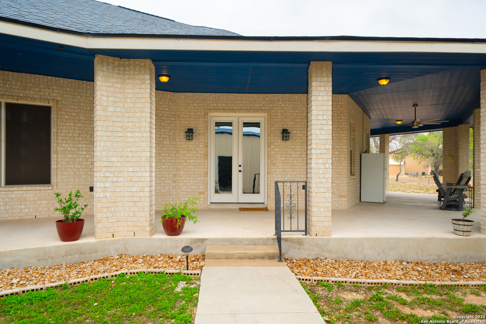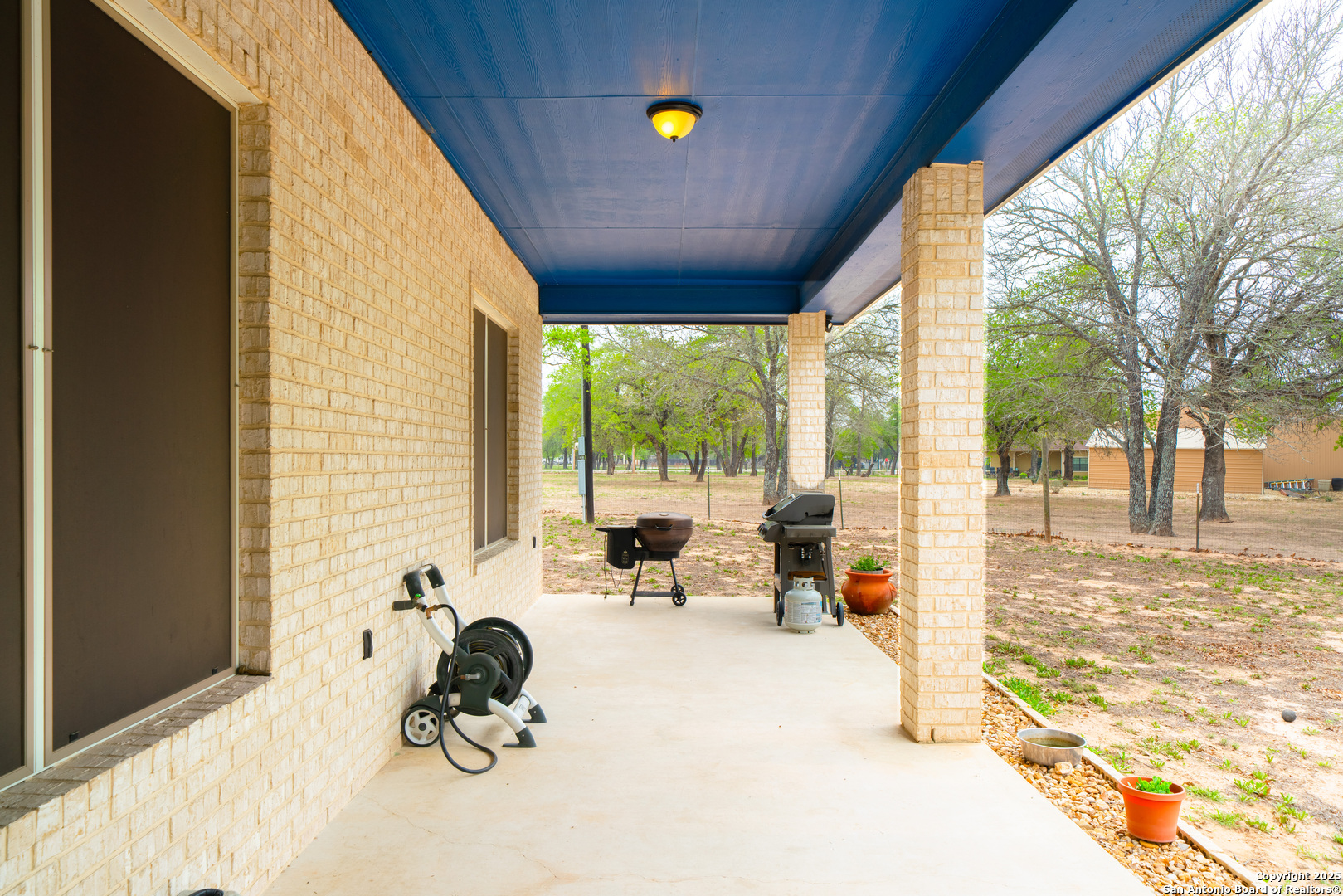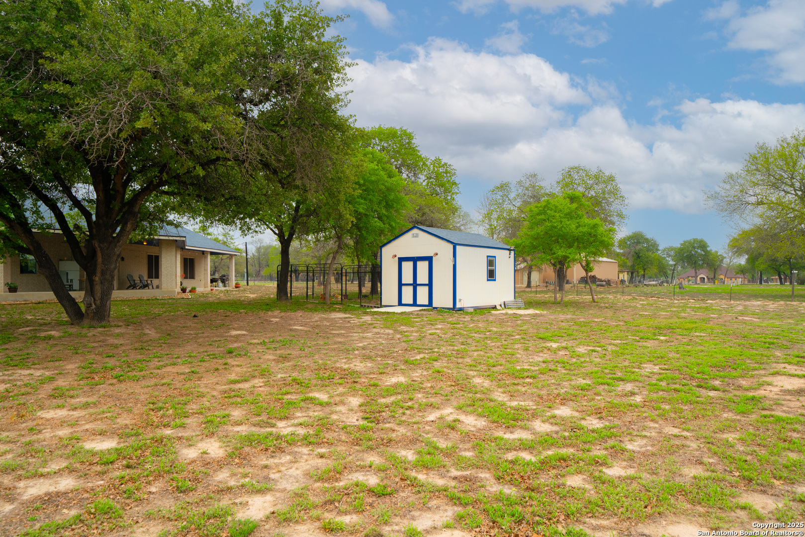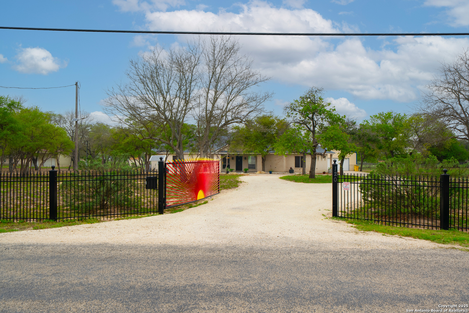 Drive through the private gate up the circular driveway to this stunning all-brick home, perfectly situated on a 1.93-acre fully fenced property with an electric gate and a wraparound covered patio, offering the perfect blend of privacy and space. Inside, the split floor plan features two large bedrooms and two bathrooms, along with an oversized shop that makes for a fantastic garage or workshop. The spacious open-concept living and dining area flows seamlessly into the large kitchen, which boasts stainless steel appliances, granite countertops, and a stylish glass tile backsplash. Outside, the property includes a dog kennel, storage shed, and security lights, providing both convenience and functionality. Located just minutes from HEB, dining, and shopping, with a short drive to Natalia, Devine and Lytle, and only 30 minutes from San Antonio, this home offers the perfect balance of country living with city conveniences. Don't miss out on this impeccably maintained property-schedule your showing today!