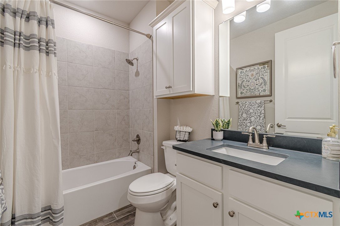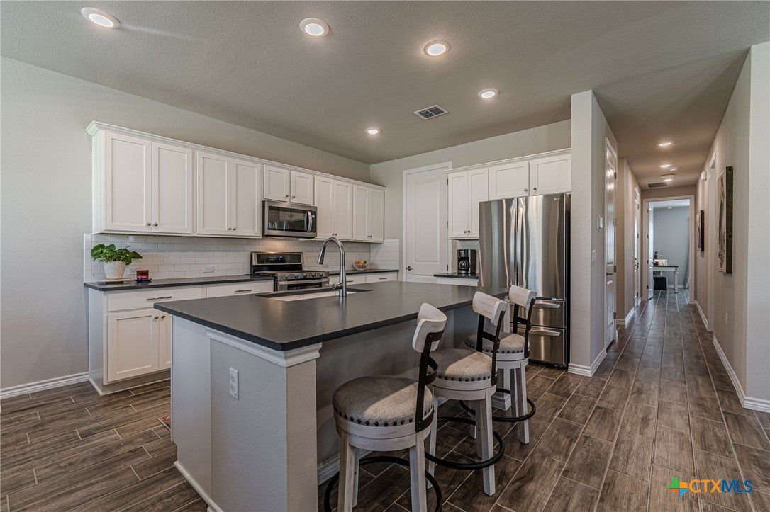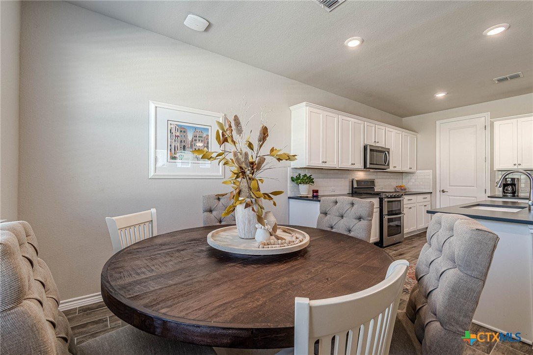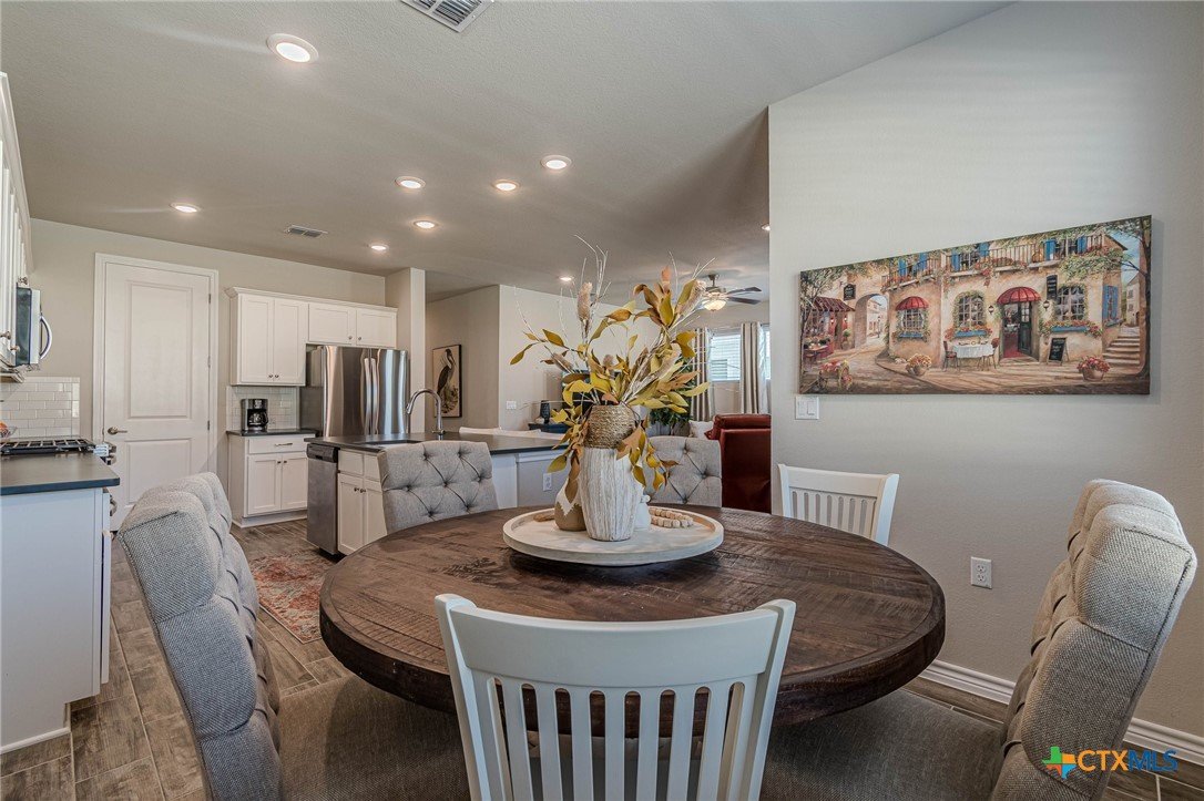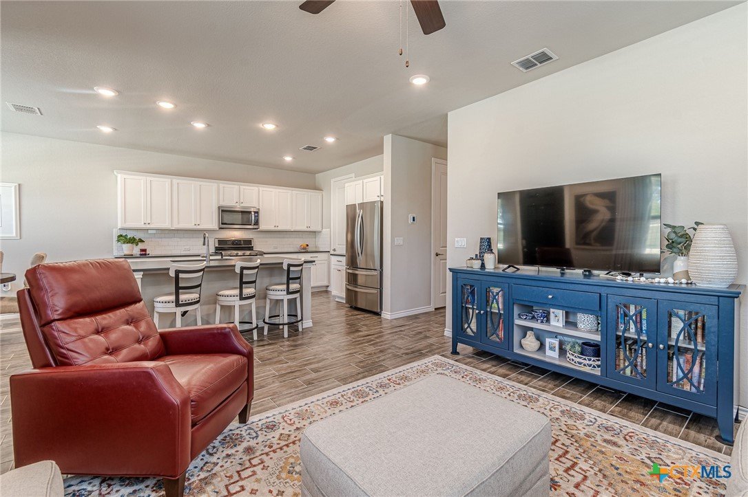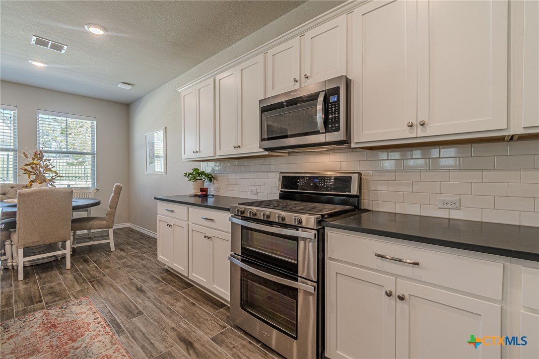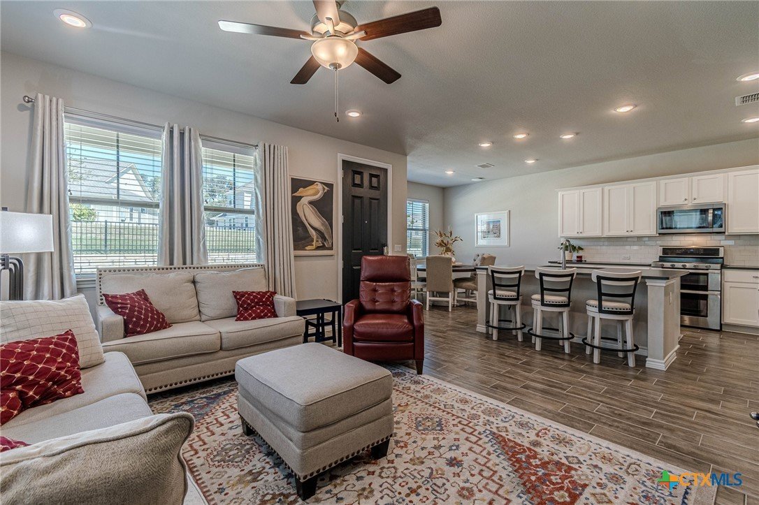 Perfect opportunity to own in this prestigious and very active 55 plus community. This Galvez floor plan offers spacious comfort, modern conveniences with lots of windows accented with beautiful and classy window treatments. Excellent neutral color scheme with ceramic tile wood look floors throughout, white cabinets with beautiful contrasting dark quartz countertops. Large main bedroom offers multiple furniture placement options with natural light. Main bathroom has dual vanities and a large oversized walk in shower. This location offers a short walk to the fitness center, community restaurant, and community swimming pools. These villas offer 24 hour security and a guard gated community with several outdoor enjoyment areas including built in bbq pits and quaint areas for relaxing, views, and enjoying your best life in this unmatched community. Exterior landscape maintained by HOA.