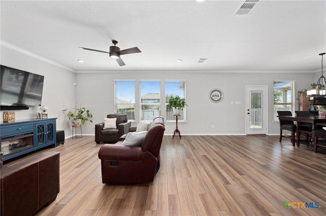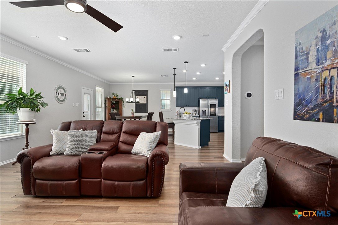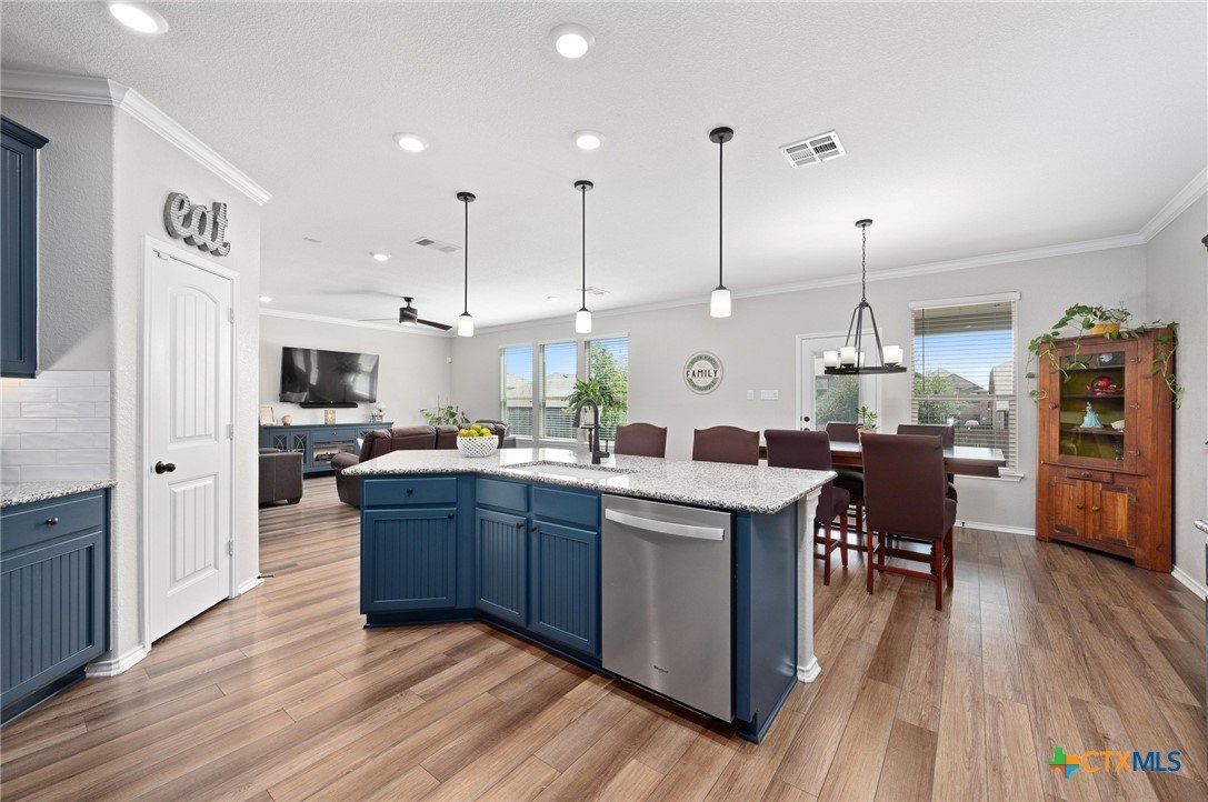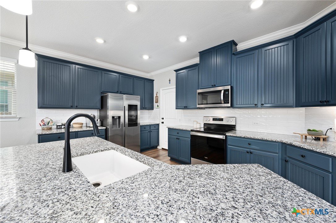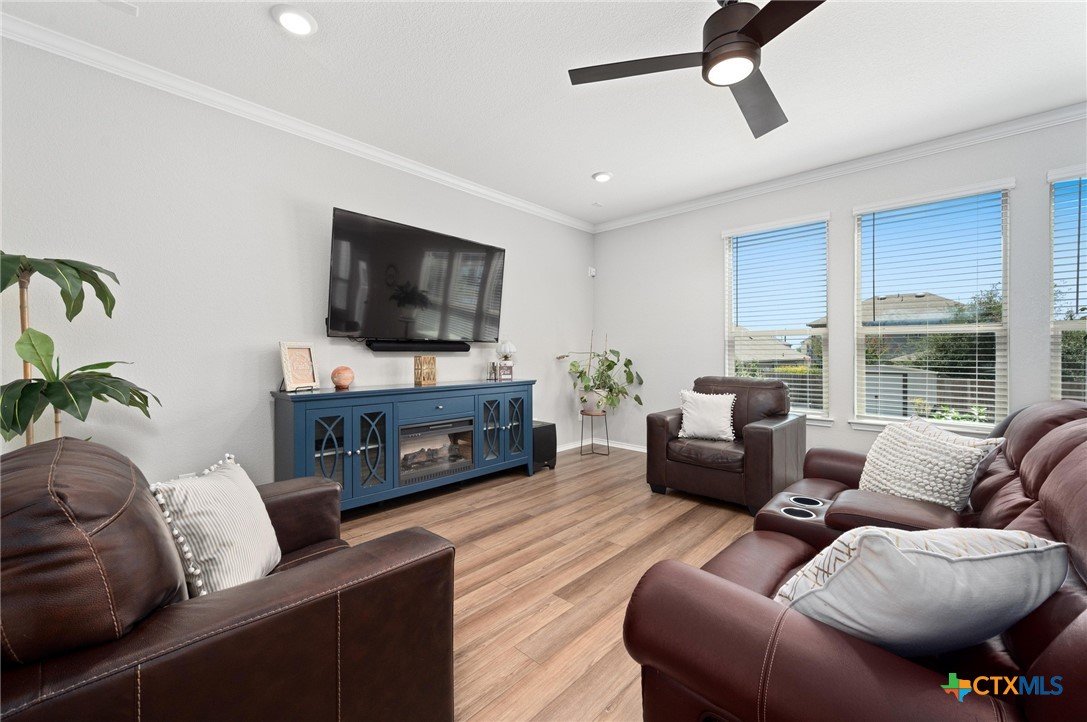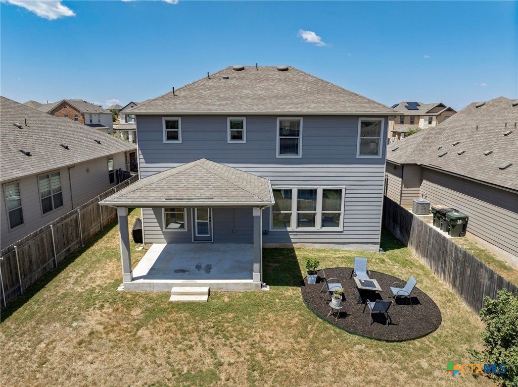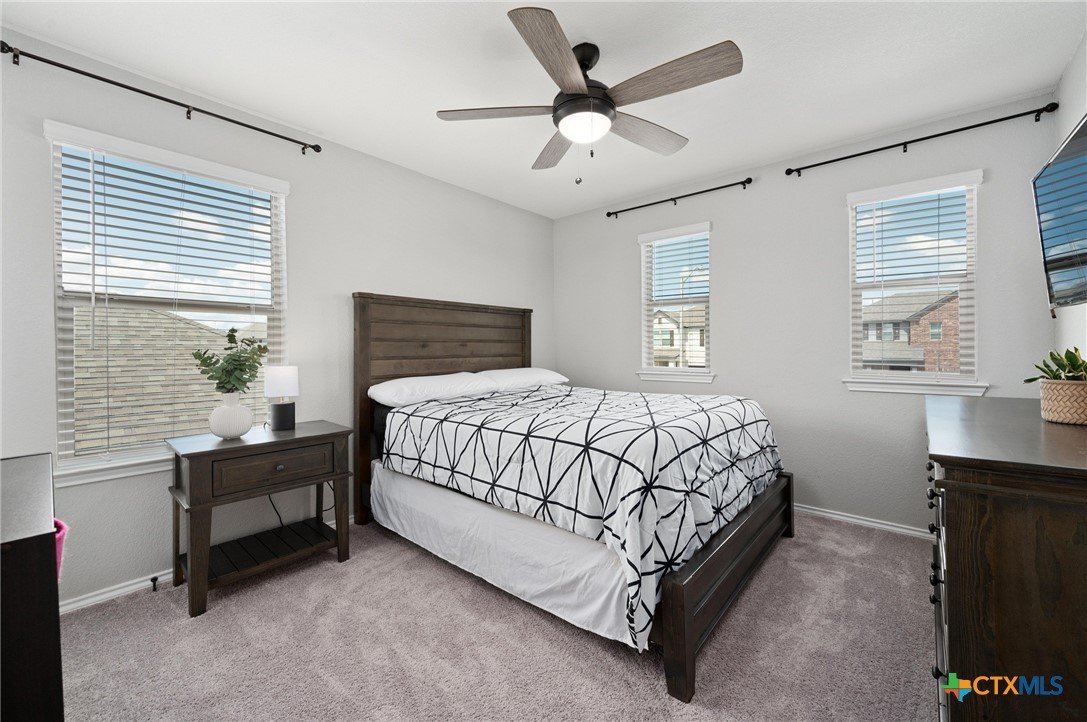 Welcome to Stagecoach Crossing in Kyle, where this 2022-built home stands out as the only four-bedroom, three full-bath option at this price point in the neighborhood. Designed with intention, the floorplan offers a main-level bedroom with a full bath, ideal for guests or multi-generational living, while the upstairs provides the primary suite, two additional bedrooms, two full bathrooms, and a spacious gameroom for comfortable separation between entertainment and private quarters. Luxury vinyl plank flooring runs throughout the downstairs, paired with tile in the wet areas, and brand-new carpet was installed in August 2025 for a fresh start. The kitchen is a true highlight with ample cabinet space, stunning designer-hued cabinetry, pantry, and generous counters perfect for cooking and entertaining. Outside, the welcoming front porch is ready for seasonal decor, plus exterior holiday lighting outlet upgrades, while the Texas-sized covered back patio and large backyard provide plenty of space to relax, entertain, or even add a pool. For additional storage and hobbies, the double-insulated, finished garage is a DIYers dream! Stagecoach Crossing offers a low HOA of just $325 per year, which includes access to a neighborhood park just a short walk from the home, along with a property tax rate of 2.26%. Families will appreciate the zoning to Kyle Elementary, Laura B. Wallace Middle School, and Jack C. Hays High School. Location is a key advantage, with this home situated approximately 22 miles from both Downtown Austin and The Domain, making commuting a breeze. Major employers are also within easy reach, including Tesla Giga Texas, Samsung Austin Semiconductor, and the Amazon Fulfillment Center right here in Kyle. With its unbeatable blend of thoughtful design, modern finishes, community perks, and convenient access to Austin’s job hubs, this home is a rare find in today’s market.