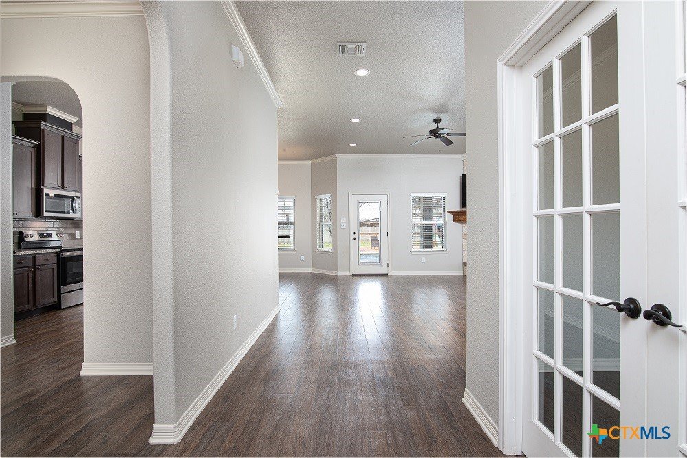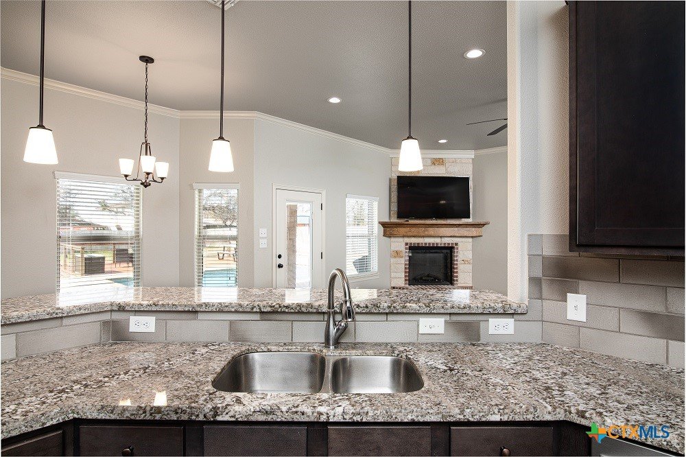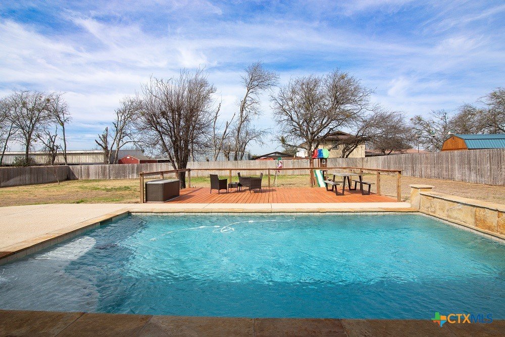 North Lake (Belton) Estates is a rural and peaceful setting very close to the north shoreline of Lake Belton ~ that offers great fishing and all sorts of water activities. For families with school age kids,…the elementary, middle and high schools were recently built in the highly acclaimed Belton ISD. The Sellers love this part of Bell County and have already purchased & moved a short distance away. As the subdivision was completed, it has maintained its quiet, well-kept and friendly appeal. This custom home has a very flexible floor plan with the master ensuite in the back left corner of the home with its own access to the covered back patio and pool area. The two secondary bedroom on the north end have a beautiful bathroom to share. The 2nd living area – right at front entry has double French doors that could easily be a 4th bedroom, home office, study, playroom or gaming room and the Formal Dining is left at entry. All counters are Granite and the Kitchen has a wrap-around two-level Breakfast Bar that opens to the Bay Window Breakfast area. Kitchen and Breakfast Area are open to a spacious Family Room with a stone accent Fireplace with mantle. In the early evenings, it is common to see families walking with their children, couples walking hand in hand and others strolling with their dogs. As night descends, the neighborhood becomes especially peaceful with a sense of warmth as well-lit homes demonstrate their pride in ownership. Sellers say it’s the perfect balance of tranquility and community interaction. The owners have a significant investment in professional lawn care with the entire yard having zoned inground sprinkler system that keeps a lush lawn and a beautiful curb appeal. Sellers will miss the backyard retreat that features a very spacious covered patio that overlooks an inground pool and two open patios next to the play pool. Buyer to confirm all measurements and information