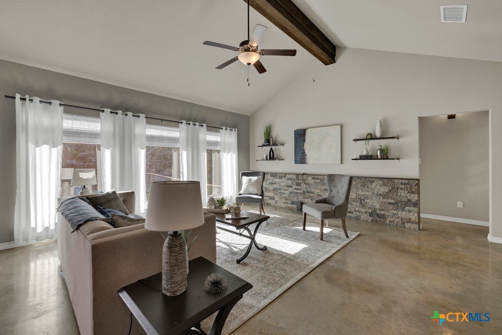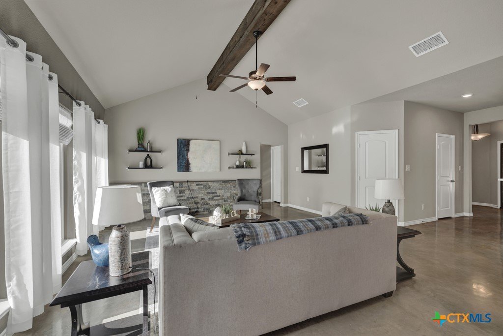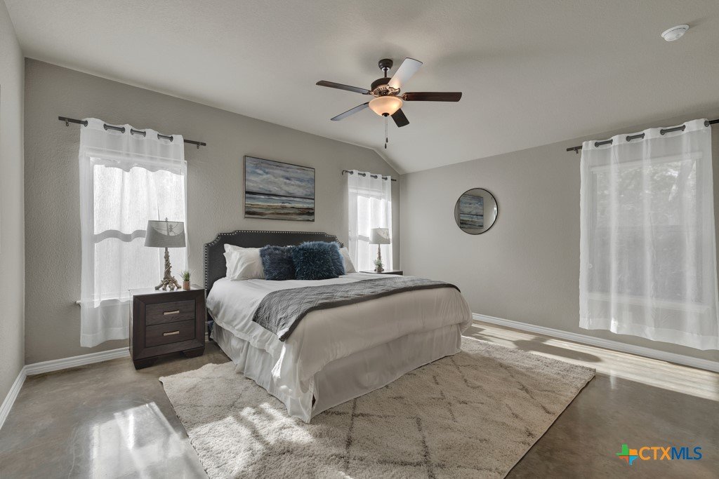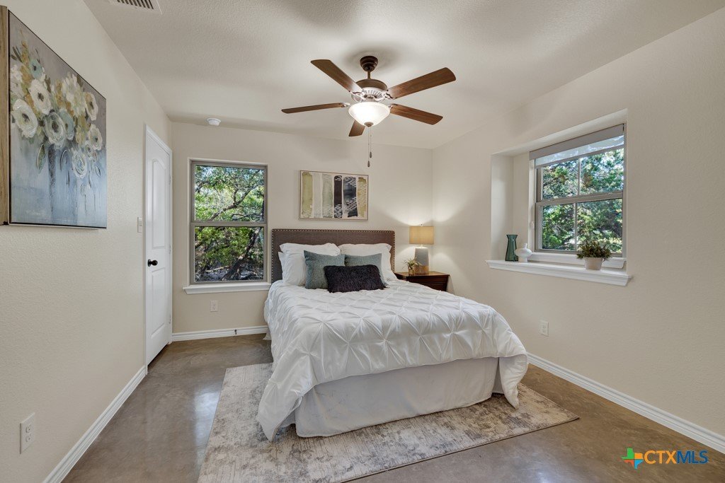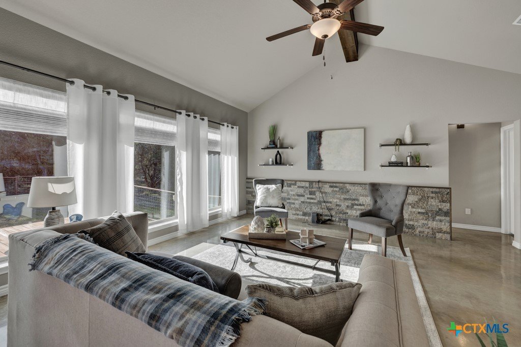 Open House Saturday July 5th 11-2! Big Price Drop!! Best value in Ensenada Shores!! Motivated Seller!! This exquisite 3-bedroom, 2.5-bathroom residence is nestled amongst the trees on a sprawling 1.38-acre lot in a lakeside gated community. Enjoy exclusive access to a private lake park, a serene fishing pond, a community pool, walking trails, and more. The home is perfectly positioned at the end of a cul-de-sac, offering unparalleled peace and privacy. Inside, you'll be captivated by the elegant quartz countertops throughout the home and the open floor plan that seamlessly integrates the living spaces. The easy-to-maintain stained concrete floors add a touch of modern style and durability, making this home both beautiful and practical. Relax on the back deck under the comfortable shade of an automatic retractable awning in the fenced in back yard. This property is the perfect blend of luxury and nature, providing a tranquil retreat with all the amenities you could desire. Within just a few minutes of several boat ramps, Cranesmill Marina, great restaurants, and all that this beautiful area of the Texas Hill Country has to offer. Welcome home to Canyon Lake!