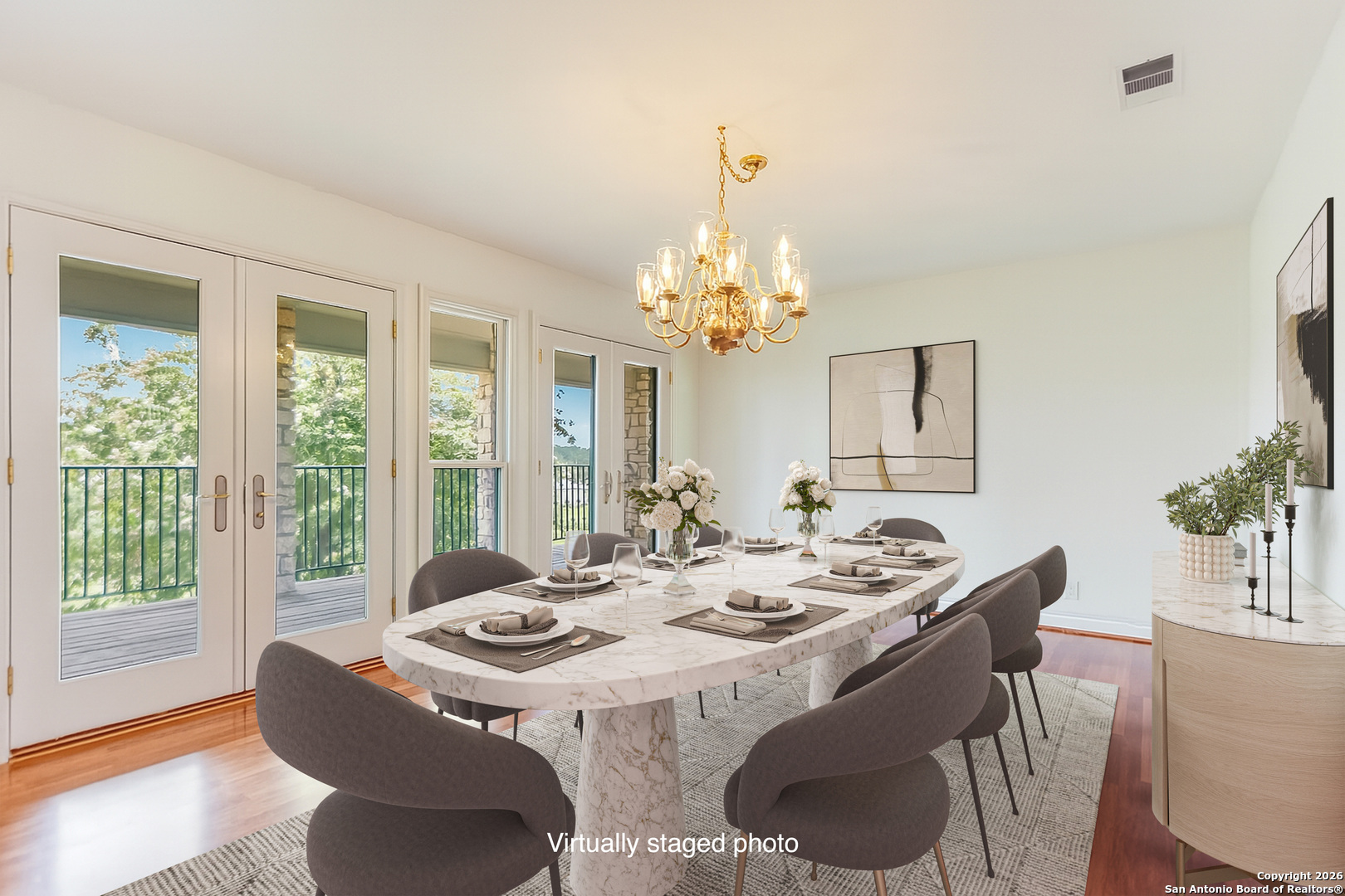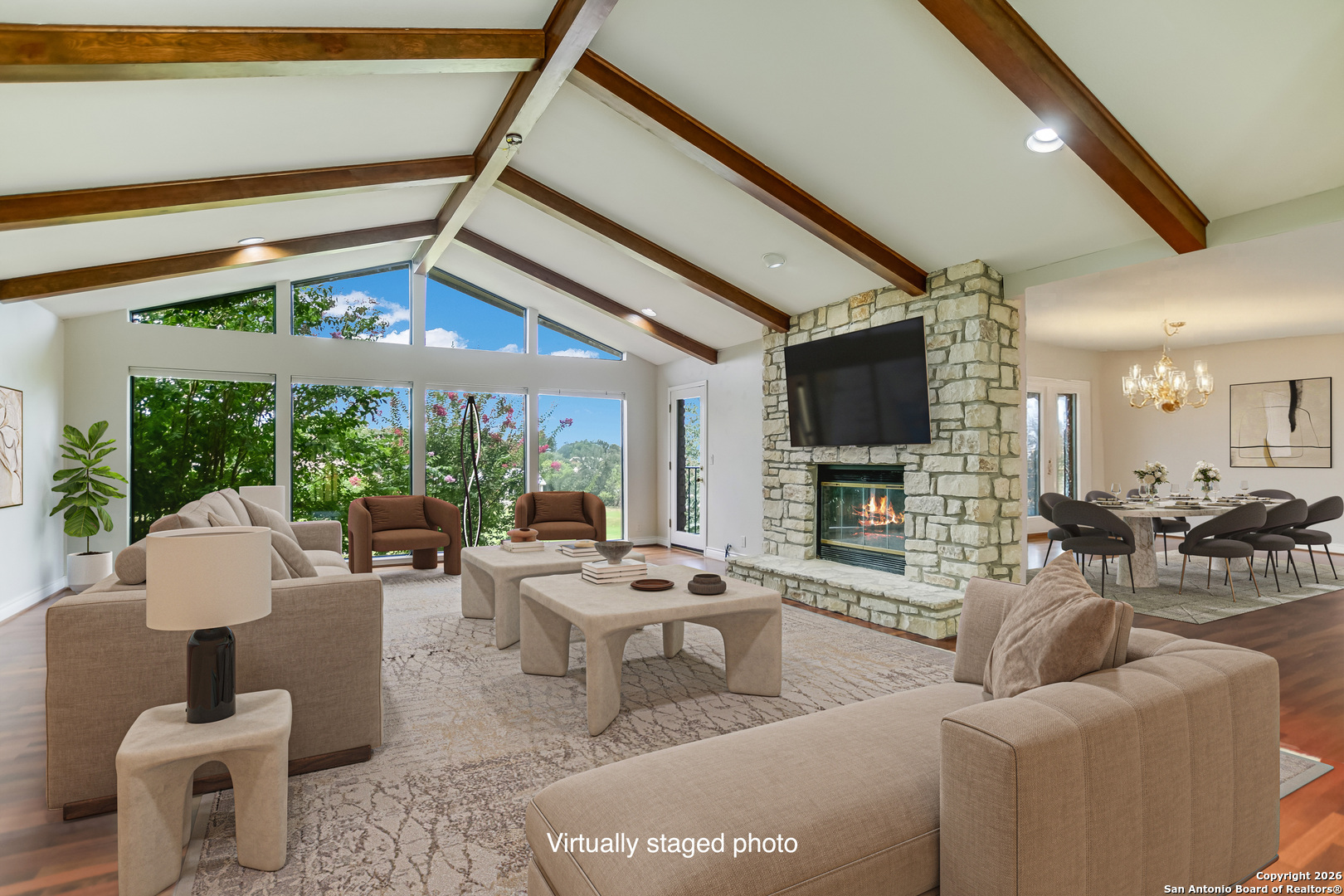 Discover your dream home nestled on the Slick Rock #12 fairway, offering breathtaking views of the hill country and golf course that stretch for miles. This two-story residence encompasses 3,966 square feet and boasts three spacious bedrooms, three full baths, and two convenient half baths, making it ideal for family living and entertaining. Inside, the living area features a dramatic vaulted ceiling, a wet bar, and a wood-burning fireplace, framed by a wall of windows that showcase the lush course views. The adjacent dining area provides easy access to a wrap-around deck, while the kitchen opens to a charming breakfast nook where you can enjoy your morning coffee while soaking in those stunning views. The main level primary suite includes his and her closets and an ensuite bath featuring a walk-in shower and a separate jetted tub. Downstairs finds another generous living area, complete with its own fireplace. This layout is great for families with teenagers or extended guests, as it ensures everyone has their own space. Additionally, there are two guestrooms, utility and storage rooms, as well as a small flex room that can serve as an exercise space or a small office. Step outside to the covered patio and fully enjoy the beautiful pool area, making this home a paradise for entertainers. The lucky new owner will love this stunning property and its prime location near Slick Rock Golf Course and The Horseshoe Bay Resort. Don't miss this opportunity to make this beautiful property yours!