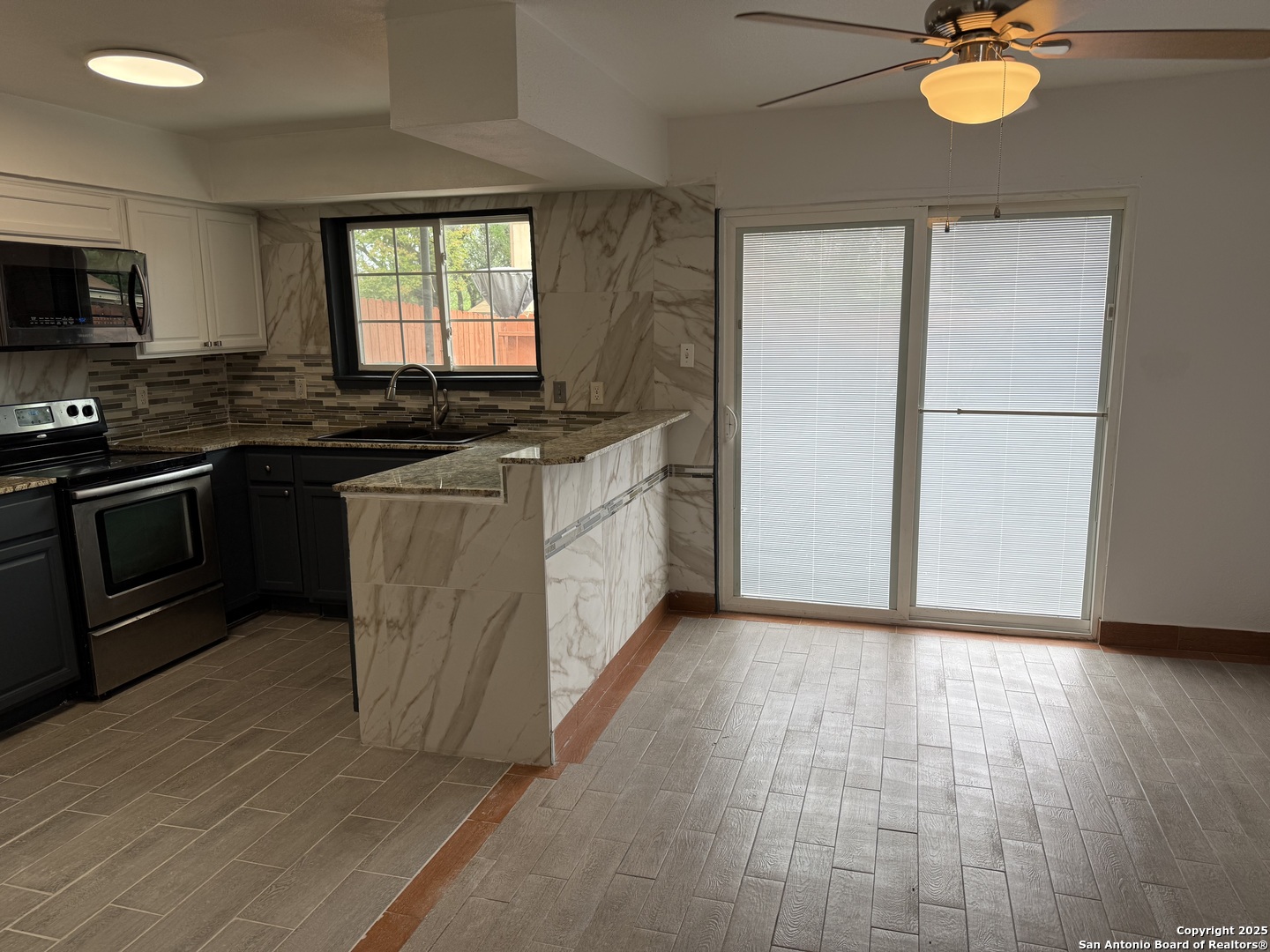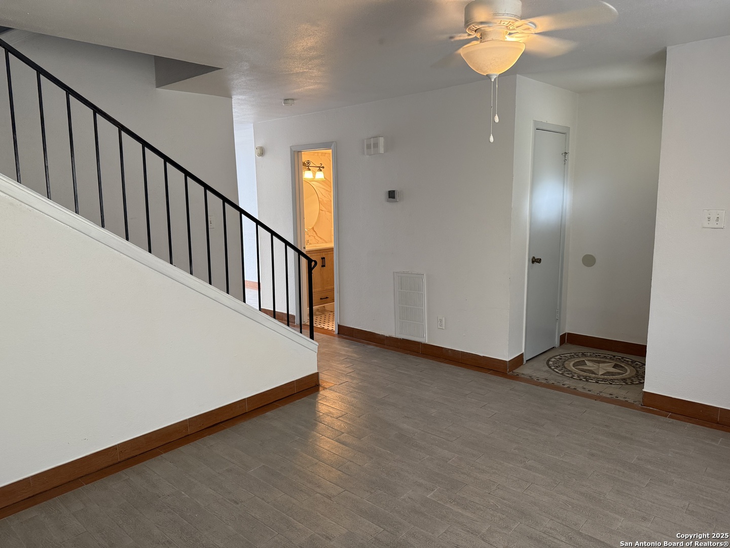 Discover the charm of this beautifully remodeled 2-bedroom, 2.5-bath townhome, perfectly located just off the highway and minutes from top shopping, dining, and entertainment! Upstairs you'll find two generously sized bedrooms, each with its own private full bath-one even features a charming balcony, perfect for morning coffee. The updated kitchen is fully equipped and opens to a fenced patio just off the dining area, ideal for relaxing or entertaining. Enjoy unbeatable convenience with The Rim and La Cantera less than 10 minutes away, and easy access to USAA, UTSA, and the San Antonio Medical Center. Nestled in a quiet, well-maintained community that includes a walking trail, this home offers both comfort and lifestyle.