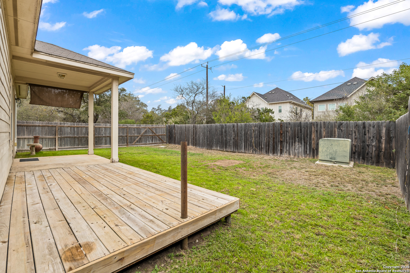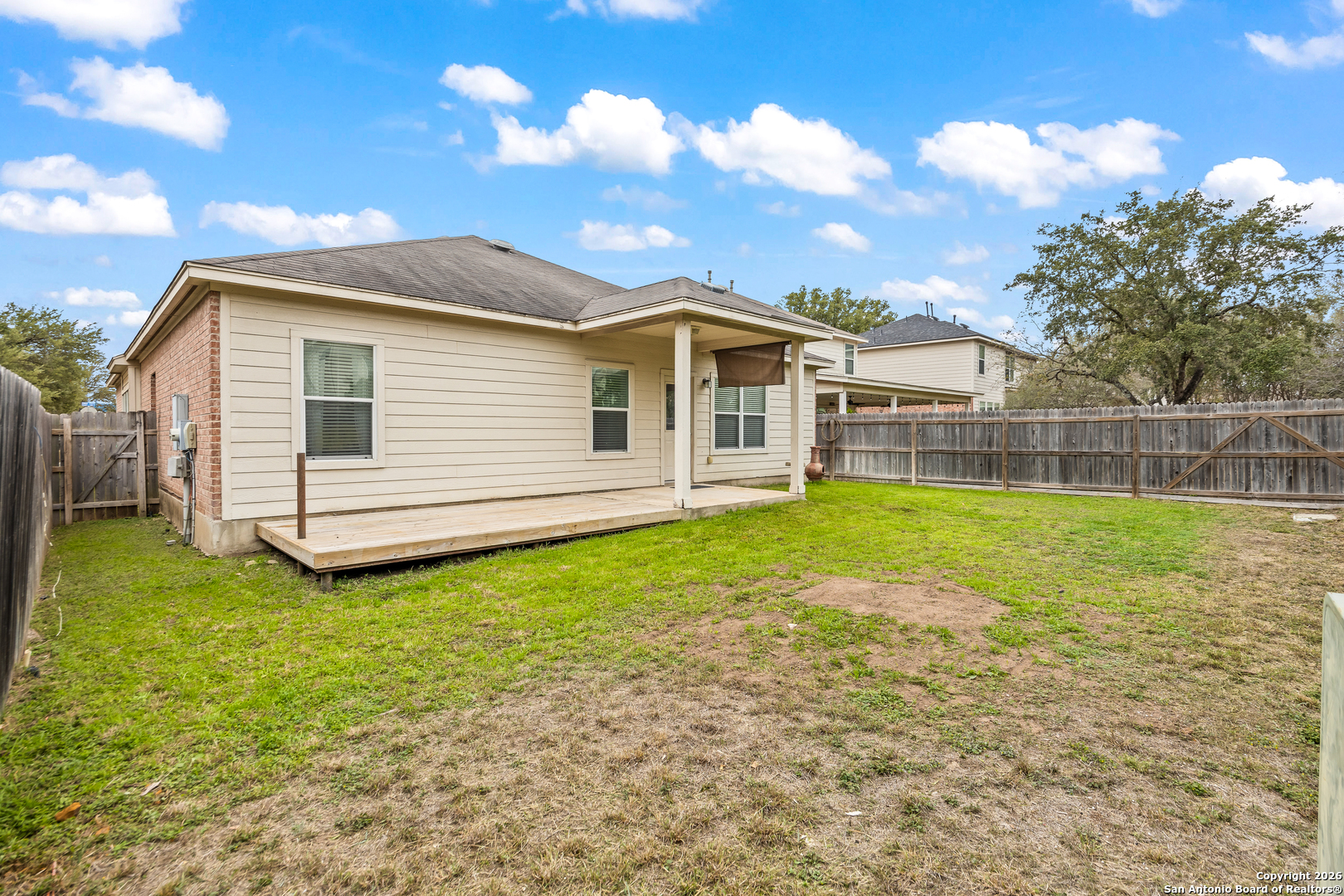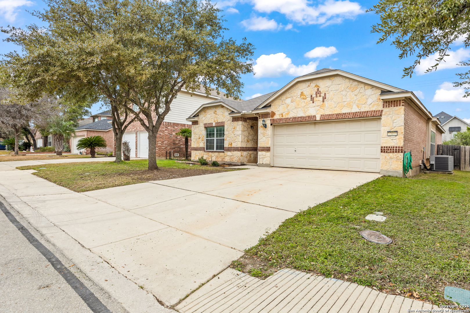 Welcome home to this darling one story, 4 bedroom 2 bath home, in a quiet neighborhood in sought after Alamo Ranch. Enjoy the convenience of tile flooring throughout - that looks like wood! The open floor plan makes life easy, plus convenient gas cooking & fireplace, covered patio & deck extension are great for entertaining. Come see!