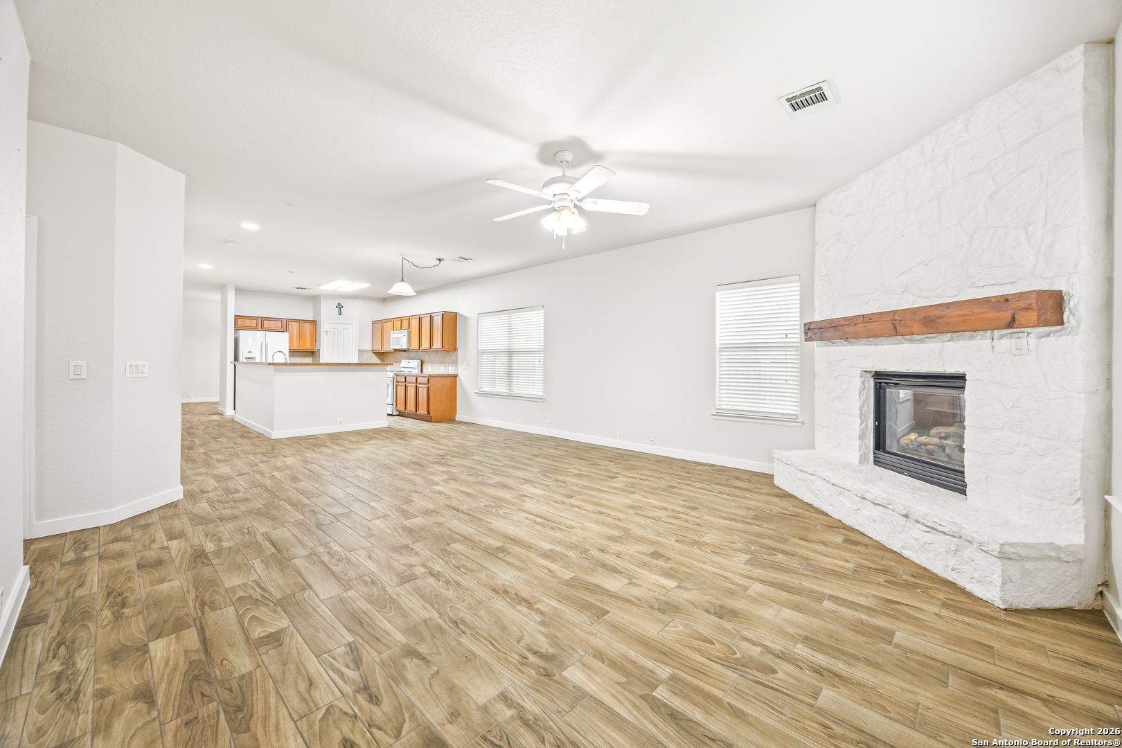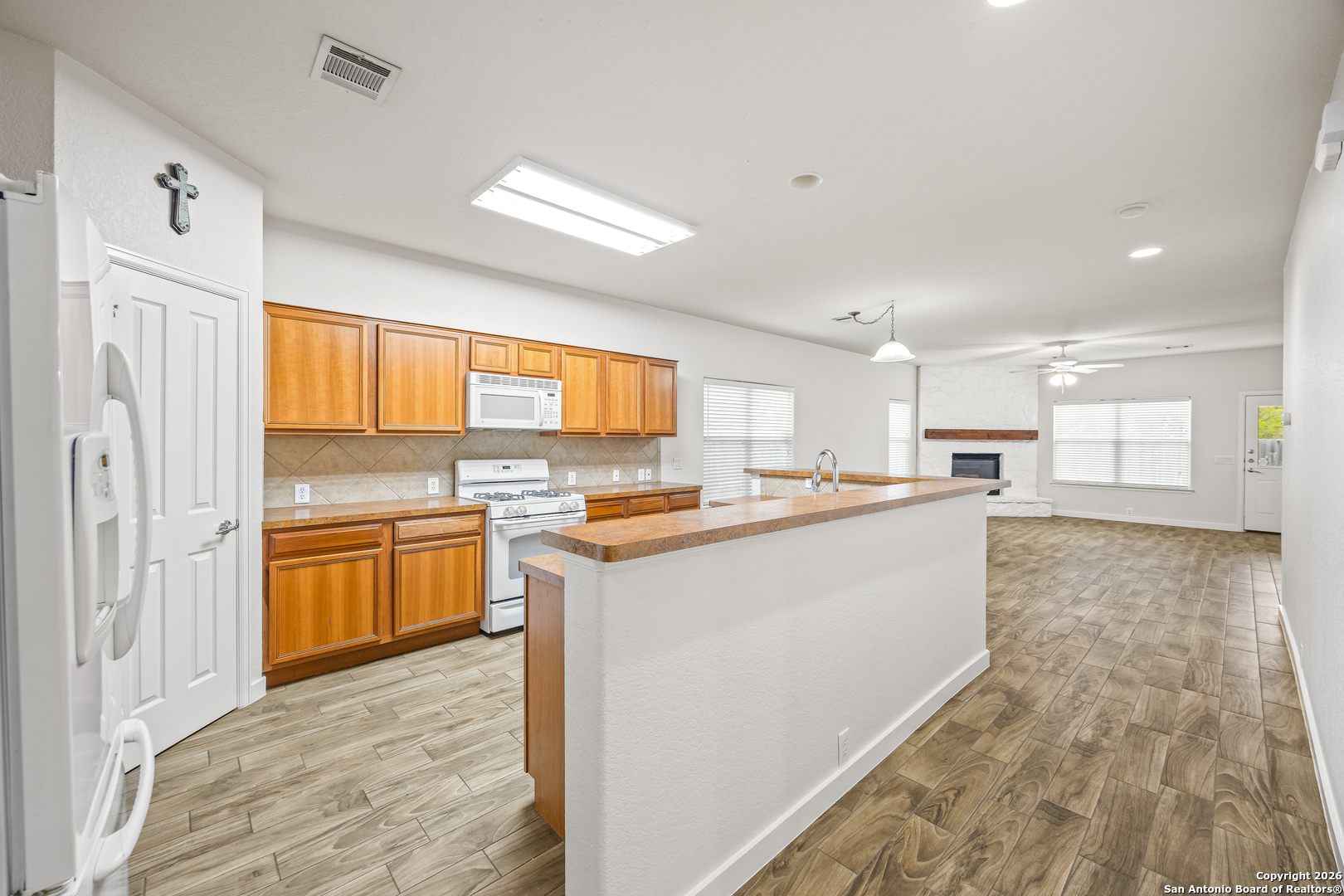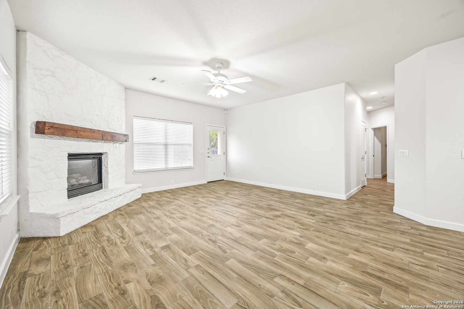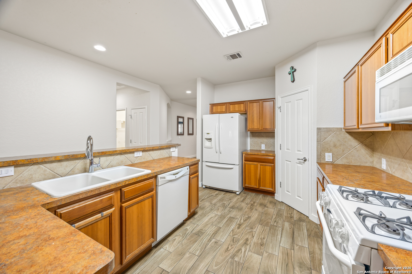Welcome home to this darling one story, 4 bedroom 2 bath home, in a quiet neighborhood in sought after Alamo Ranch. Enjoy the convenience of tile flooring throughout - that looks like wood! The open floor plan makes life easy, plus convenient gas cooking & fireplace, covered patio & deck extension are great for entertaining. Come see!