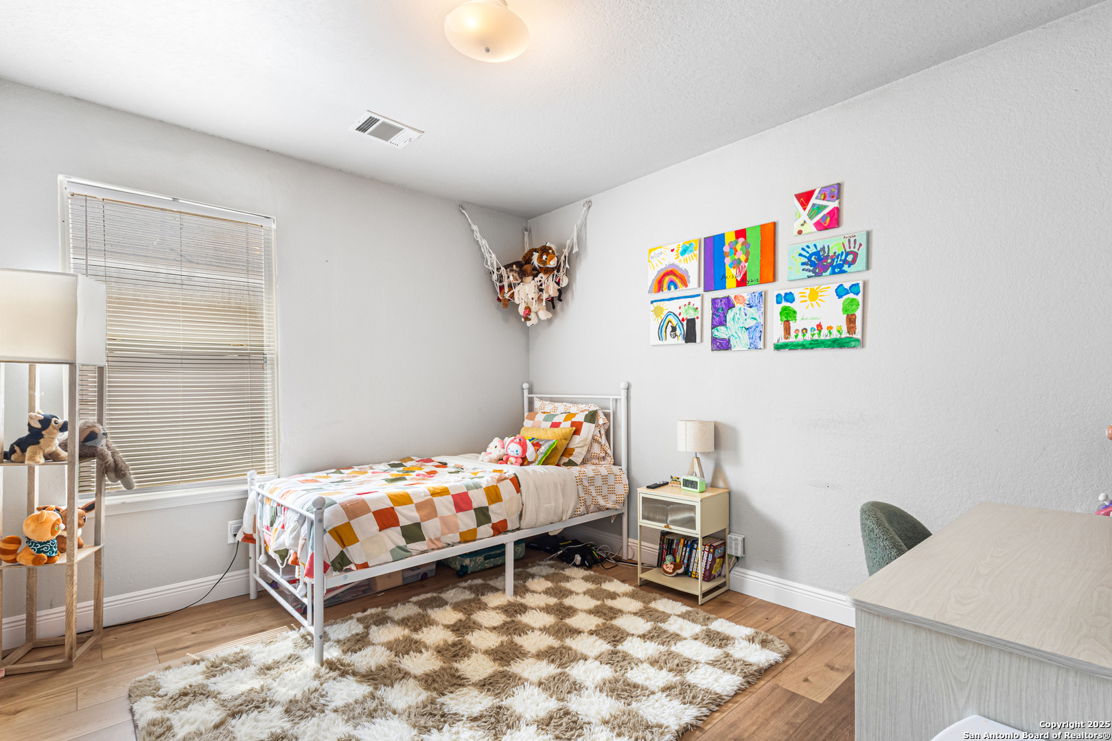 Discover this charming single-story home featuring 3 bedrooms and 2 full baths, set on a desirable corner lot with three-side masonry for lasting appeal. Enjoy fresh new flooring throughout, a spacious backyard perfect for gatherings, and a split-bedroom layout for added privacy. The open family room flows seamlessly into the kitchen and dining areas, creating a warm and inviting space. The generous primary suite offers two walk-in closets, dual vanities, and a relaxing retreat feel. Located in a secure.