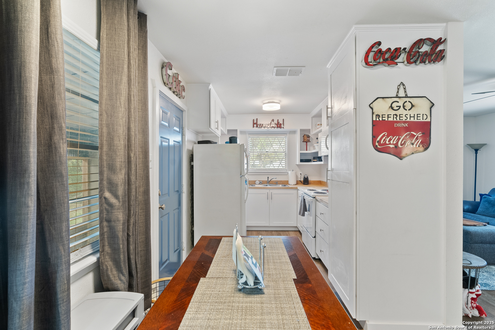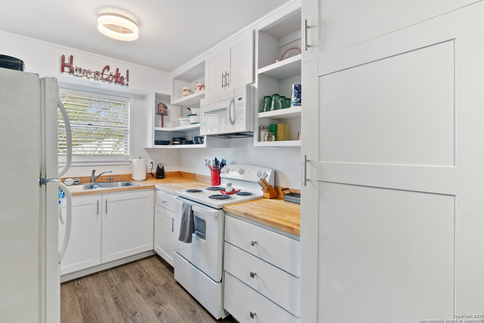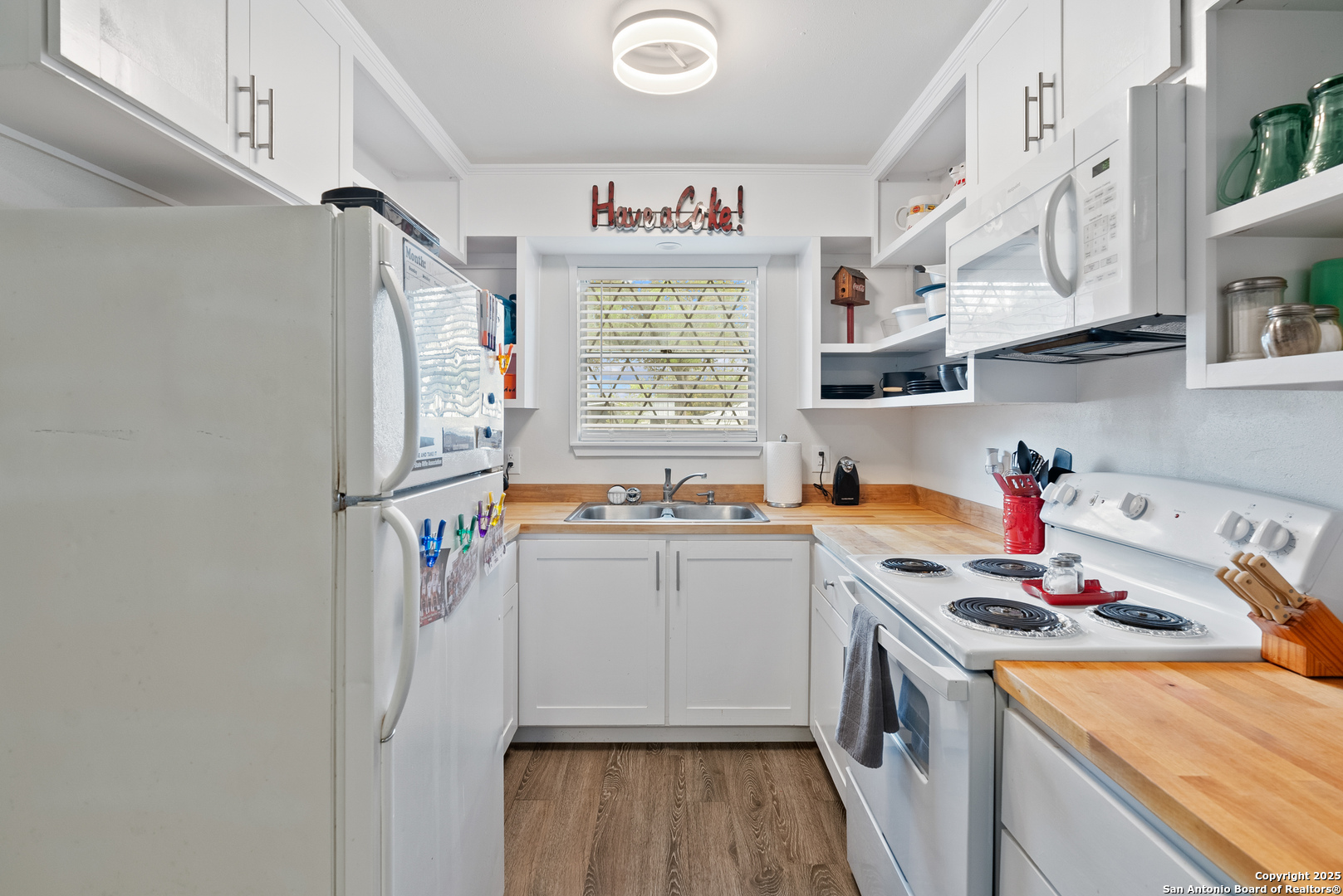 Charming, updated, and perfectly located-this cozy 2-bedroom home is ideal for first-time buyers or anyone looking to downsize. Nestled in a quiet neighborhood and just a short walk to local schools and shops, this property offers comfort, convenience, and style. Property Highlights: *2 Bedrooms / 1 Bathroom / 2-Car Garage *920 Sq Ft of thoughtfully designed living space *.265 Acre Lot with rock landscaping for easy maintenance *Pier and Beam Foundation Renovations in 2022 with updated Features: *Neutral interior paint colors *Wood-look laminate flooring in main areas *Cozy carpet in bedrooms *Updated bathroom with modern shower and single vanity *Stylish butcher block countertops in the kitchen *All kitchen appliances included Additional Amenities: *Central HVAC system + window unit for extra cooling *Newer water heater *Updated light fixtures and ceiling fans *Composite roof for long-lasting protection *City utilities connected for convenience Don't miss the opportunity to own this beautifully updated home in the heart of George West!