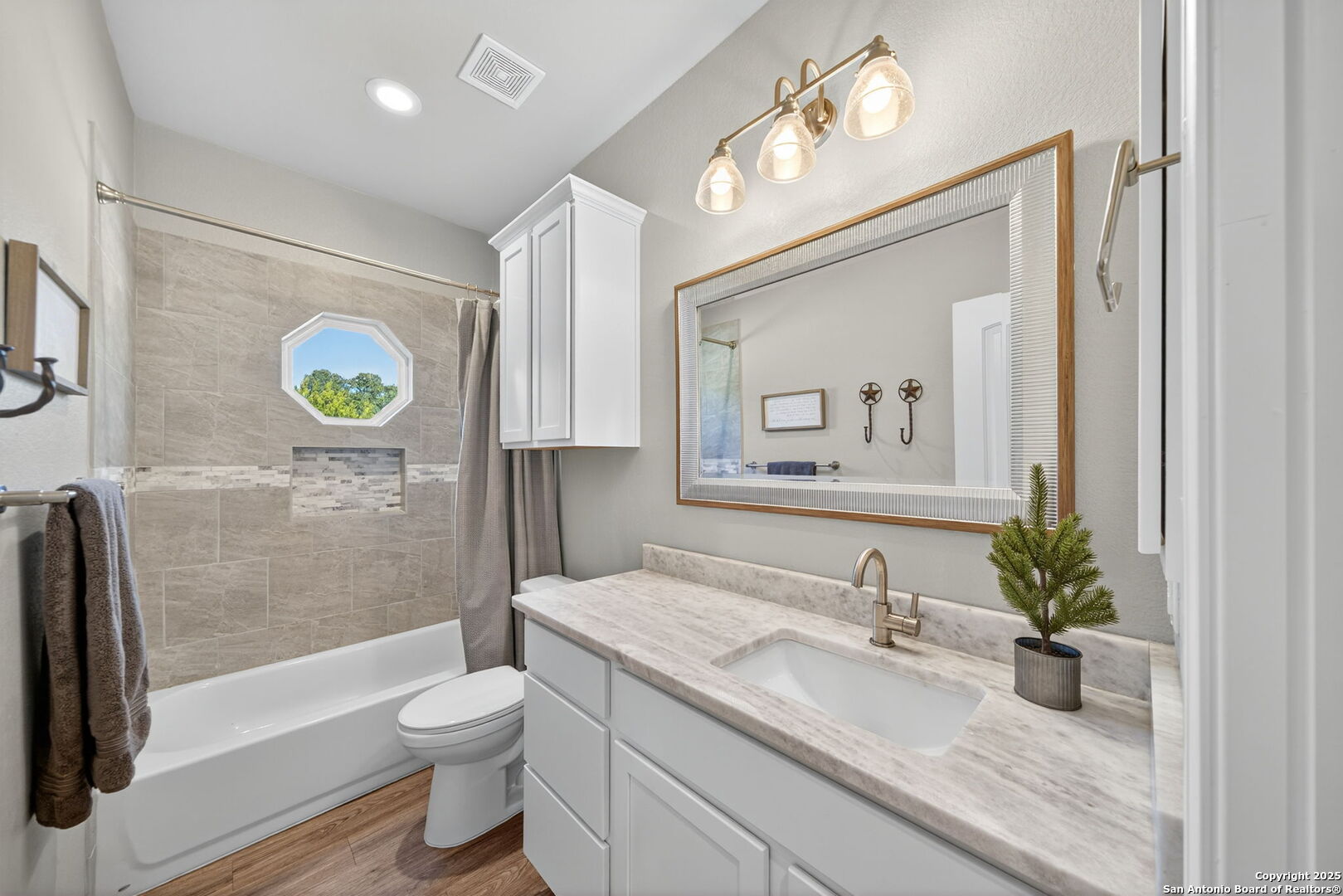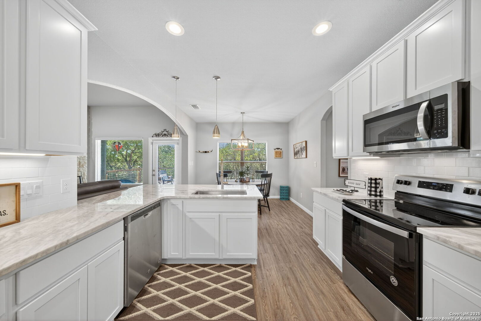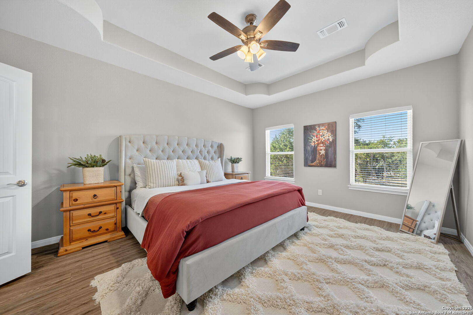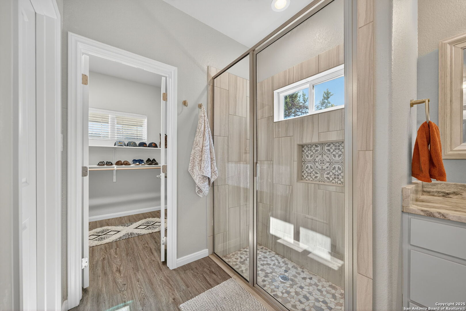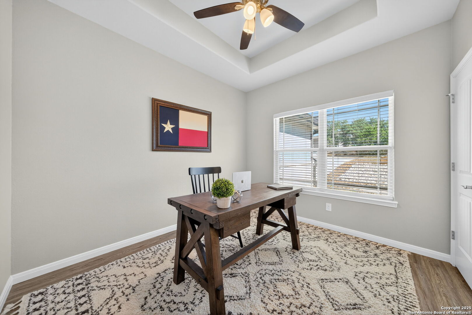 Immaculate Modern Lake Home Near Canyon Lake. Welcome to your dream retreat just minutes from the sparkling waters of Canyon Lake! This stunning single-story home, built just five years ago and lightly occupied, offers the perfect blend of modern comfort and timeless Hill Country charm. Step inside to an open-concept floor plan designed for easy living and effortless entertaining. The gorgeous kitchen features sleek finishes, generous counter space, and flows seamlessly into the spacious living area highlighted by a beautiful stone, wood-burning fireplace. A versatile flex room provides endless possibilities-ideal for a home office, fourth bedroom, or creative space to suit your needs. Throughout the home, you'll find upgraded flooring and no carpet, adding both style and practicality. Outside, enjoy the best of Texas living with a covered patio and an expansive deck, perfect for relaxing or entertaining guests. The oversized two-car garage features epoxy flooring for a clean, polished look, while the xeriscaped yard offers low-maintenance beauty year-round. This property comes move-in ready, with the refrigerator, washer, dryer, and all furniture available for sale-making it easy to start enjoying lake life right away. Don't miss this exceptional opportunity to own a nearly new home in a highly desirable location near Canyon Lake. Schedule your private showing today and experience lake living at its finest!