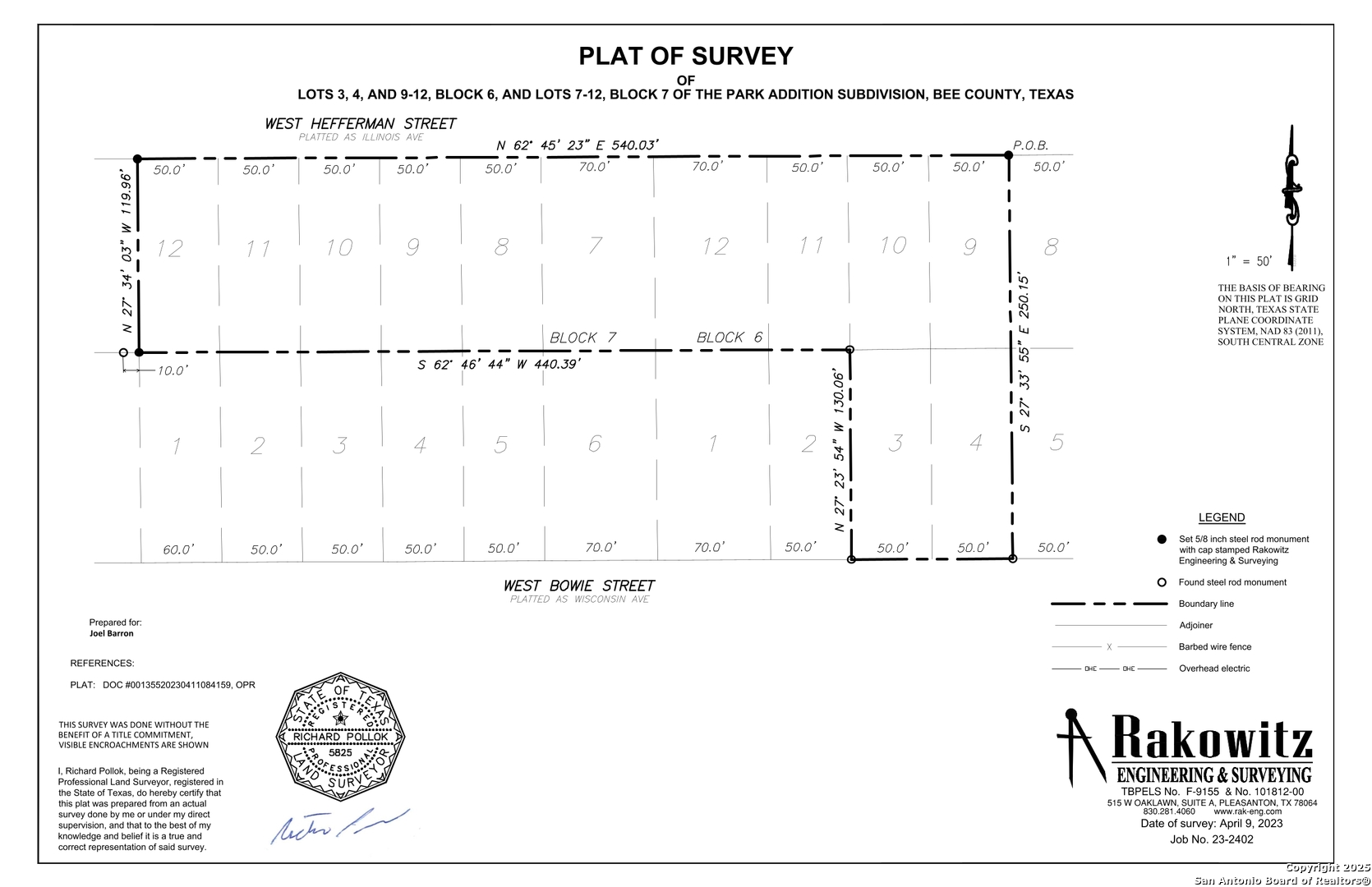 Prime builder opportunity right here in Beeville! Located just steps from Moreno Junior High, these spacious residential lots sit in a quiet, established neighborhoodideal for new construction homes. This is the perfect spot for spec homes, investor builds, or anyone wanting to create a small pocket community. With schools, shopping, and conveniences nearby, these lots offer the kind of location buyers are looking for. Opportunities like this don't hit the market often-grab these lots and start building! BLOCK 6 - Lots Included Lot 3 (50' x 120' - approx. 0.14 acres) Lot 4 (50' x 120' - approx. 0.14 acres) Lot 9 (50' x 120' - approx. 0.14 acres) Lot 10 (50' x 120' - approx. 0.14 acres) Lot 11 (50' x 120' - approx. 0.14 acres) Lot 12 (50' x 120' - approx. 0.14 acres) BLOCK 7 - Lots Included Lot 7 (70' x 120' - approx. 0.19 acres) Lot 8 (70' x 120' - approx. 0.19 acres) Lot 9 (50' x 120' - approx. 0.14 acres) Lot 10 (50' x 120' - approx. 0.14 acres) Lot 11 (50' x 120' - approx. 0.14 acres) Lot 12 (50' x 120' - approx. 0.14 acres)