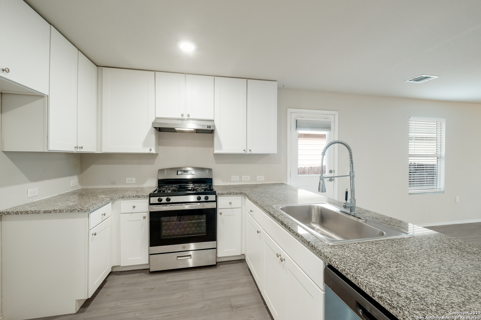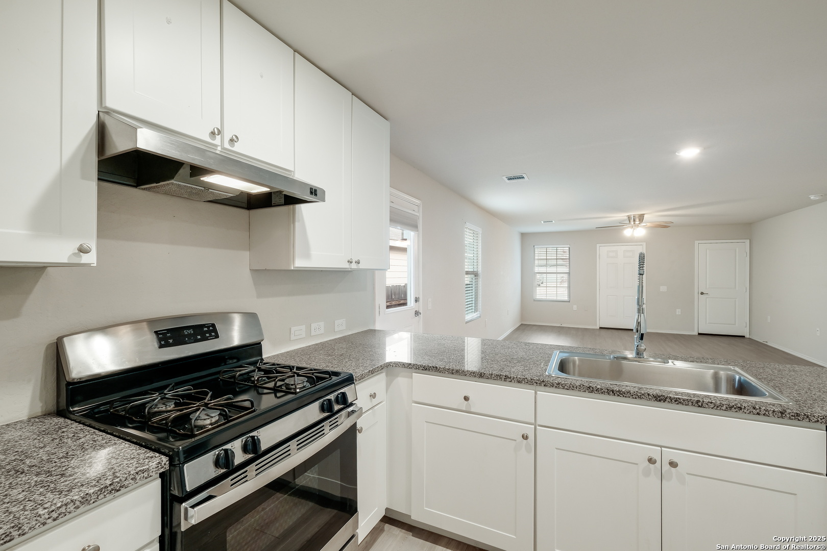 Seller is offering concessions! This generous incentive can be applied towards closing costs or to buy down the buyer's interest rate. Welcome to 12047 Overton Way, San Antonio, TX 78221-a charming Cottage Collection home featuring 3 bedrooms, 2 full baths, and 1,266 sq. ft. of efficient living space. The open-concept layout connects the kitchen, dining, and living areas, perfect for everyday living and entertaining. The kitchen offers granite countertops, a gas range, and open sightlines to the dining area. The private primary suite is located at the rear of the home and includes a spacious bath and large walk-in closet. Two secondary bedrooms and a full bath sit toward the front, ideal for guests or a home office. Enjoy added privacy with no rear neighbors and convenient access to nearby parks and the scenic Million Del Lago Golf Course. Low-maintenance living in a quiet, amenity-rich community.