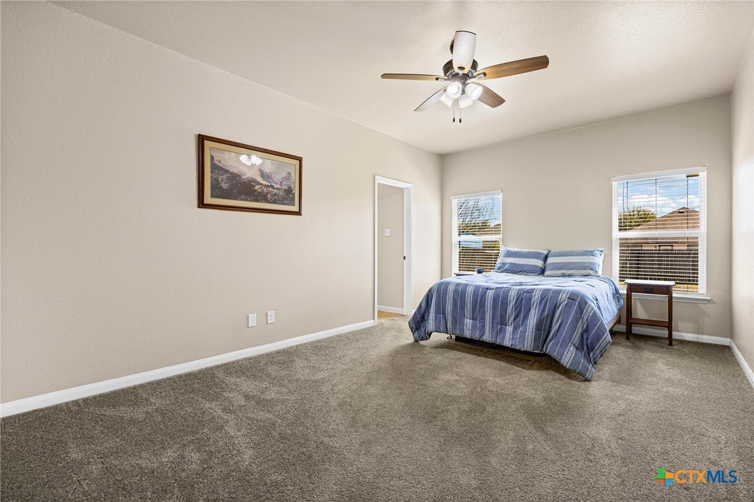 Welcome to 1205 Twin Estates Dr.! This move-in ready single-story home features an open floor plan with high ceilings and a living room that flows into the kitchen and dining area. The kitchen boasts stainless steel appliances, a gas range, granite countertops, a breakfast bar, and backyard views. The primary suite includes a double vanity, soaking tub, walk-in shower, and walk-in closet. Two additional bedrooms, a full bath, and a laundry room with pantry complete the interior. Ceiling fans throughout and a finished two-car garage with opener add everyday convenience. Enjoy the covered patio and the community amenities including a pool, playground, and park. Gas range, heating, and water heater. Ready for its next family! Verify Schools
