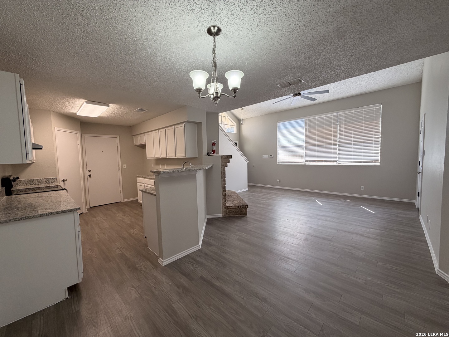 Welcome home to this stunning 3-bedroom located in the heart of San Antonio, TX. This property boasts two fully updated bathrooms and two living areas, one on each floor, providing ample space for relaxation and entertainment. The loft upstairs could be the perfect game room you've always wanted. The master bedroom is conveniently located downstairs separate from secondary bedrooms. The kitchen is equipped with granite countertops, stainless steel appliances including stove/range, dishwasher, and ice connection, all encased in a freshly painted interior and exterior. The house also features new fixtures and ceiling fans throughout, along with a cozy fireplace in the living room. The new vinyl plank flooring adds a touch of elegance and durability. The exterior of the house is just as impressive with a new driveway, new fence, and roof replaced in December 2024. The location is a dream come true with easy access to the airport, 410, shopping, Randolph AFB, and Ft. Sam. The community offers a swimming pool, park/playground, and jogging trails for your outdoor activities.