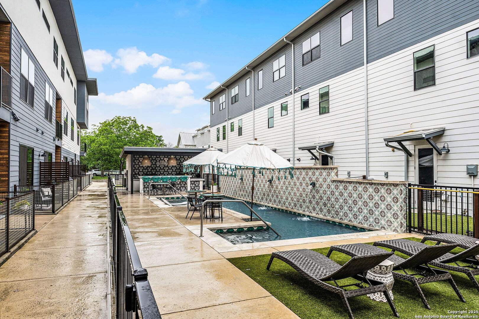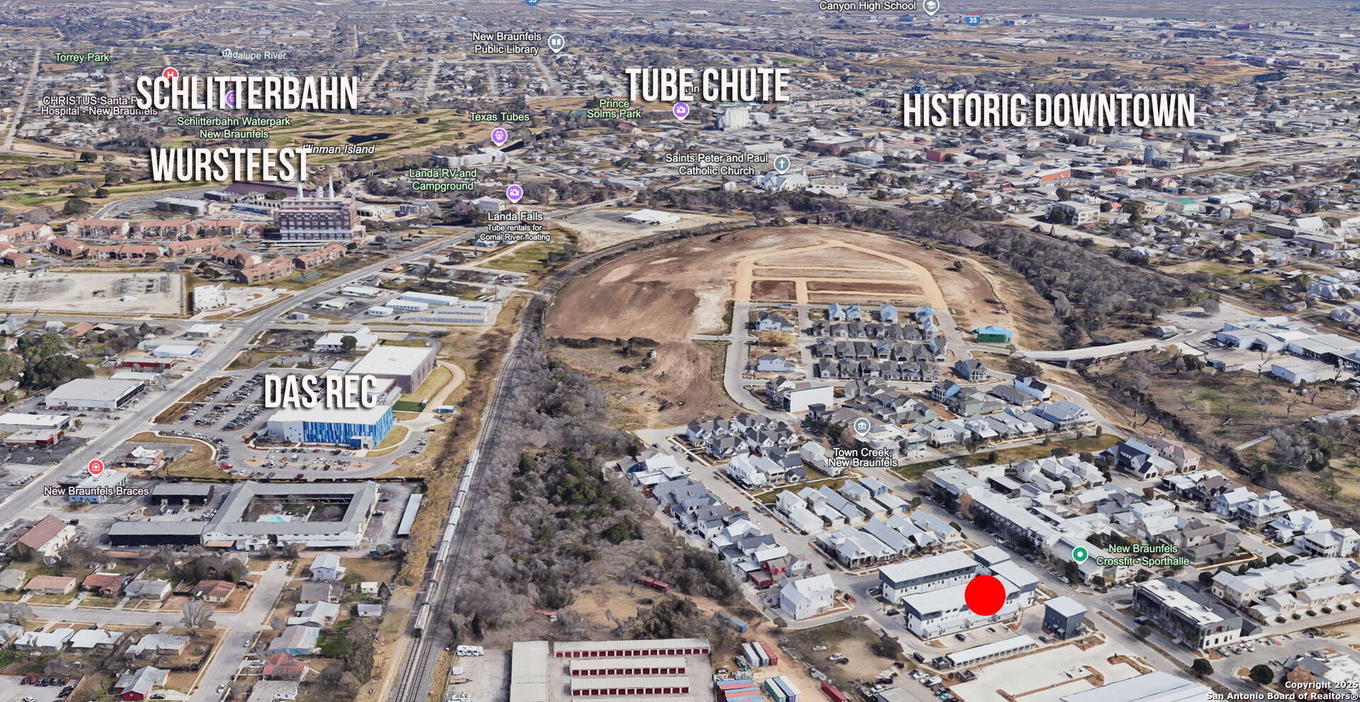 Opportunity to experience luxury living in the heart of New Braunfels. Welcome to refined urban living. This sophisticated 2-bedroom, 2.5-bath residence offers a rare opportunity to own a beautifully appointed condo just steps from the city's finest shopping, dining, and entertainment. Designed with an open-concept layout, the living, dining, and kitchen areas flow seamlessly ideal for both everyday living and stylish entertainment. Accented with ship lap walls, built in wine rack, wine fridge and custom blinds. The kitchen showcases sleek solid-surface countertops, premium stainless-steel appliances, and ample custom cabinetry. Bathed in natural light, the living area has warmth and elegance. Primary suite features a spa-like en-suite bathroom, while the versatile second bedroom is perfect for guests, a private office, or a creative retreat. Each bathroom is finished with high-end fixtures and designer touches, creating a polished, contemporary ambiance throughout. Enjoy exclusive access to a private community pool-an inviting escape for sunny afternoons or evening gatherings by the bar area. Step outside your door to explore an array of upscale boutiques, gourmet markets, scenic parks, and vibrant nightlife. Whether strolling along the Guadalupe River or enjoying live music at a nearby venue, your lifestyle here is nothing short of exceptional.