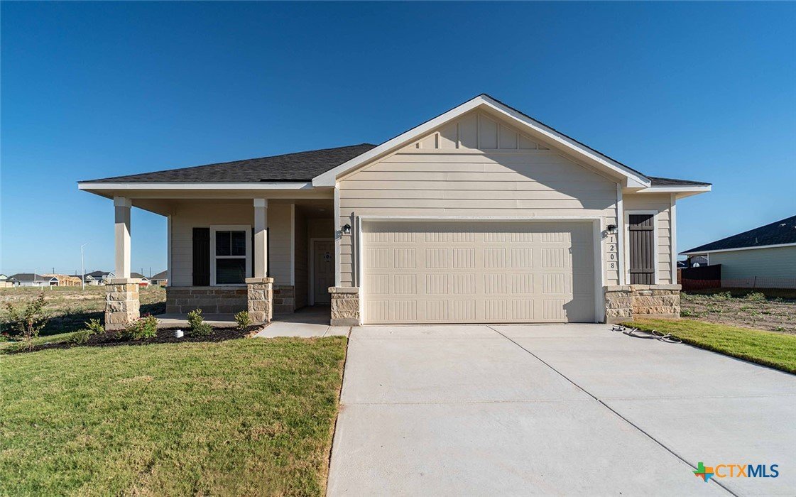 ENERGY STAR CERTIFIED. Half-car bump-out in the garage is perfect for additional storage, home gym or workstation. Home has a large back yard. Front Covered patio (15ft 5in x 7ft 5in), Rear Covered patio (12ft 5in x 7ft 10in). Home is pre-plumbed for a water softener. Interior Features: 9-foot ceilings. Wood-like tile in living areas. Designer selected tile backsplashes in kitchen and bathrooms. Quartz countertops in kitchen with bar height seating, 42-inch cabinets, Stainless steel appliances. Primary bath features soaking tub and walk-in shower, comfort height countertops with dual vanities. All bedrooms are braced for ceiling fans. Ceiling fan included in family room. Upgraded carpet and ½ inch carpet pad in bedrooms. Blinds throughout the home + mini blind insert in the rear door glass and more. Fiber internet in community. 2.5 miles from Navarro ISD. Under 5 miles to HEB, Walmart and other local shopping.