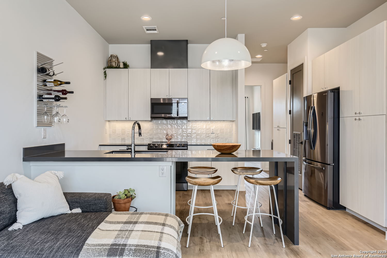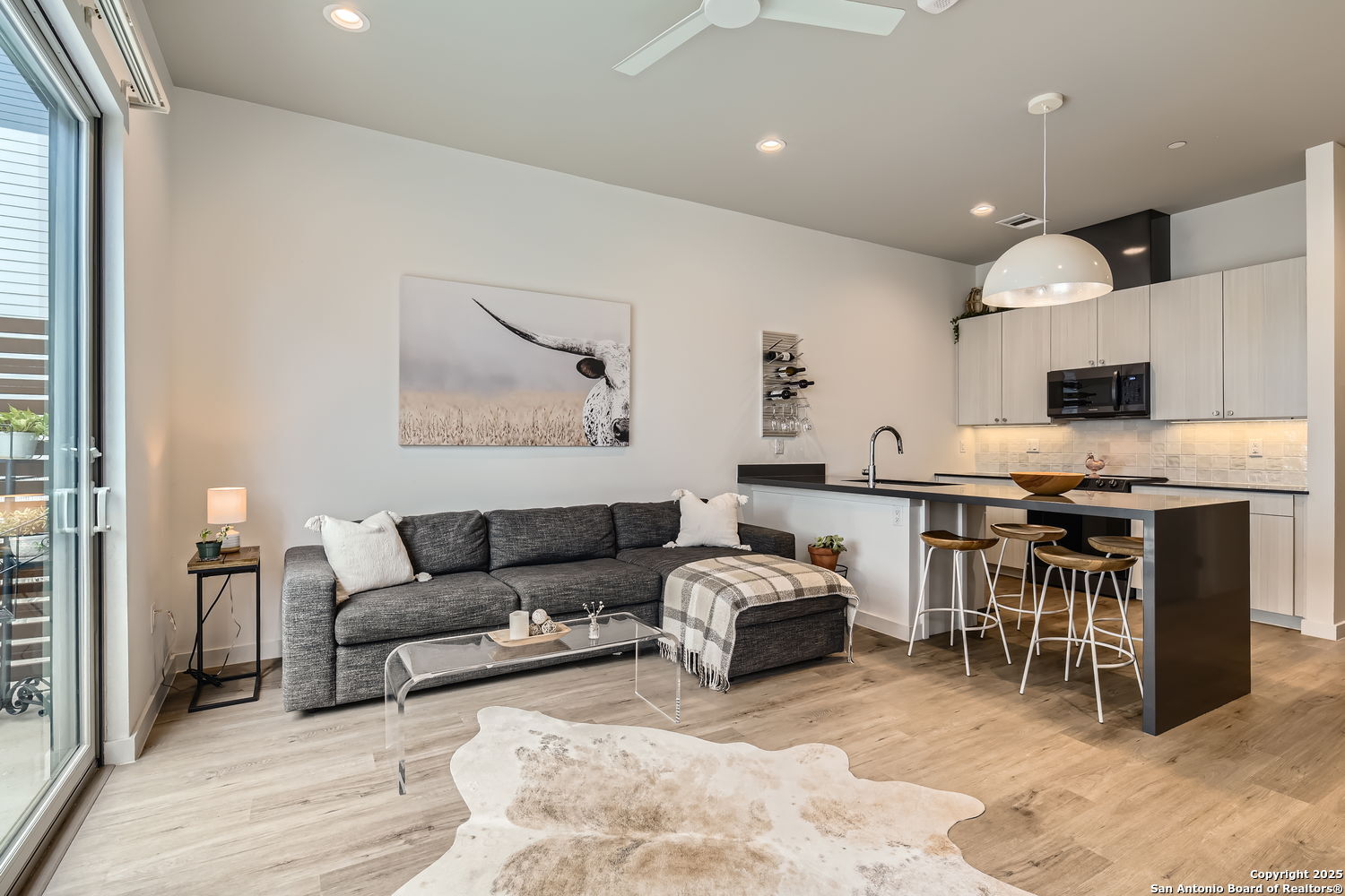 **Fully furnished with qualifying offer.*** Charming Small-Town Feel with Big-City Perks! Discover the perfect blend of comfort and style in this modern 1-bedroom, 1-bath condo. With an open floor plan and soaring ceilings, this home offers a spacious, airy vibe that's perfect for relaxing or entertaining. The kitchen boasts a sleek island, ideal for meal prep or casual dining, while the primary bedroom features a generous walk-in closet for all your storage needs. Step outside onto your private patio and take in the serene view of the sparkling community pool-your oasis just steps away. Amenities include pool, bar, outdoor kitchen, off leash dog area with dog shower, and Amazon drop box! Within walking distance to Landa Park, Downtown and New Braunfels farmers market. Don't miss your chance-schedule a tour today!
