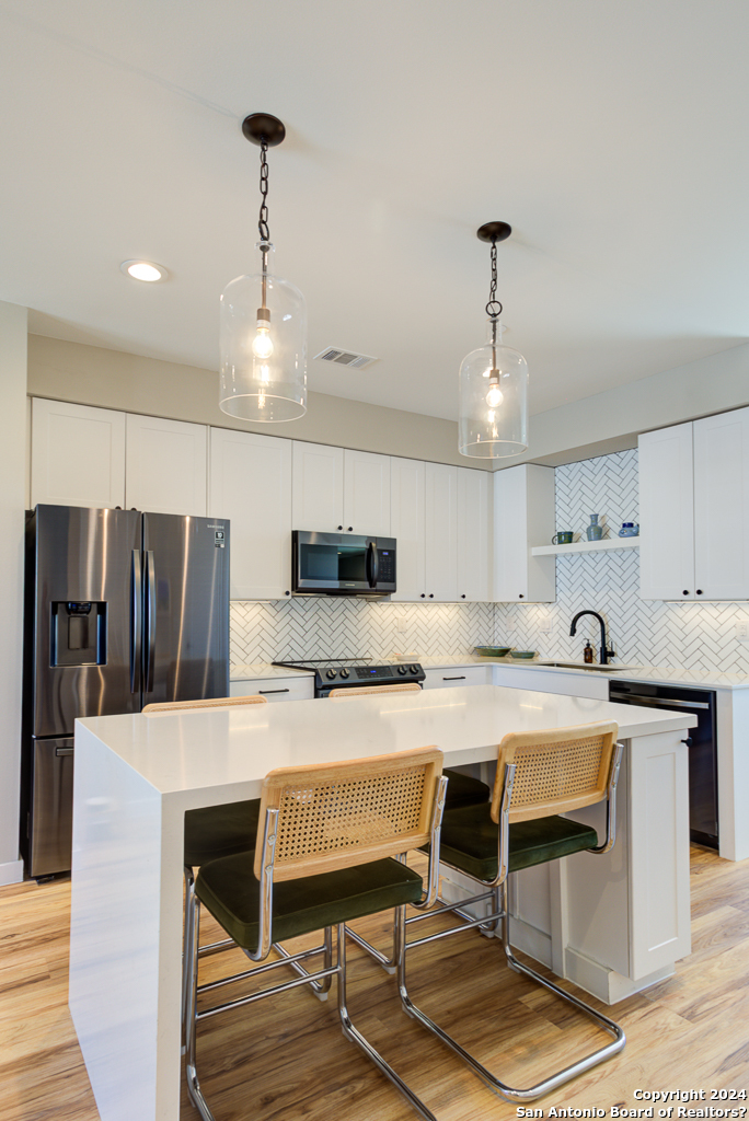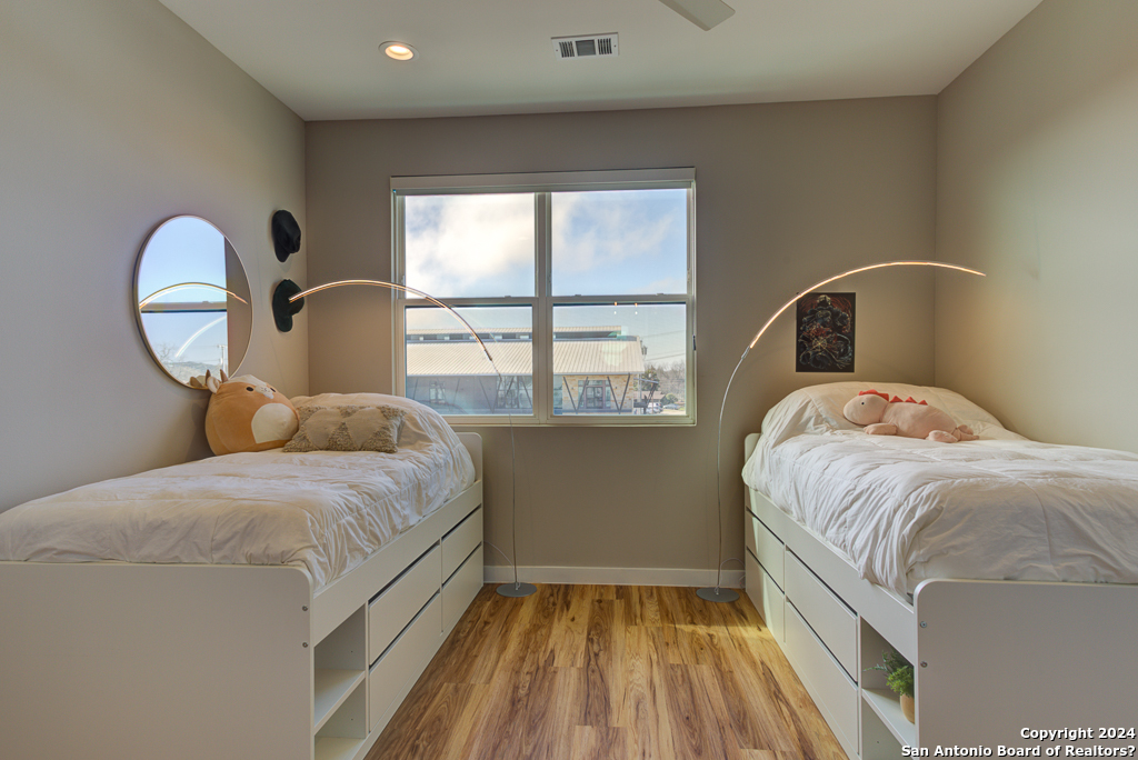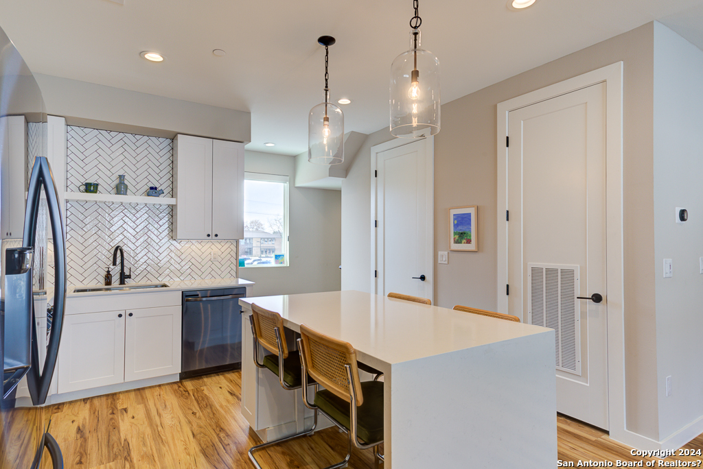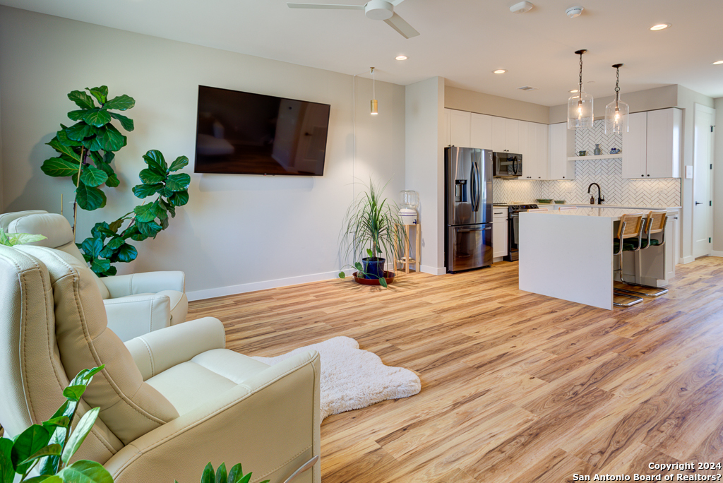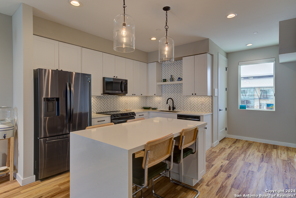 Experience the perfect blend of small-town charm and big-city convenience at 1208 N. Academy Ave, 3206! This modern 2-bedroom, 2.5-bath condo is right in the heart of it all. Fresh, airy, and filled with natural light, it gives off the vibe of a chic European flat. The open-concept living room flows seamlessly into the stylish kitchen, featuring a herringbone subway tile backsplash, sleek black stainless steel appliances, and a spacious pantry. The half bath is a standout with its stunning tiled wall and contemporary fixtures. Upstairs, both bedrooms offer private en suites, with the master boasting a large walk-in closet that fits all your wardrobe needs. The bathroom is a luxurious retreat, complete with lighted mirrors, a double vanity, a beautiful tiled shower, and even a bidet! Say goodbye to trekking downstairs for your morning coffee or late-night snack-the space between the two bedrooms features a convenient bar area with shelving, a drink fridge, and even a stackable washer and dryer. You also get a covered parking spot and a bradle box. As for amenities, you'll have access to a pool, bar, outdoor kitchen, an off-leash dog park with a dog shower, and an Amazon drop box. Plus, you're just a short walk away from Landa Park, Wurstfest, and Downtown New Braunfels! What are you waiting for?