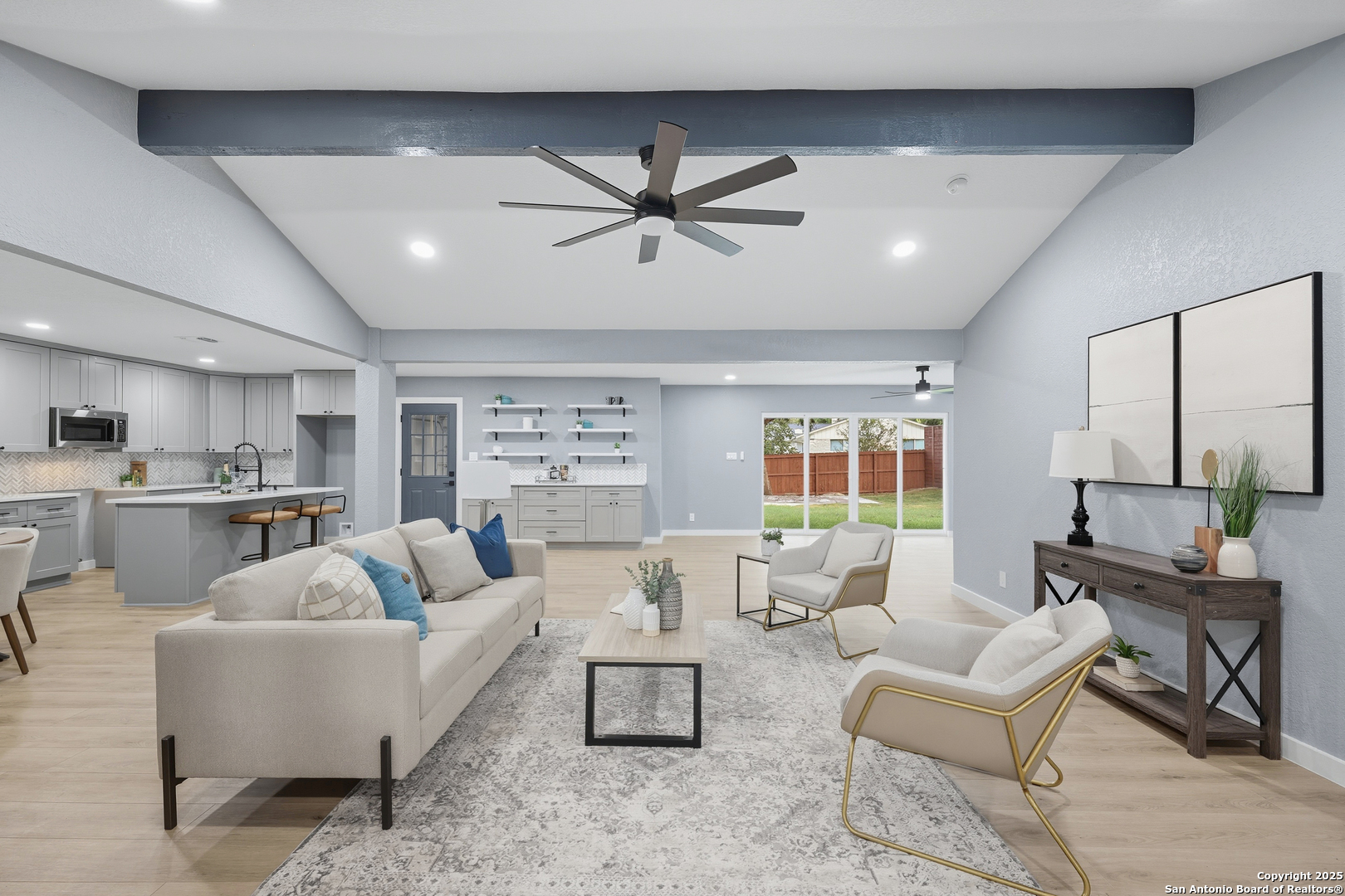 "Black Friday Sale!" Price Reduced! Move in by the Holidays! Beautifully Renovated 3-Bedroom Home in Universal City, TX NEAR SAN ANTONIO AND EASY COMMUTE TO AUSTIN OR SEGUIN! Welcome to your Dream Home! This stunning 3 bedroom, 2 Bathroom Home has been Completely Renovated from top to bottom and Ready for a New Family. Step Inside and You'll Immediately Notice the Open Floor Plan, Perfect for both Entertaining and Everyday Elegant Living. The home features new (2025)LVP flooring throughout, a modern kitchen with brand-new Custom Cabinets and Quartz Countertops, and Freshly Updated Bathrooms. Major Upgrades 2025 Include a Roof, Siding, Water Heater, Double Pane Windows, and a Central HVAC System. The Epoxy-coated Garage floor adds a Sleek Finish to the Spacious Oversized Two Car Garage, Professional Landscaping Enhances Curb Appeal and Outdoor Spaces. Located in a Quiet, Well-Established Neighborhood in Universal City, this home offers both Comfort and Convenience. With its Stylish Finishes and top-to-bottom Updates, it's Truly turn-key and Ready for you to make it your own for the Holidays. Near JBSA and the Intersection of 35N and 1604 and ease of Access to I10 Near the Forum Shopping Center and the Selma Costco. Universal City has a Municipal Golf Course and Walking Trails in the Neighborhoods. Great Public Parks and Library. ASK ABOUT APPLIANCE PACKAGE AND DOWN PAYMENT ASSISTANCE!