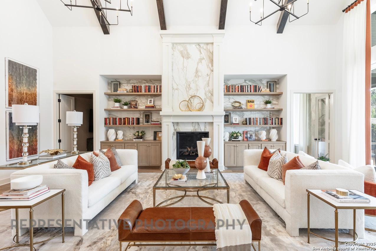 Step into luxury with this brand-new Highland Homes Verona Plan in La Cima Estates. This spacious 4-bedroom, 4 bathroom includes a pool bath and powder bathroom for guest. This home boasts 3,346 square feet of modern living space. Enjoy 20 FT high ceilings, an open-concept design, and a chefs kitchen with quartz countertops. Each bedroom features its own on-suite bathroom, ensuring privacy and comfort. Additional highlights include a secluded study and a cozy entertainment room. The extended outdoor living area is perfect for gatherings and backs to Green Space.