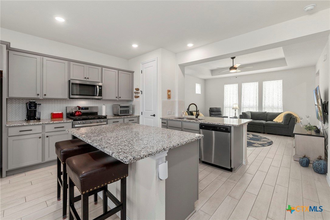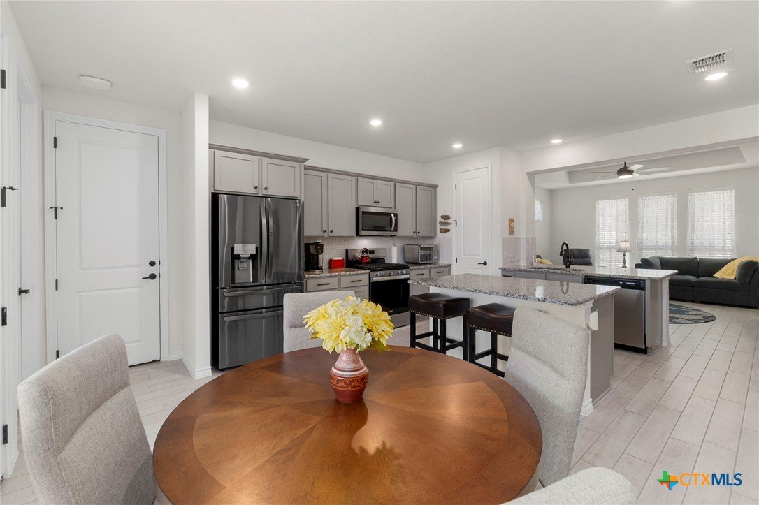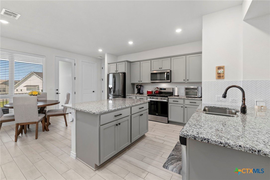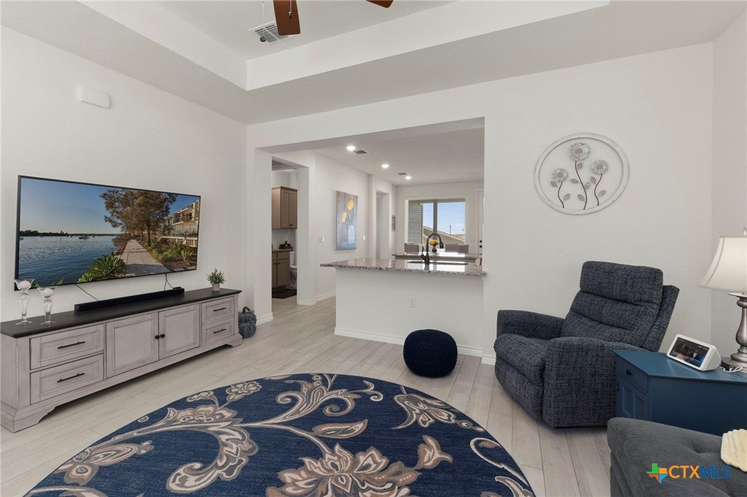 Resort-Style Kissing Tree Cottage! Sip your morning coffee on the covered front porch with no one next to you while hummingbirds flutter nearby—this charming 2-bedroom, 2-bathroom cottage offers the perfect blend of comfort and community in the heart of Kissing Tree’s vibrant 55+ resort-style neighborhood. Situated on a premium lot beside a peaceful park area, this home enjoys added privacy and scenic views with no neighbor immediately next door. Inside, wood-look tile flooring stretches throughout the open-concept layout, creating a stylish yet low-maintenance living space. The kitchen is a natural gathering spot, featuring granite countertops and a layout perfect for entertaining. The spacious bedrooms include thoughtful extras, with twin Murphy beds remaining to offer flexible guest accommodations. A covered back patio invites you to unwind after a round of golf or a morning at the pickleball courts. Appliances including the refrigerator, washer, and dryer convey with the home, making this a true turnkey retreat. Experience the unmatched lifestyle of Kissing Tree with access to a championship golf course, two sparkling pools, fitness center, chef-inspired restaurant, biergarten, pickleball, and countless community events. This is more than a home—it’s a lifestyle waiting for you. Come see what makes this cottage so special!