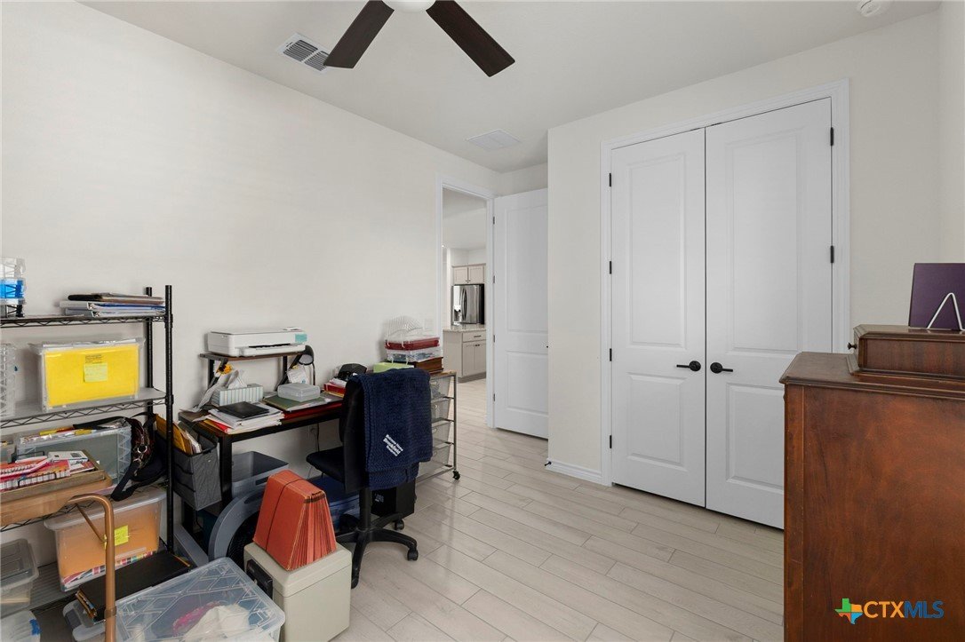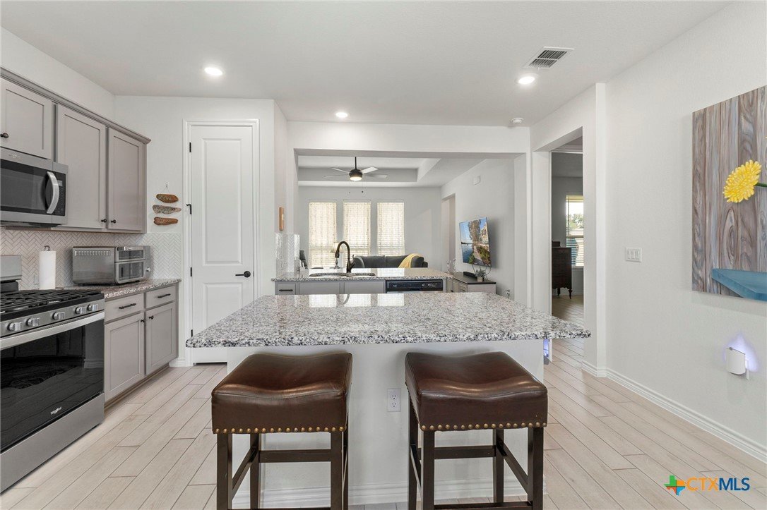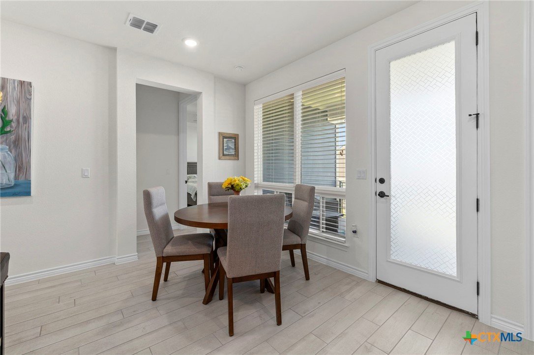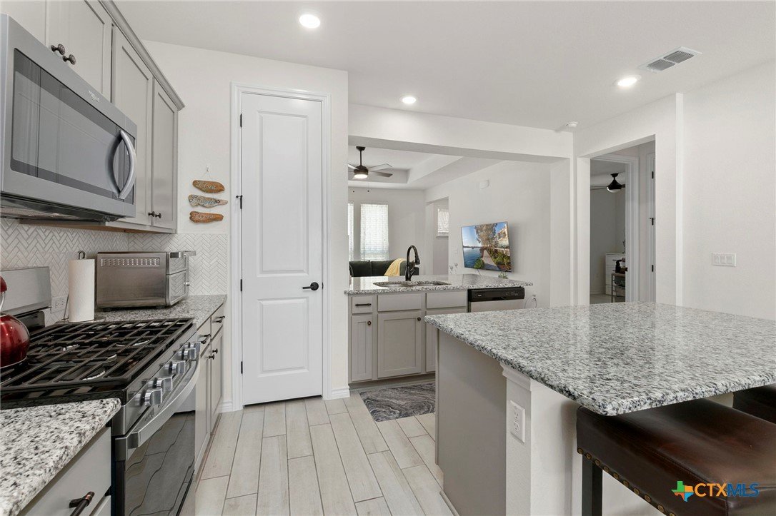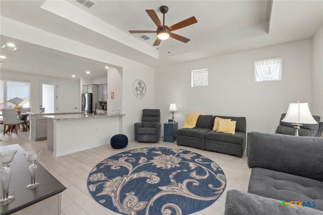 Resort-Style Kissing Tree Cottage! Sip your morning coffee on the covered front porch with no one next to you while hummingbirds flutter nearby—this charming 2-bedroom, 2-bathroom cottage offers the perfect blend of comfort and community in the heart of Kissing Tree’s vibrant 55+ resort-style neighborhood. Situated on a premium lot beside a peaceful park area, this home enjoys added privacy and scenic views with no neighbor immediately next door. Inside, wood-look tile flooring stretches throughout the open-concept layout, creating a stylish yet low-maintenance living space. The kitchen is a natural gathering spot, featuring granite countertops and a layout perfect for entertaining. The spacious bedrooms include thoughtful extras, with twin Murphy beds remaining to offer flexible guest accommodations. A covered back patio invites you to unwind after a round of golf or a morning at the pickleball courts. Appliances including the refrigerator, washer, and dryer convey with the home, making this a true turnkey retreat. Experience the unmatched lifestyle of Kissing Tree with access to a championship golf course, two sparkling pools, fitness center, chef-inspired restaurant, biergarten, pickleball, and countless community events. This is more than a home—it’s a lifestyle waiting for you. Come see what makes this cottage so special!
