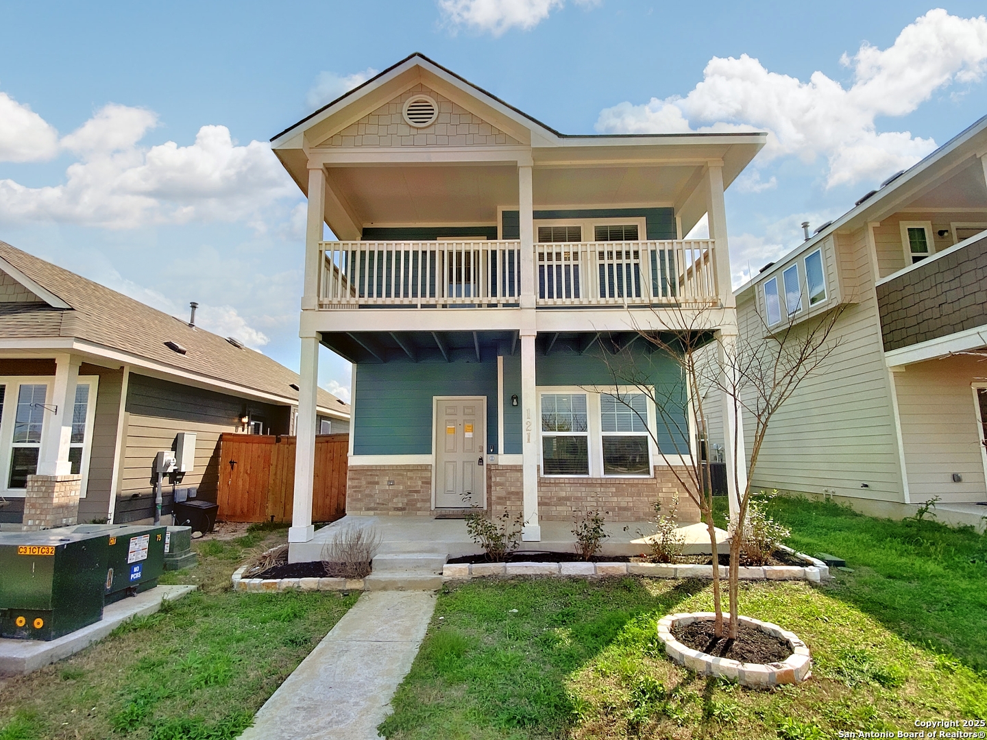 Welcome to 121 Duck Crk Trl, a spacious 2-story home that combines comfort and convenience in every detail. This charming residence features 2 generously sized bedrooms and 2 bathrooms, offering ample room to unwind. The open-concept layout includes a giant living room filled with natural light, complemented by neutral tones and tile flooring for easy upkeep. Ceiling fans throughout the home add year-round comfort, while the kitchen offers a handy pantry for added storage. Upstairs, a covered balcony provides the ideal space to enjoy your morning coffee or relax in any weather. The carpeted bedrooms include a master with a private bathroom and a walk-in closet. Outside, the oversized fenced yard is perfect for entertaining, outdoor lounging, or giving pets space to roam. At the back of the property, a rear-facing garage accommodates two cars and offers plenty of room for storage, hobbies, or a workshop setup. This inviting home delivers practical living with thoughtful touches throughout, all in a welcoming setting.