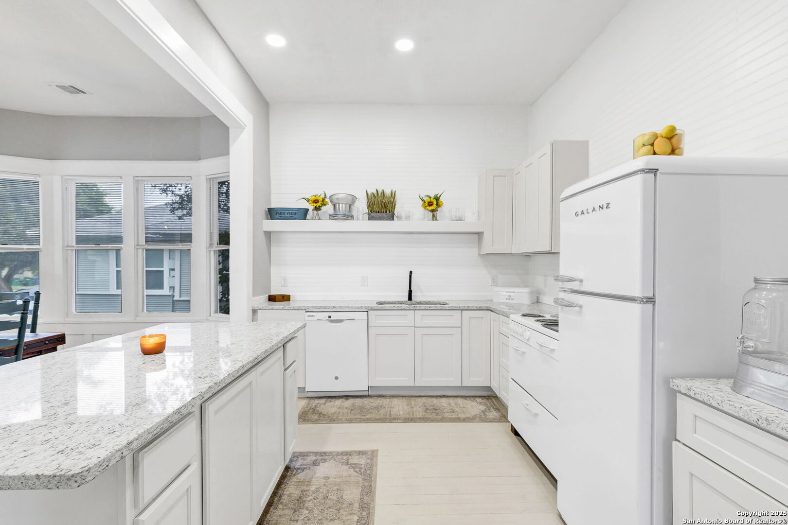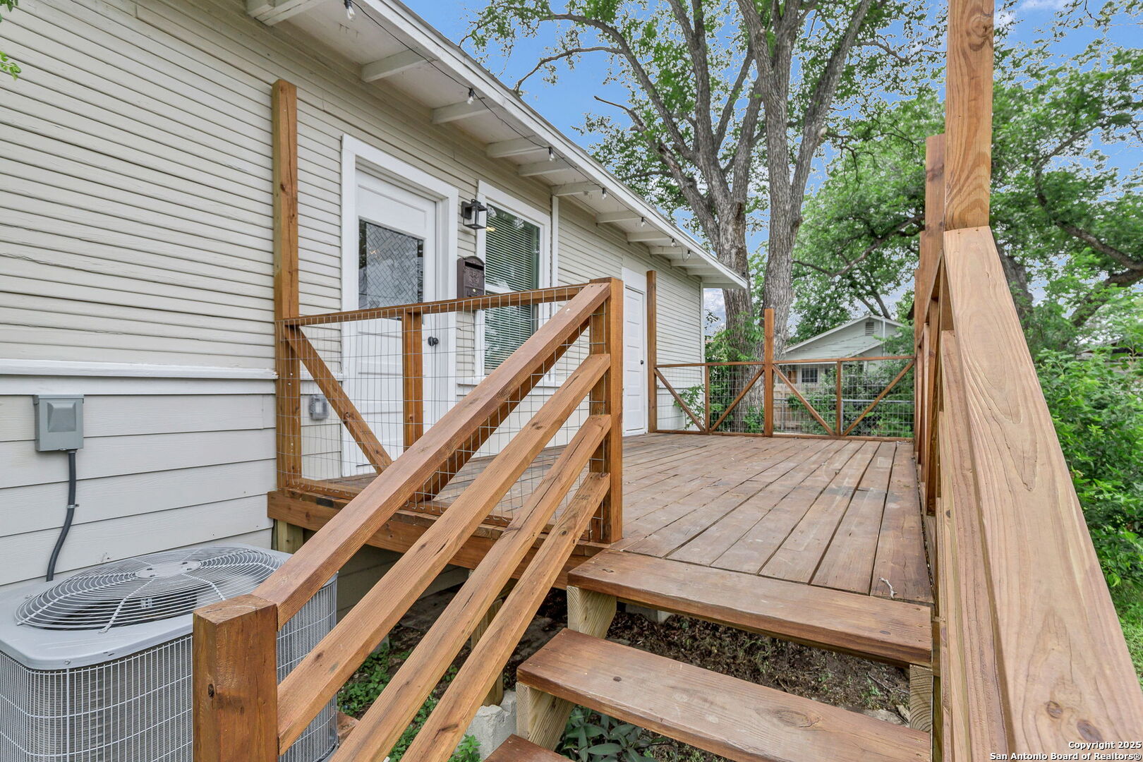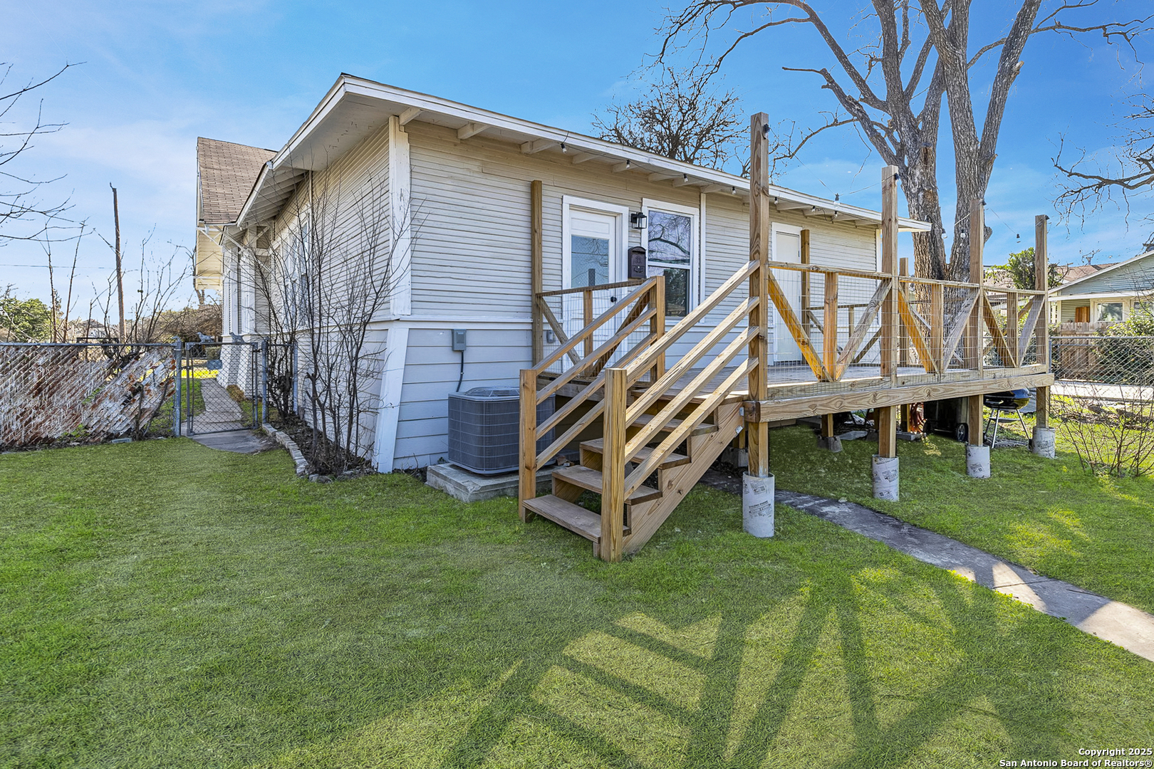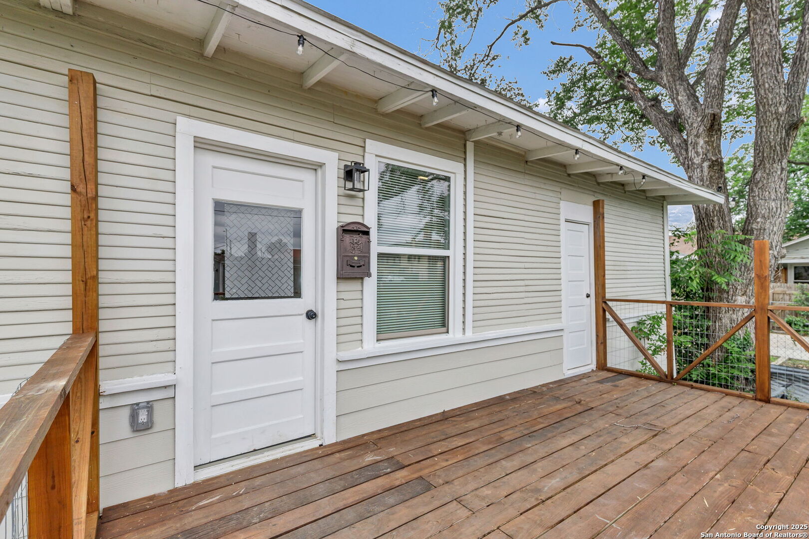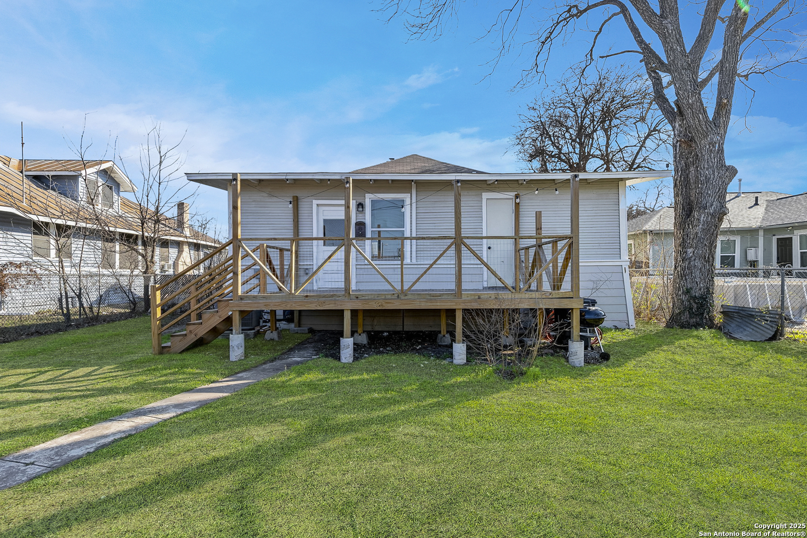 Welcome to this beautifully updated traditional 3-bedroom, 2-bathroom home, offering comfort, style, and peace of mind with major updates already completed. Step inside to find a warm and welcoming living area with plenty of natural light, perfect for relaxing or entertaining. The well-appointed kitchen offers ample counter space and storage, flowing seamlessly into a dining area ideal for family meals and gatherings. Each of the three bedrooms provides a cozy retreat, with the primary suite featuring its own private bathroom for added convenience. A second full bathroom is centrally located, offering ease of access for guests and family members alike. This home has undergone significant improvements to ensure long-term durability and comfort. In 2021, the foundation was professionally repaired with the installation of 53 new cement piers. The plumbing system was fully updated with new PVC and PEX plumbing connected to the city sewer system, with all work inspected and approved in 2022. Additionally, the metal roofing has been updated, making way for a solid and secure roof, giving you added peace of mind. One of the most captivating features of this property is the stunning view of the Tower of the Americas from the back deck-a perfect spot to relax, entertain, or take in the city skyline as the sun sets. Thoughtful details such as high ceilings, classic finishes, and tasteful updates throughout make this home move-in ready while retaining its timeless charm and not your cookie cutter style home that you so often find in San Antonio. Outside, enjoy a private backyard with space for outdoor activities, gardening, or simply unwinding. Located in a desirable neighborhood close to schools, parks, shopping, and public transportation, this home offers the perfect blend of tranquility and accessibility. Don't miss your opportunity to own this charming, structurally sound, and updated home with skyline views-schedule your private showing today!