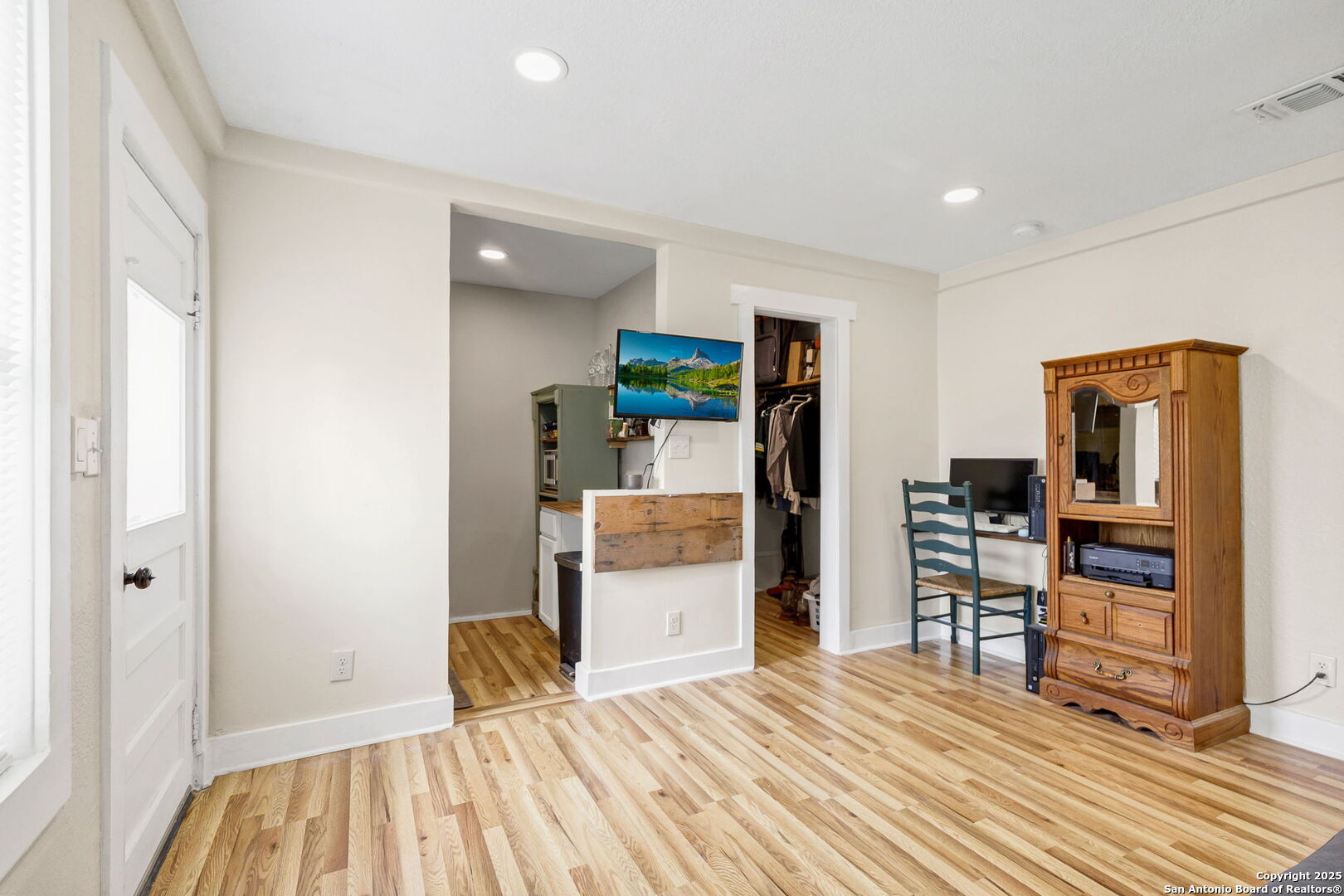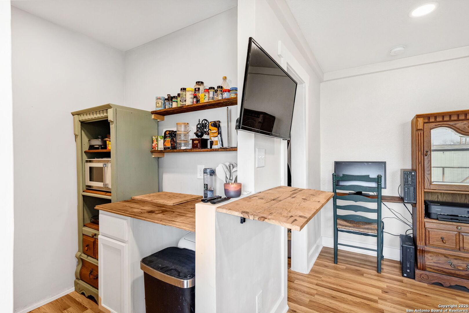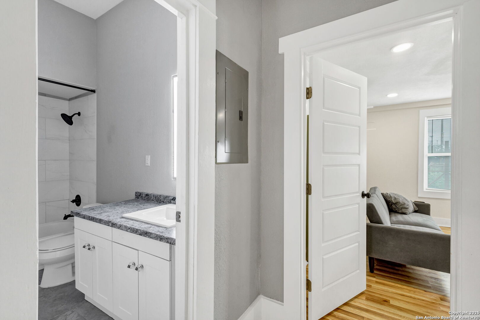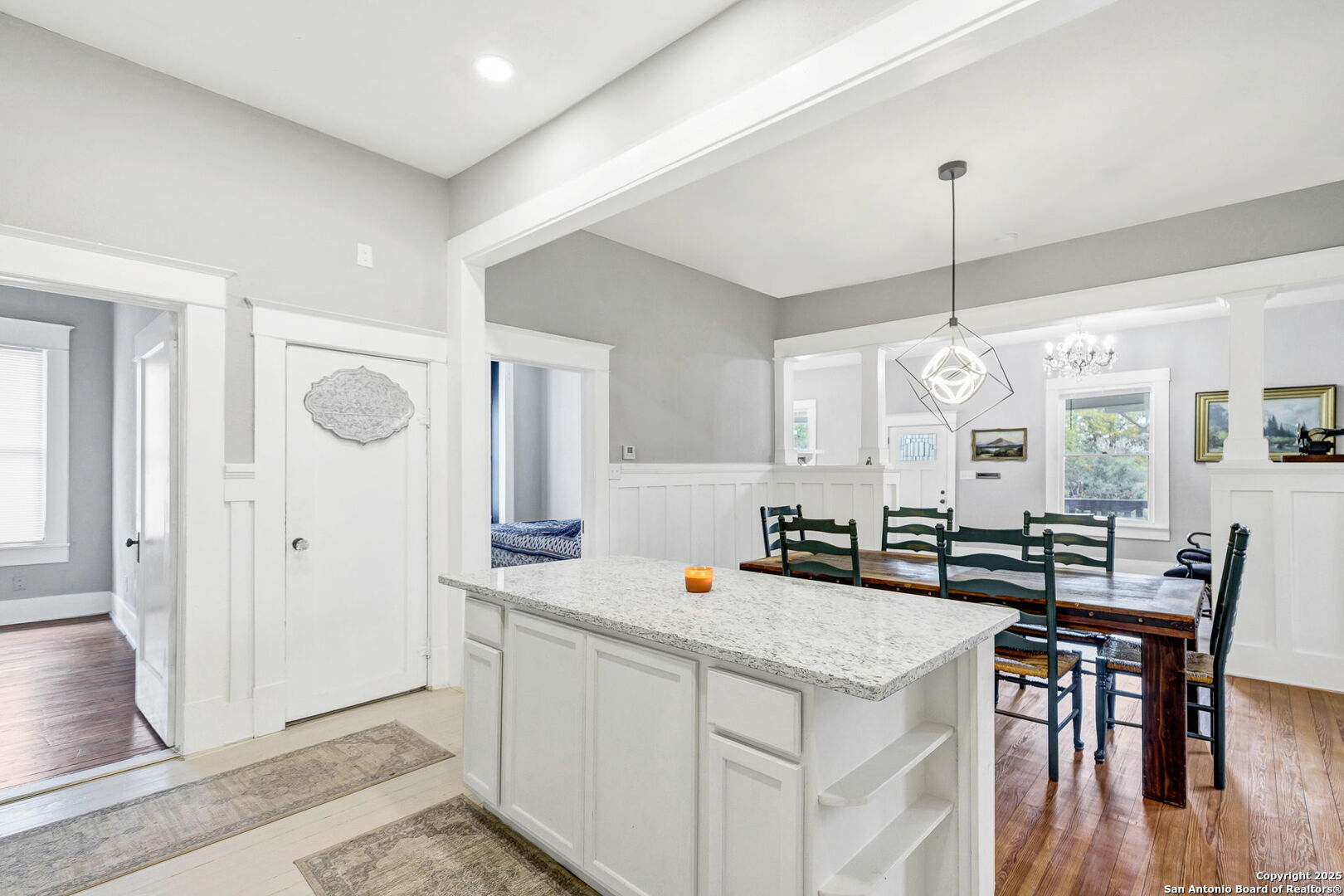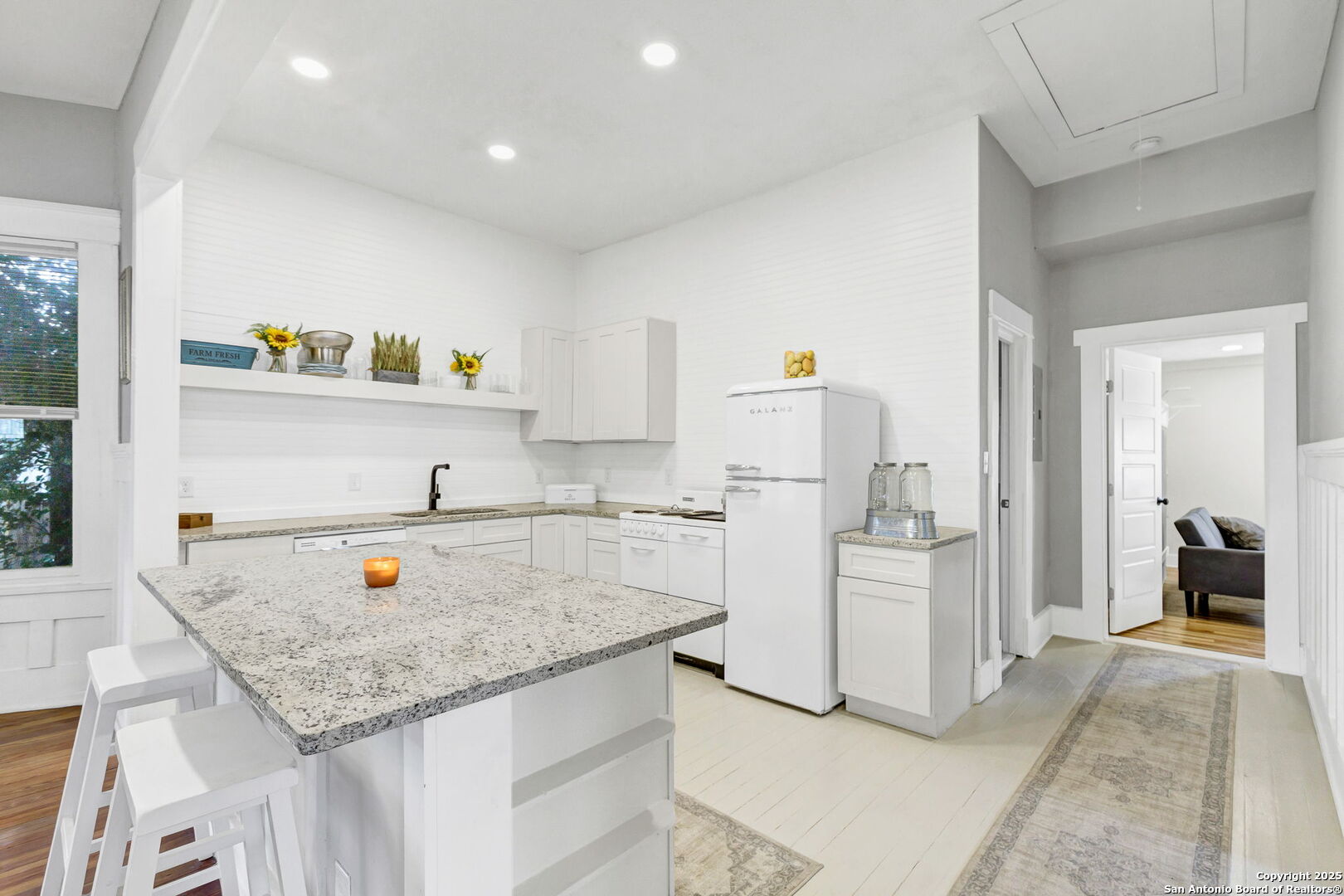 Welcome to this beautifully updated traditional 3-bedroom, 2-bathroom home, offering comfort, style, and peace of mind with major updates already completed. Step inside to find a warm and welcoming living area with plenty of natural light, perfect for relaxing or entertaining. The well-appointed kitchen offers ample counter space and storage, flowing seamlessly into a dining area ideal for family meals and gatherings. Each of the three bedrooms provides a cozy retreat, with the primary suite featuring its own private bathroom for added convenience. A second full bathroom is centrally located, offering ease of access for guests and family members alike. This home has undergone significant improvements to ensure long-term durability and comfort. In 2021, the foundation was professionally repaired with the installation of 53 new cement piers. The plumbing system was fully updated with new PVC and PEX plumbing connected to the city sewer system, with all work inspected and approved in 2022. Additionally, the metal roofing has been updated, making way for a solid and secure roof, giving you added peace of mind. One of the most captivating features of this property is the stunning view of the Tower of the Americas from the back deck-a perfect spot to relax, entertain, or take in the city skyline as the sun sets. Thoughtful details such as high ceilings, classic finishes, and tasteful updates throughout make this home move-in ready while retaining its timeless charm and not your cookie cutter style home that you so often find in San Antonio. Outside, enjoy a private backyard with space for outdoor activities, gardening, or simply unwinding. Located in a desirable neighborhood close to schools, parks, shopping, and public transportation, this home offers the perfect blend of tranquility and accessibility. Don't miss your opportunity to own this charming, structurally sound, and updated home with skyline views-schedule your private showing today!