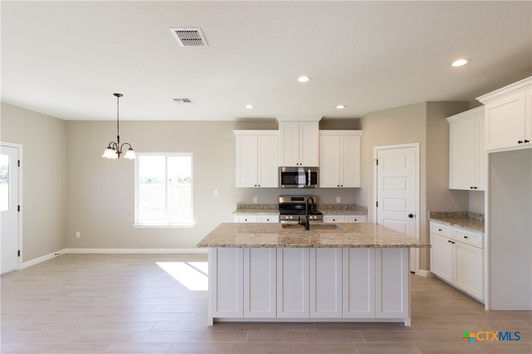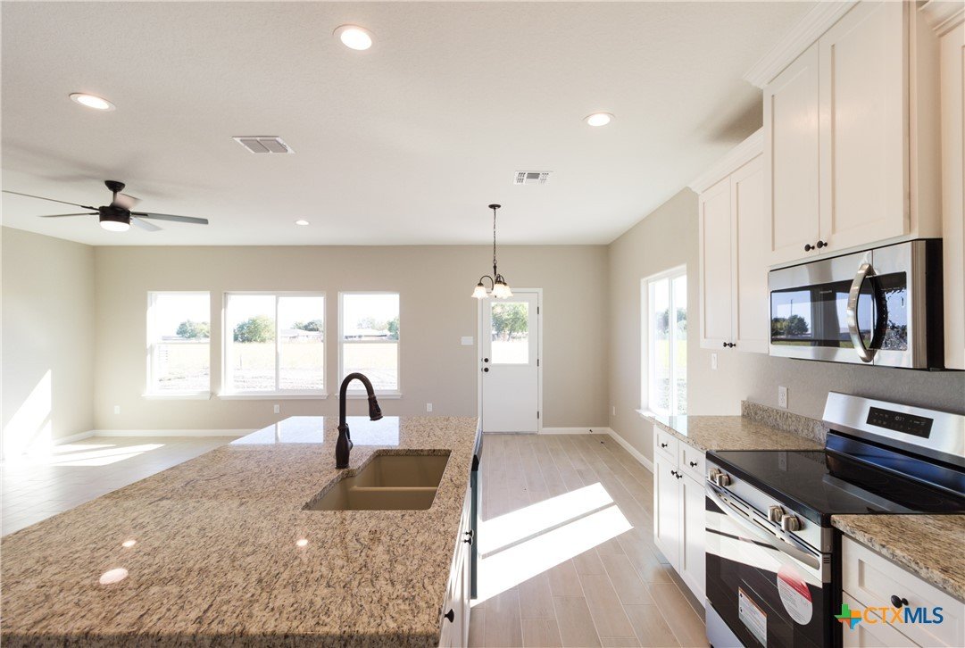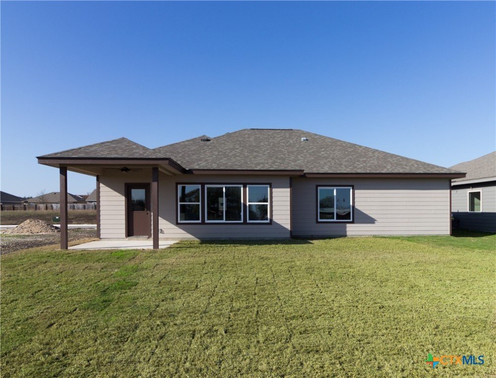 MOVE-IN READY! New custom 1658 SqFt. home conveniently located in Marion Park (Marion, TX) near New Braunfels/San Antonio. Spacious floor plan with 3 bedrooms 2 full baths plus an office/4th bedroom on a level 0.172 acre lot in quiet countryside in Marion ISD. Features NO HOA and high-speed fiber internet! Large master suite with walk-in closet, walk-in tile shower and double vanity. High 9' ceilings throughout the home. Kitchen with oversized island, custom wood cabinets, walk-in pantry and dining area. Wood-look tile flooring in wet areas, living room, and master bedroom with upgraded patterned carpet in the bedrooms and closets. This home includes upgraded features- worth about $10,000-$15,000 value! Granite countertops throughout. Exterior of home has stone 42" tall across the front of the home and hardi-plank batten board. Includes full front, side and back yard landscaping as well as a sprinkler system. Covered back porch perfect for entertaining with TX summer BBQs! Ask us about this home/other new homes under construction- or build on an available lot! Experience Affordable Luxury with Olin Johnson Homes- a trusted custom home builder with over 25 years of experience.