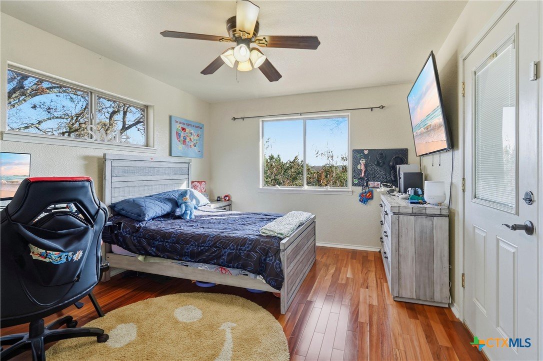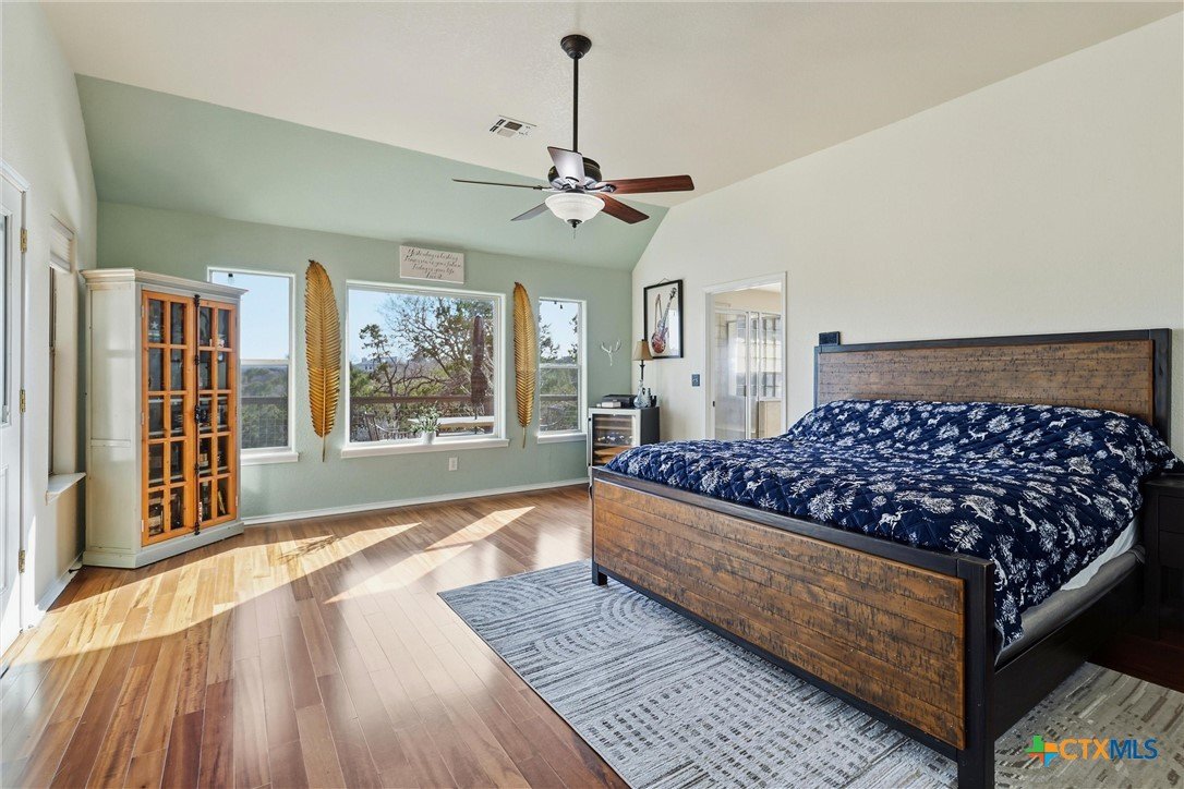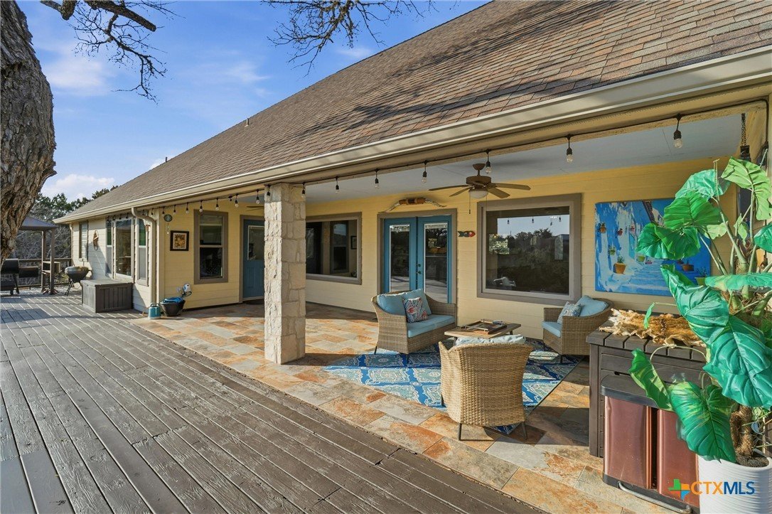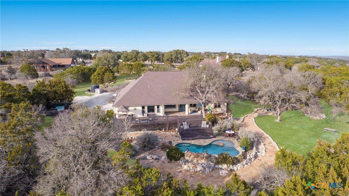 **Hill Country Living at Its Finest** Welcome to your dream retreat where sweeping views meet Texas charm on nearly 3.5 acres of picturesque Hill Country terrain. This custom-built single-story gem delivers the perfect blend of spacious living and natural beauty, tucked away on a quiet cul-de-sac in the sought-after River Mountain Ranch community. Step inside to discover an expansive open floor plan bathed in natural light through stunning picture windows. The corner rock fireplace stretches floor to ceiling, creating a warm focal point for cozy evenings. Your library awaits with vaulted ceilings, exposed wood beams, Brazilian hardwood floors, and custom built-in bookcases-a bibliophile's sanctuary. The family-sized kitchen impresses with granite countertops, an oversized center island with breakfast bar, walk-in pantry, and stainless steel appliances. 4 bedrooms and 3.5 bathrooms provide abundant space, including a versatile 4th bedroom above the garage-perfect as a game room with its own entrance and full bath. The attic presents an exciting opportunity, offering ideal conditions to finish out and create additional living space for growing families or endless possibilities. The primary suite opens directly to the pool deck with breathtaking Hill Country views, while the ensuite bathroom features split vanities, a walk-in shower, and a relaxing garden tub. Secondary bedrooms share a convenient Jack and Jill bathroom. Outside, the Keith Zars pool and expansive deck create your personal oasis. Enjoy private Guadalupe River access for kayaking, swimming, and exploring. Horses, chickens, and bow hunting are permitted on this wildlife-abundant property featuring recreational vehicle parking and high-speed fiber internet. Experience the best of Boerne living-schedule your private showing today!