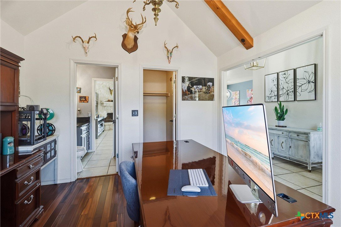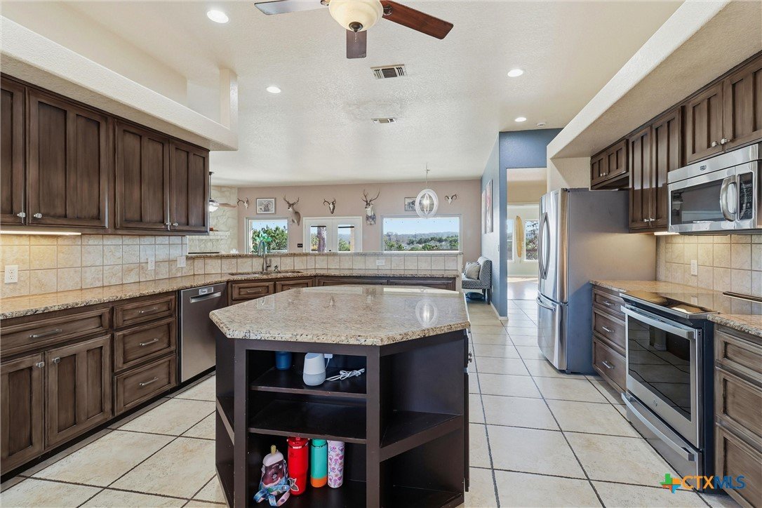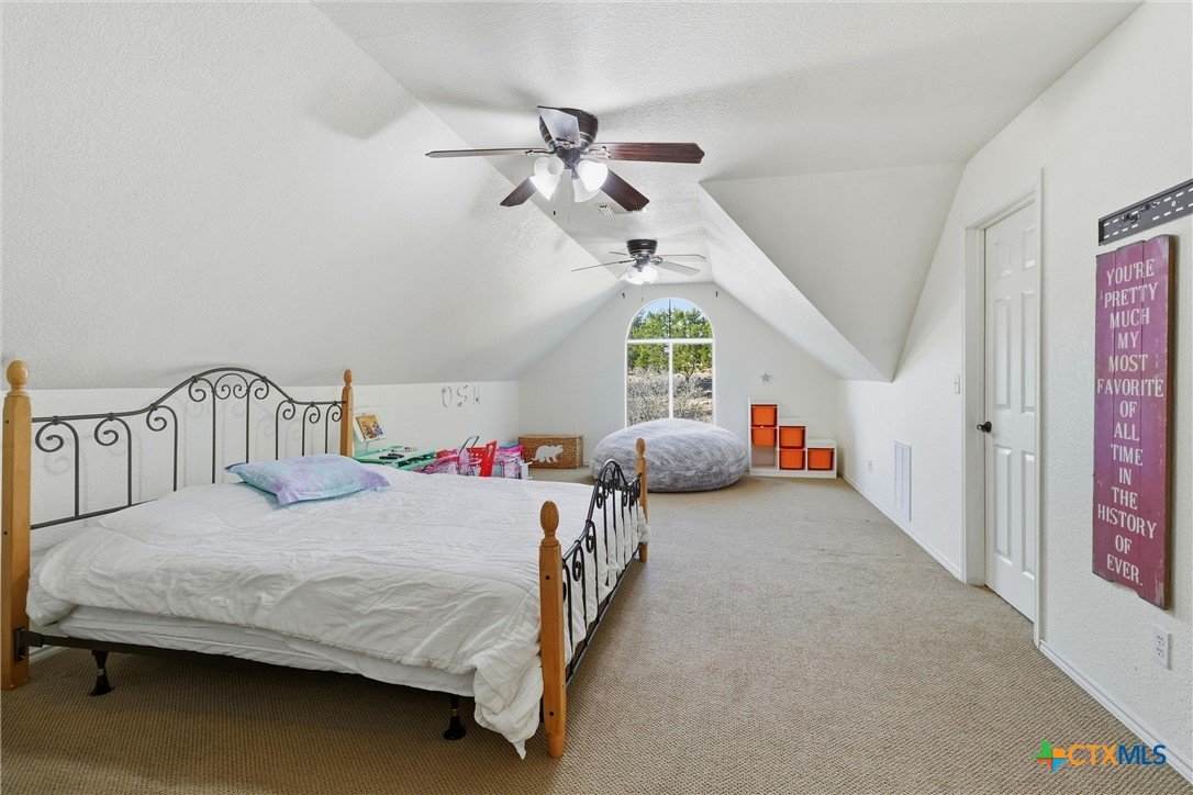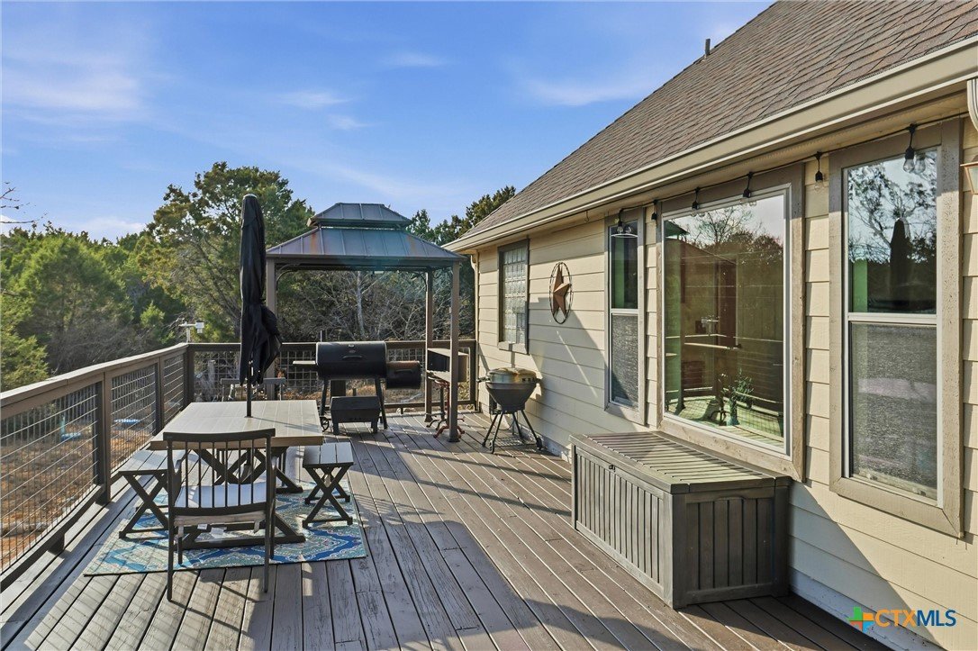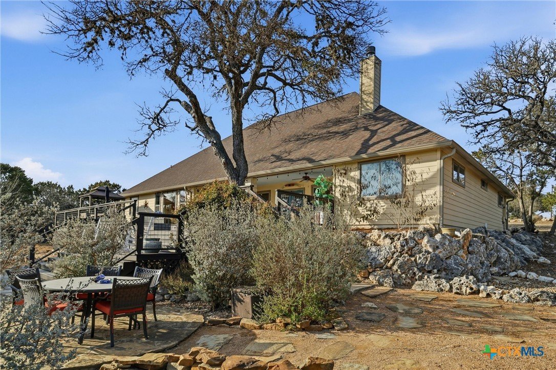 **Hill Country Living at Its Finest** Welcome to your dream retreat where sweeping views meet Texas charm on nearly 3.5 acres of picturesque Hill Country terrain. This custom-built single-story gem delivers the perfect blend of spacious living and natural beauty, tucked away on a quiet cul-de-sac in the sought-after River Mountain Ranch community. Step inside to discover an expansive open floor plan bathed in natural light through stunning picture windows. The corner rock fireplace stretches floor to ceiling, creating a warm focal point for cozy evenings. Your library awaits with vaulted ceilings, exposed wood beams, Brazilian hardwood floors, and custom built-in bookcases-a bibliophile's sanctuary. The family-sized kitchen impresses with granite countertops, an oversized center island with breakfast bar, walk-in pantry, and stainless steel appliances. 4 bedrooms and 3.5 bathrooms provide abundant space, including a versatile 4th bedroom above the garage-perfect as a game room with its own entrance and full bath. The attic presents an exciting opportunity, offering ideal conditions to finish out and create additional living space for growing families or endless possibilities. The primary suite opens directly to the pool deck with breathtaking Hill Country views, while the ensuite bathroom features split vanities, a walk-in shower, and a relaxing garden tub. Secondary bedrooms share a convenient Jack and Jill bathroom. Outside, the Keith Zars pool and expansive deck create your personal oasis. Enjoy private Guadalupe River access for kayaking, swimming, and exploring. Horses, chickens, and bow hunting are permitted on this wildlife-abundant property featuring recreational vehicle parking and high-speed fiber internet. Experience the best of Boerne living-schedule your private showing today!