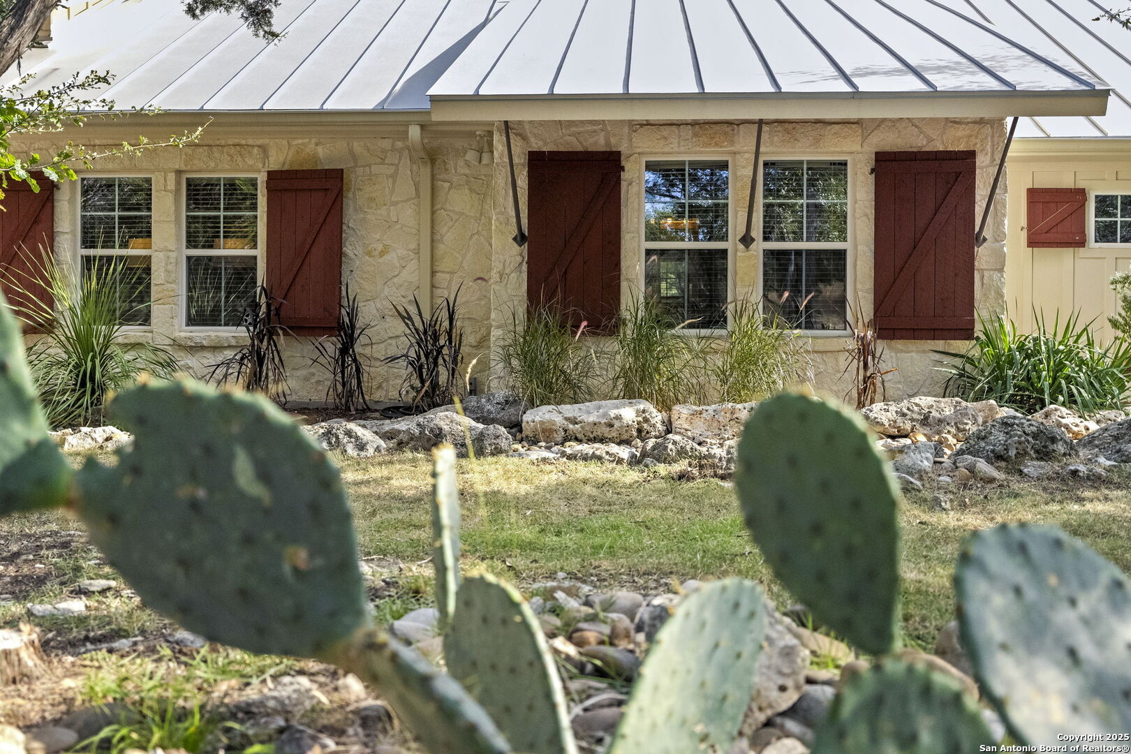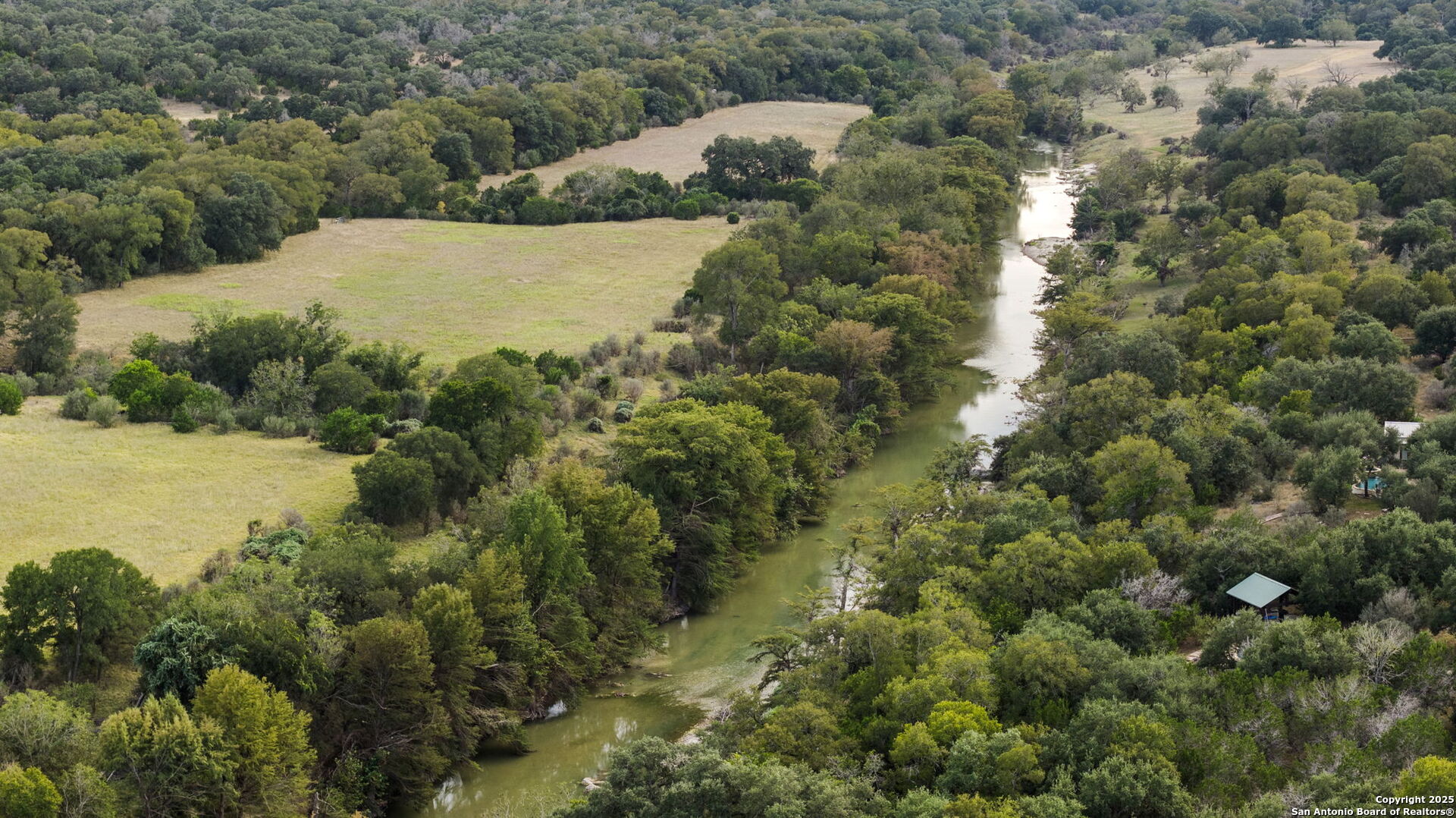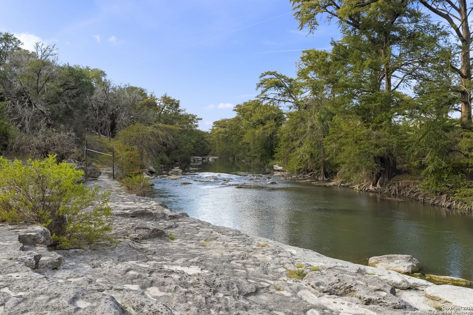 HILL COUNTRY ESTATE WITH RUSTIC ELEGANCE AND MODERN COMFORTS 2,993 Sq Ft * 3 Bed * 3 Bath * Study * 7.7 Acres Nestled among mature oaks in the heart of the Texas Hill Country, this one-of-a-kind property offers the perfect blend of timeless charm and modern convenience just a city block from the Guadalupe River. From its stone exterior and metal roof to its carefully designed interior, every detail reflects the beauty and character of Hill Country living. A winding stone walkway leads to the welcoming front porch, where wood shutters and expansive windows create a warm, inviting first impression. Inside, a stunning open-concept living room is anchored by a floor-to-ceiling masonry fireplace, soaring ceilings with exposed timber beams, and walls of windows that flood the space with natural light. The dining area is beautifully framed with rustic cedar posts taken from the property, while a hallway lined with built-in glass-front cabinets provides the perfect space for display and storage. The spacious island kitchen is a true showpiece, anchored by a professional-grade Viking gas stove and custom knotty wood cabinetry that blends rustic Hill Country warmth with modern convenience. Expansive granite countertops provide generous prep and serving space, while the oversized curved bar invites family and friends to gather with ease. Additional features include a stainless-steel refrigerator, built-in microwave, and abundant storage with a mix of glass-front and solid wood cabinets. A rustic pantry door adds authentic character, tying the space together with timeless Hill Country charm. The private primary suite is a relaxing retreat, featuring wood floors, a cozy sitting area with serene views, and a spa-like bath complete with a walk-in shower, soaking tub, and dual vanities. Additional highlights include 2 spacious secondary bedrooms, a study, and charming hallways that blend comfort with sophistication. Every room has been designed with both function and character in mind, from the warm wood accents to the carefully curated architectural details. Outdoors, the property shines just as brightly. A vintage windmill and rustic red barn bring authentic Hill Country character, while covered porches and sitting areas create ideal spaces for gathering, relaxing, and enjoying Texas sunsets. Whether entertaining, raising a family, or retreating to your private sanctuary, this property offers it all. Enjoy access to three private HOA river parks along the Guadalupe River for floating, kayaking, swimming, or simply unwinding under the cypress trees. Farm animals are welcome, and bow hunting is permitted. With low property taxes and a prime location-just 20 minutes to downtown Boerne, 45 minutes to San Antonio, and within award-winning Boerne ISD-this estate is as practical as it is beautiful. Note: Refrigerator, washer, and dryer convey. Most furnishings are negotiable.