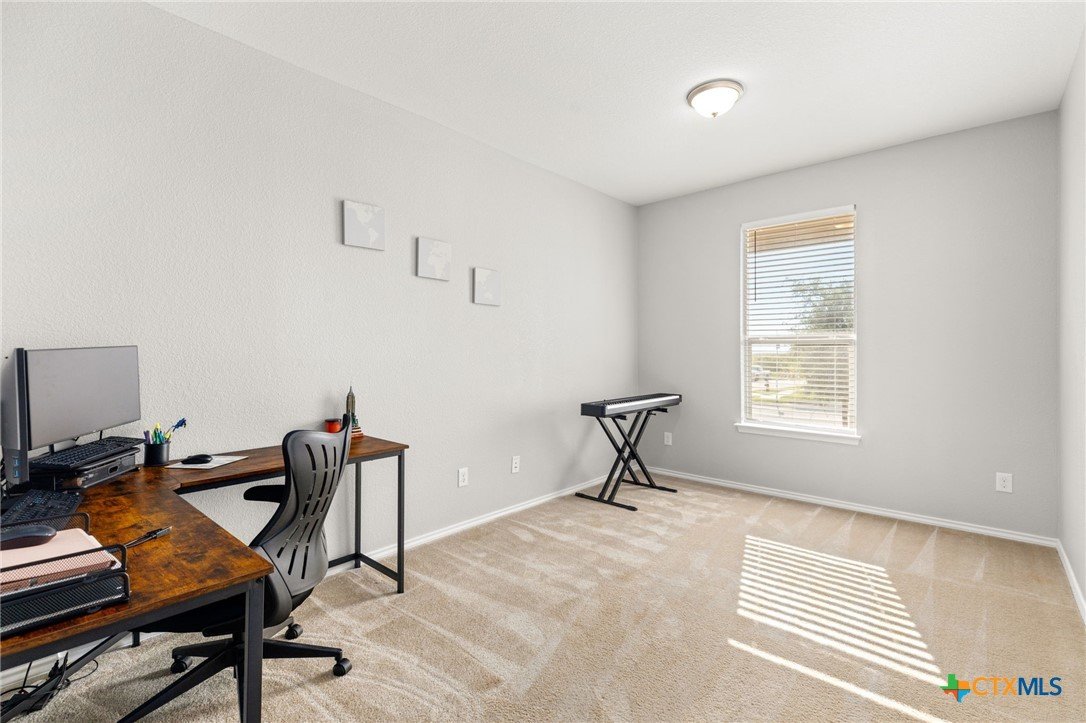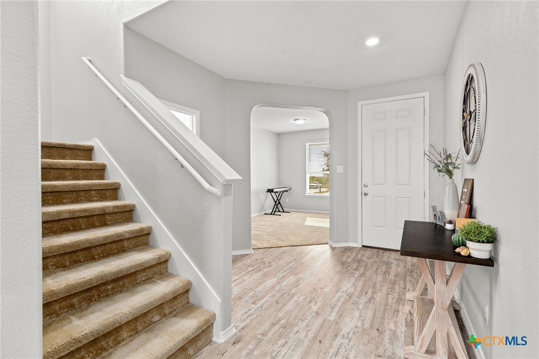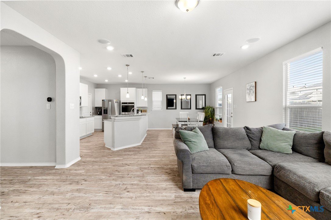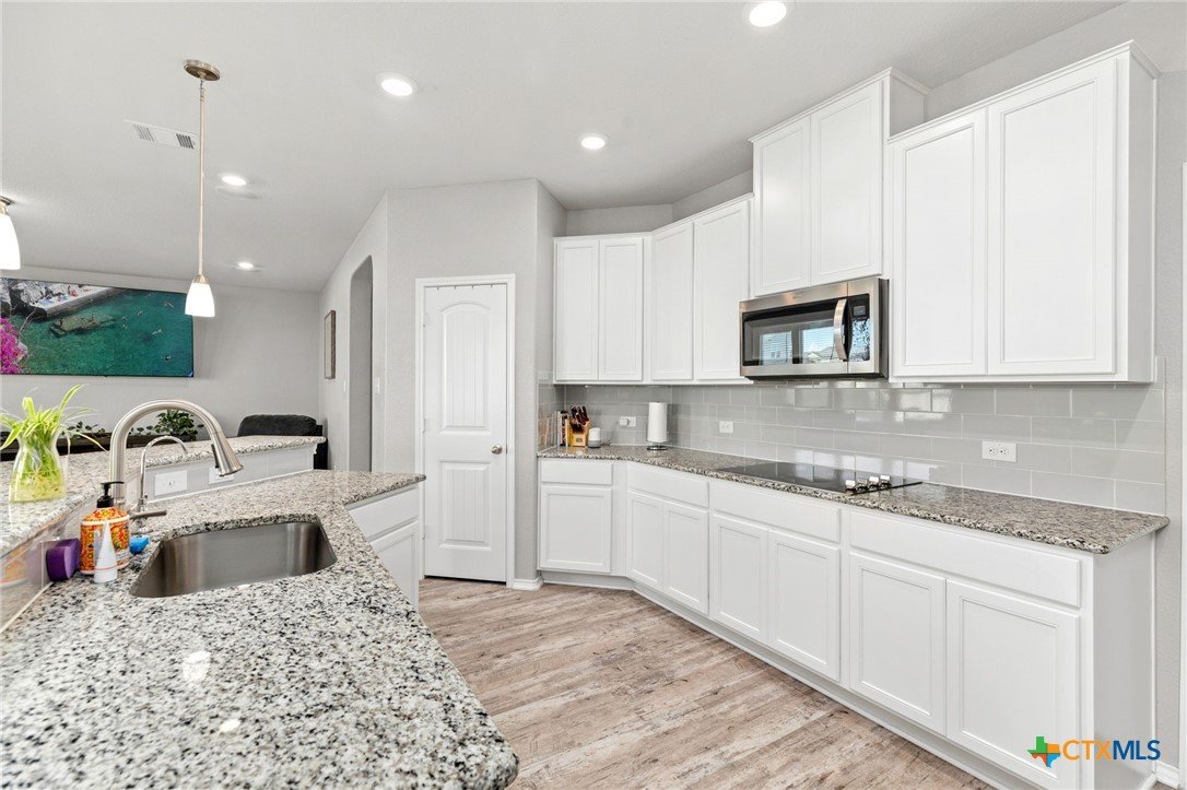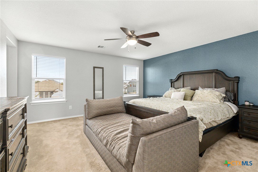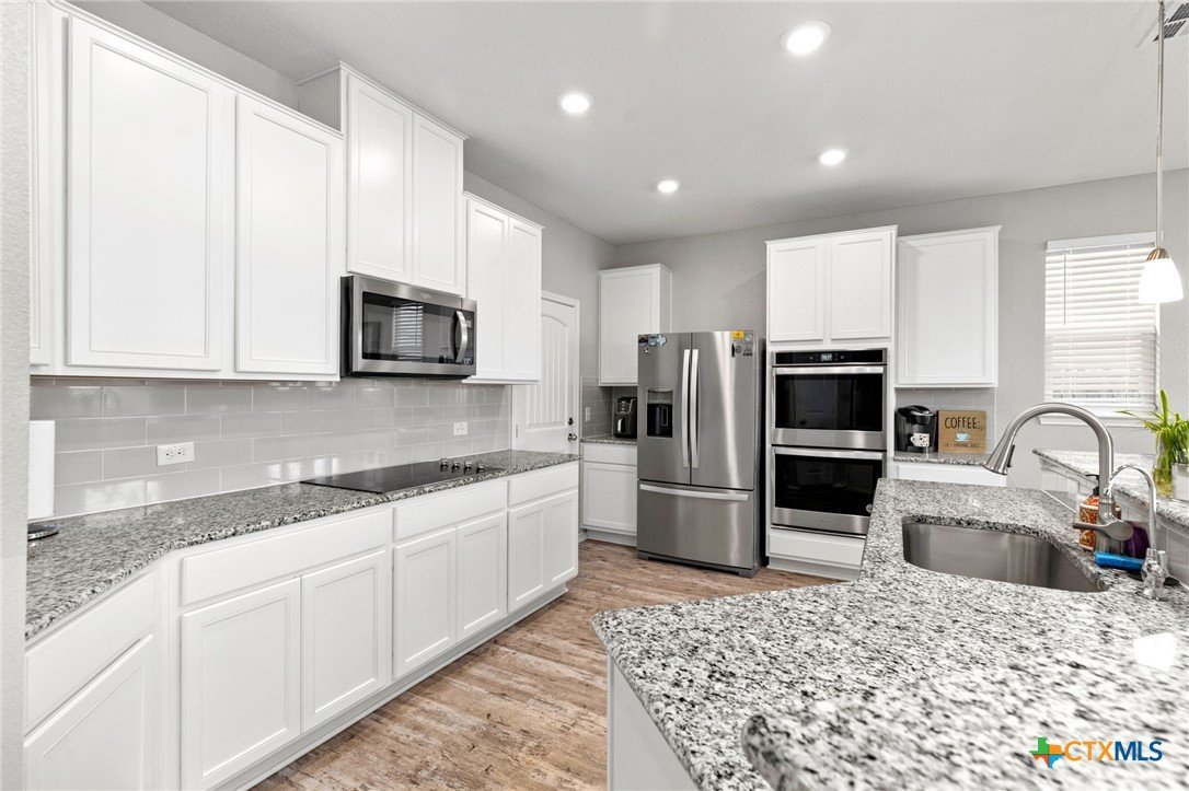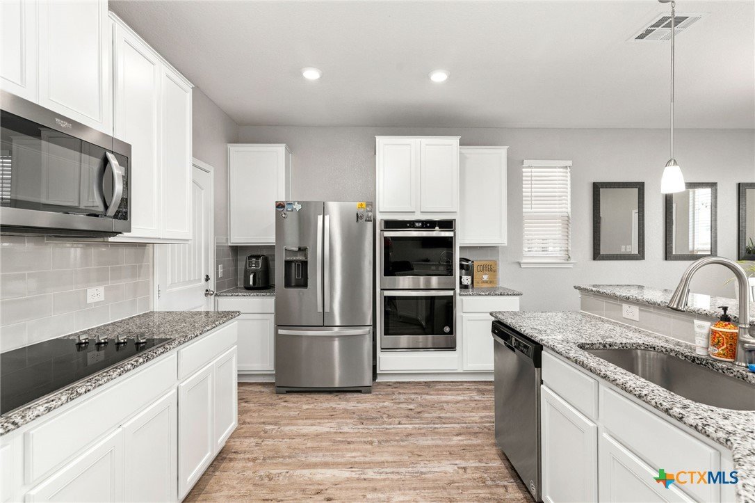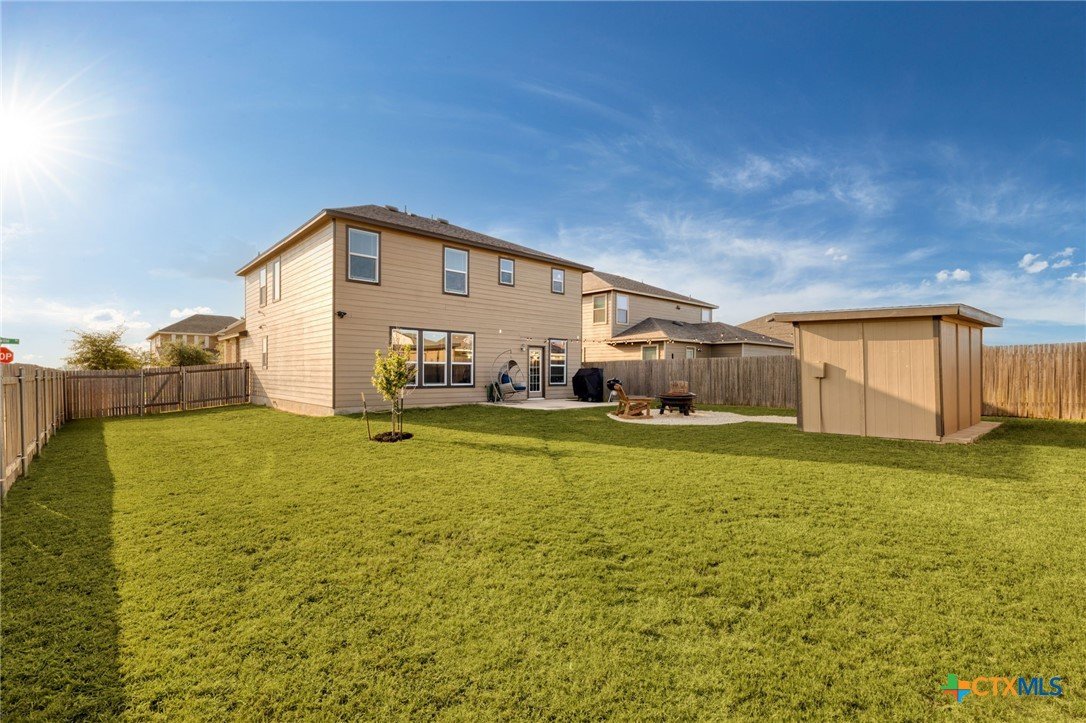 Motivated sellers! Upgraded 3-bed, 2.5-bath home with an open layout and premium finishes. Features include an oversized 8' front door, private office, grey tile flooring, and a gourmet kitchen with double ovens, granite countertops, 42" cabinets, reverse osmosis system, prewired surround sound and security, and a paid-off water softener. The second floor includes your family room, all bedrooms including the primary suite with a large walk-in closet and rainfall shower tower, guest bathroom and laundry room. To top it off, the East-facing backyard offers shaded evenings, a landscaped fire pit and an 8x12 wired (50amp) storage shed that's been turned into your own backyard studio. Minutes from shopping, dining, and entertainment.