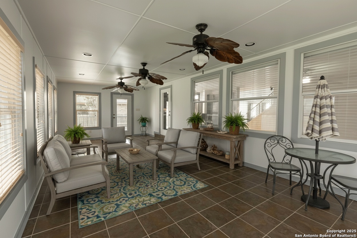 This house comes with a REDUCED RATE. This is a seller paid rate-buydown that reduces the buyer's interest rate and monthly payment. Terms apply, see disclosures for more information. BACK ON MARKET after beautiful upgrades to the kitchen back splash transition, Island counter and fresh coat of paint to accent walls! Welcome to 121 Valona Dr located on a cul-de-sac in the sought after Deer Creek subdivision. Built in 2001 by Ryland, this great floor plan has been upgraded to showcase tons of custom upgrades. Featured in the San Antonio Express-News in 2012, the customized kitchen features an appliance garage, custom kitchen island on lockable wheels with drawer shelves and pull-outs on each side for serving, extended cabinets to ceiling, unique custom breakfast bar, unique custom glass cabinet fronts on top cabinets. New windows throughout with a life time guarantee warranty, and 17 seer HVAC, the energy efficiency in this home is unmatched. New Kitchenaid over the stove microwave with convection, air fryer, sensor steam, and, steam clean. 2024 Whirlpool Fridge goes with the home. The primary bedroom features newer flooring, fresh coat of paint, new fixtures and 2 large walk in custom built master closets. From the new 30 yr cat. 4 roof to the custom closets and fully remodeled bathrooms, down to the porcelain floors, you will find upgrades galore! (See additional docs for all upgrades) Before heading outdoors, you will enjoy a tiled, insulated and enclosed lanai off of family room with ceiling fans. The outside space is ready for immediate enjoyment. The landscaped backyard has a full custom shed on concrete base with electricity and a concrete hot tub pad. Great neighbors! The home is conveniently located near local shopping and dining, Randolph AFB, and has easy access to I-10, I-35 and 1604. Popular neighborhood amenities include 2 pickleball courts, a sports court, a volleyball court, park/playground, and a covered pavilion with restrooms. SCUCISD schools - Clemens High School, walking distance to elementary and middle schools.