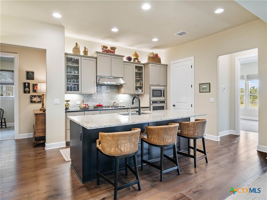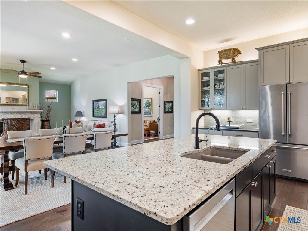 Live the Resort Lifestyle You’ve Dreamed Of! Welcome to the luxurious 55+ community of Kissing Tree, where every day feels like a vacation! Enjoy world-class amenities including pickleball, golf, swimming, a state-of-the-art gym, on-site restaurant, vibrant social groups, and frequent community gatherings—all just steps from your front door. This show-stopper home delivers the ultimate WOW factor and sits right on green 3 of the golf course, offering sweeping views from your oversized covered back patio. Out front, enjoy a tranquil tree-lined preserve for even more natural beauty. Inside, the home boasts designer finishes throughout and thoughtful upgrades made by the current owners that you’ll fall in love with instantly. With a tile roof, stucco siding, and elevated design touches, this home exudes elegance and quality. Offering 2 spacious bedrooms, a dedicated study, and an additional craft/hobby room, the flexible floor plan adapts to your lifestyle. The open-concept living area features a gorgeous fireplace—perfect for relaxing or entertaining in style. This is more than just a home—it's a gateway to living your best life in one of the most sought-after active adult communities in Texas. Don’t miss your chance to experience the Kissing Tree lifestyle—schedule your private showing today!