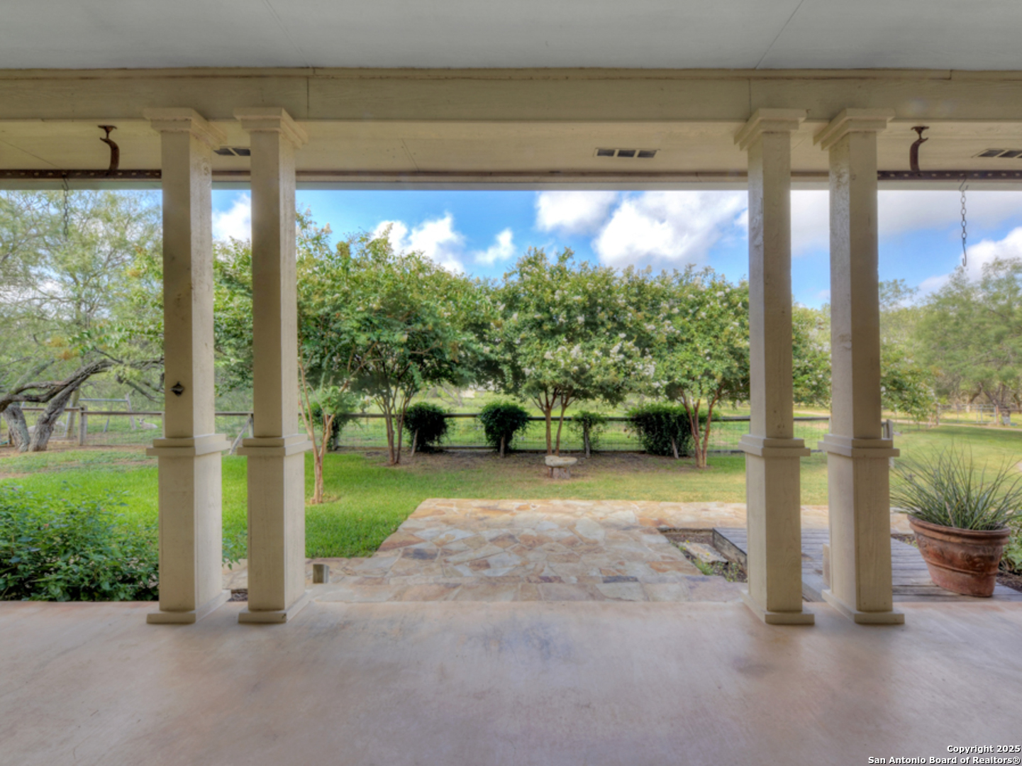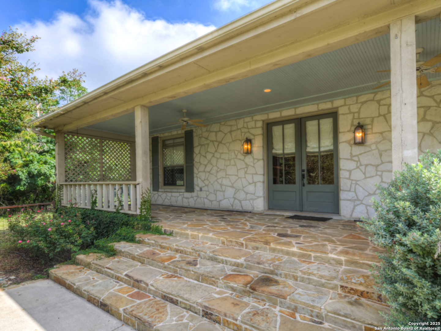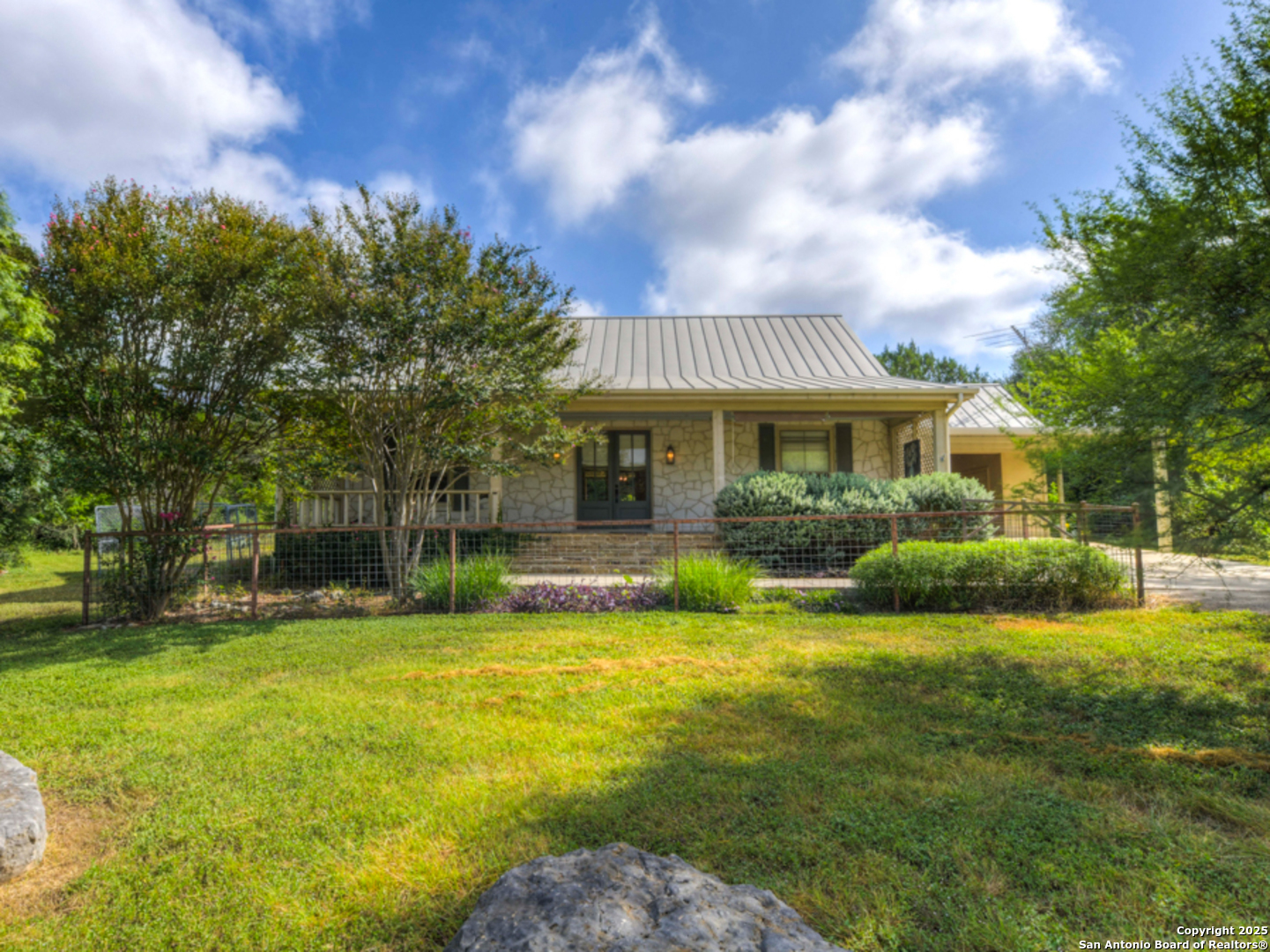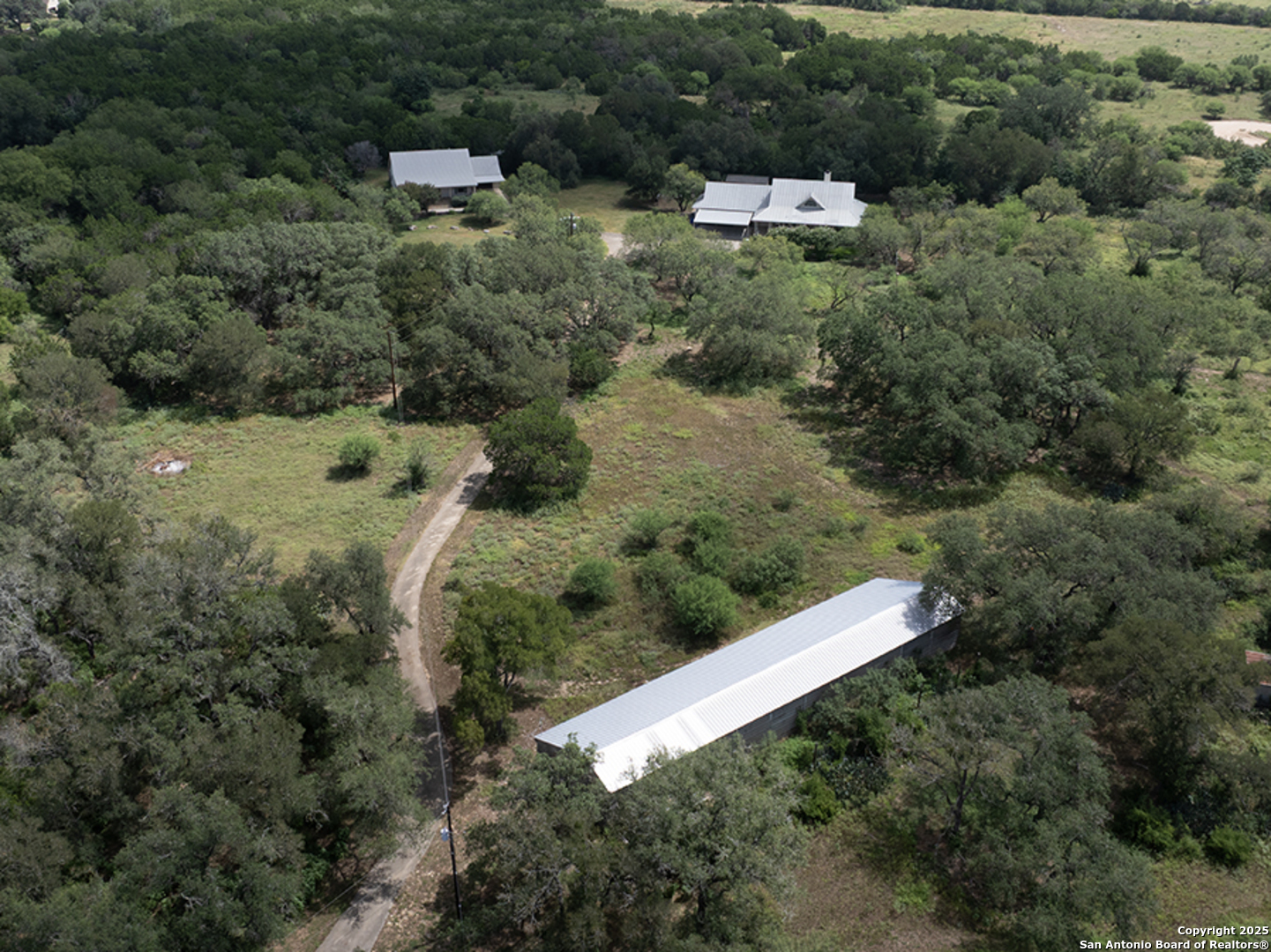 Extraordinary Hueco Springs Ranches Gated 10.08 +/- Acres with a 4 Bedroom, 3.5 Bath Hill Country Home with an Attached Garage Apartment and a Charming 2 Bedroom, 2 Bath Cottage Added with Like Architectural Style. The cottage was built in 2001 by the same custom builder that built the original home. Majestic oak trees are scattered throughout the property that additionally features a cocktail pool (4 ft. deep), Tuff Shed, large metal barn (4961 sq. ft., per appraisal district with water and electric), 30 amp circuit near barn for RV, side pasture, additional gate near homes to separate the main pasture, covered parking at both homes, and rainwater capture systems for the pool and at the front of the main house. Built in custom cabinetry throughout both homes. The agricultural exemption is listed as Native Pasture on the appraisal district site, Open Use per owner. The address is actually on Whispering Woods Trail.