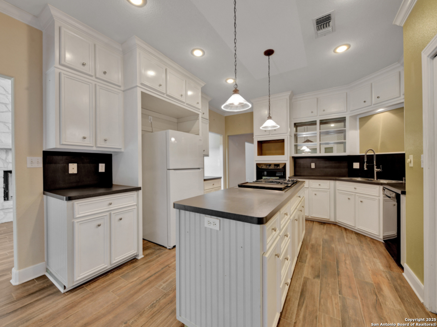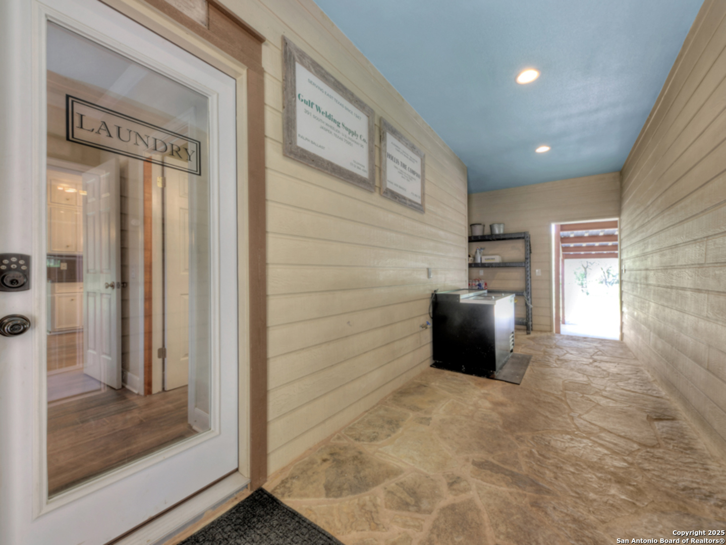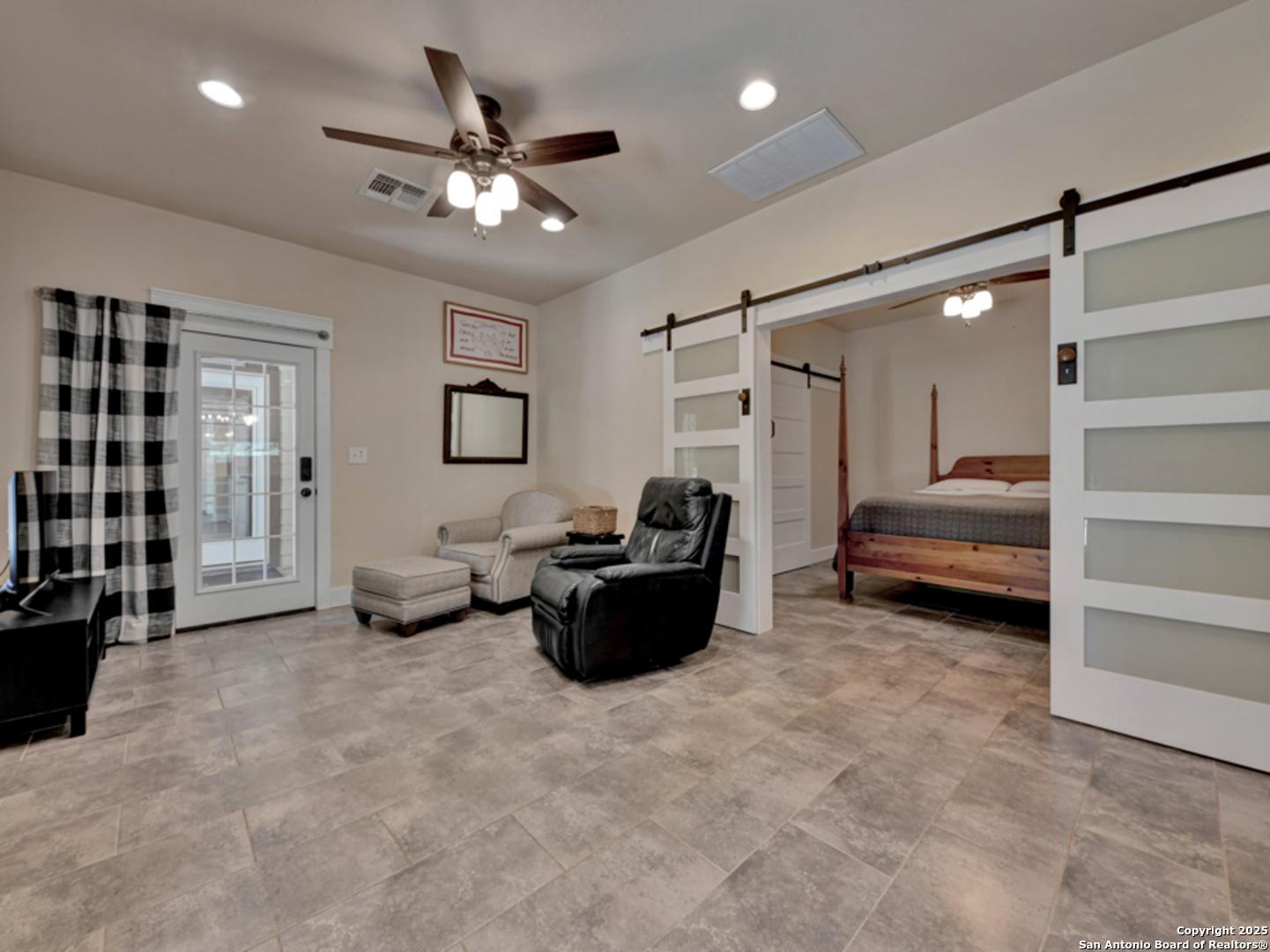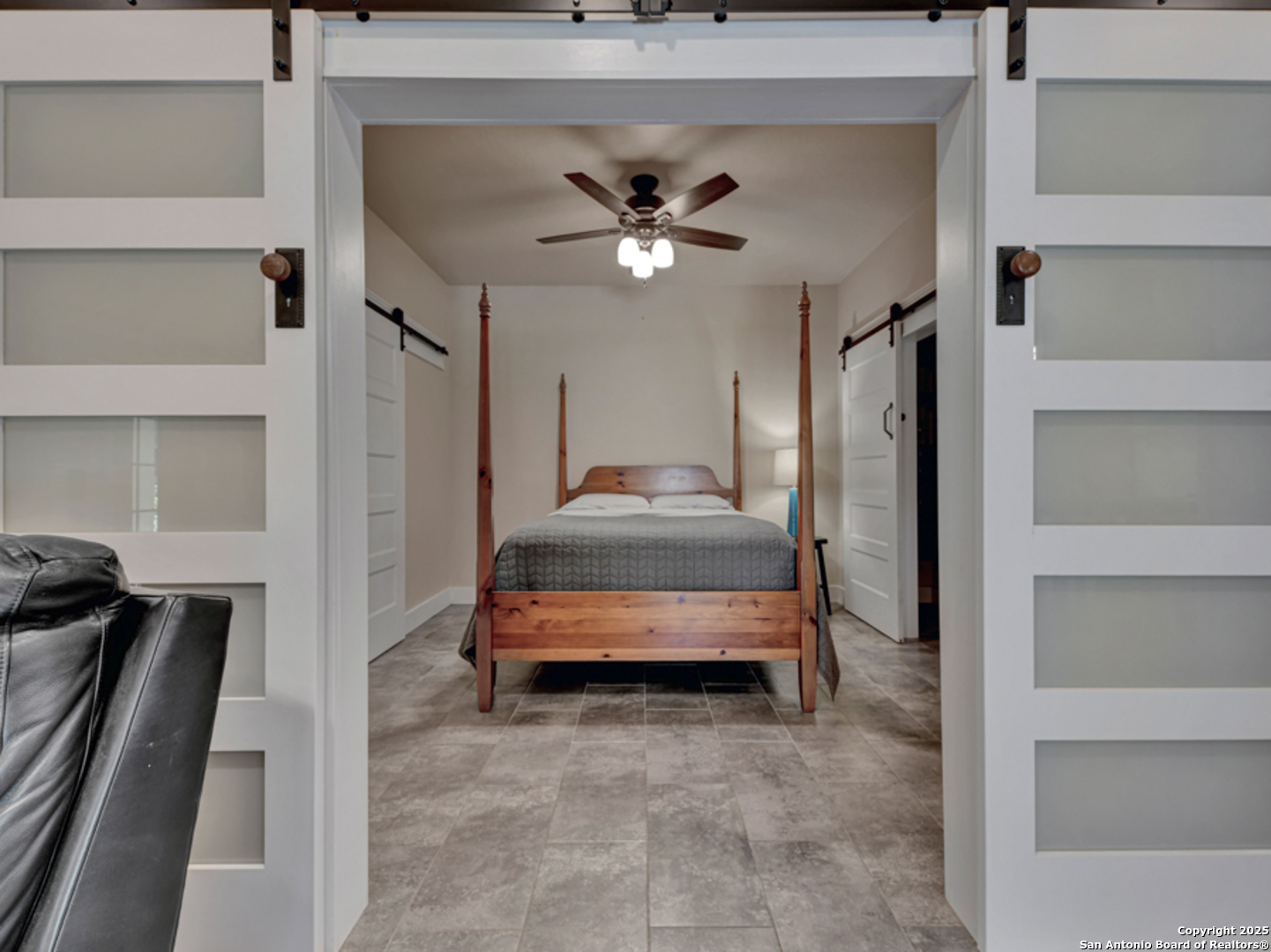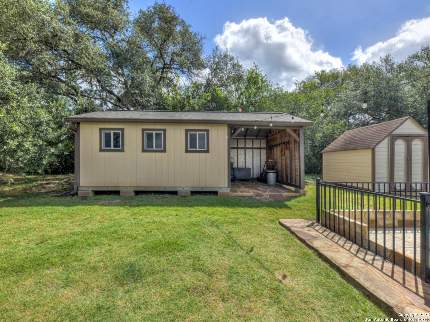 Extraordinary Hueco Springs Ranches Gated 10.08 +/- Acres with a 4 Bedroom, 3.5 Bath Hill Country Home with an Attached Garage Apartment and a Charming 2 Bedroom, 2 Bath Cottage Added with Like Architectural Style. The cottage was built in 2001 by the same custom builder that built the original home. Majestic oak trees are scattered throughout the property that additionally features a cocktail pool (4 ft. deep), Tuff Shed, large metal barn (4961 sq. ft., per appraisal district with water and electric), 30 amp circuit near barn for RV, side pasture, additional gate near homes to separate the main pasture, covered parking at both homes, and rainwater capture systems for the pool and at the front of the main house. Built in custom cabinetry throughout both homes. The agricultural exemption is listed as Native Pasture on the appraisal district site, Open Use per owner. The address is actually on Whispering Woods Trail.