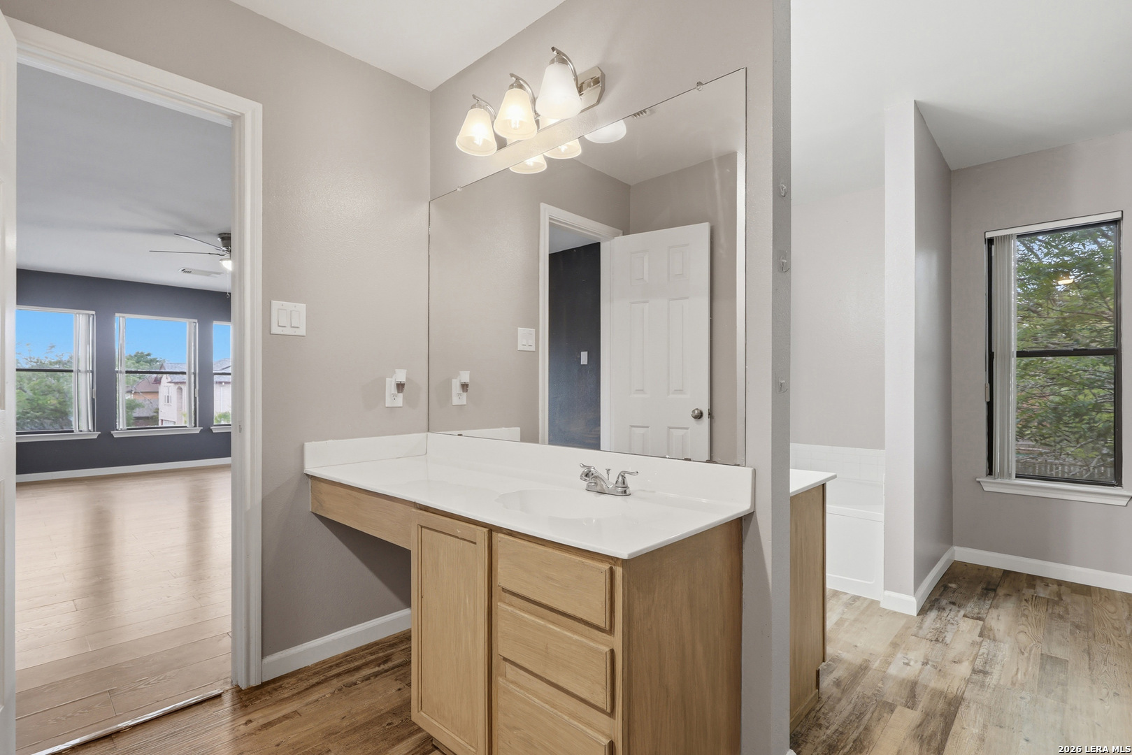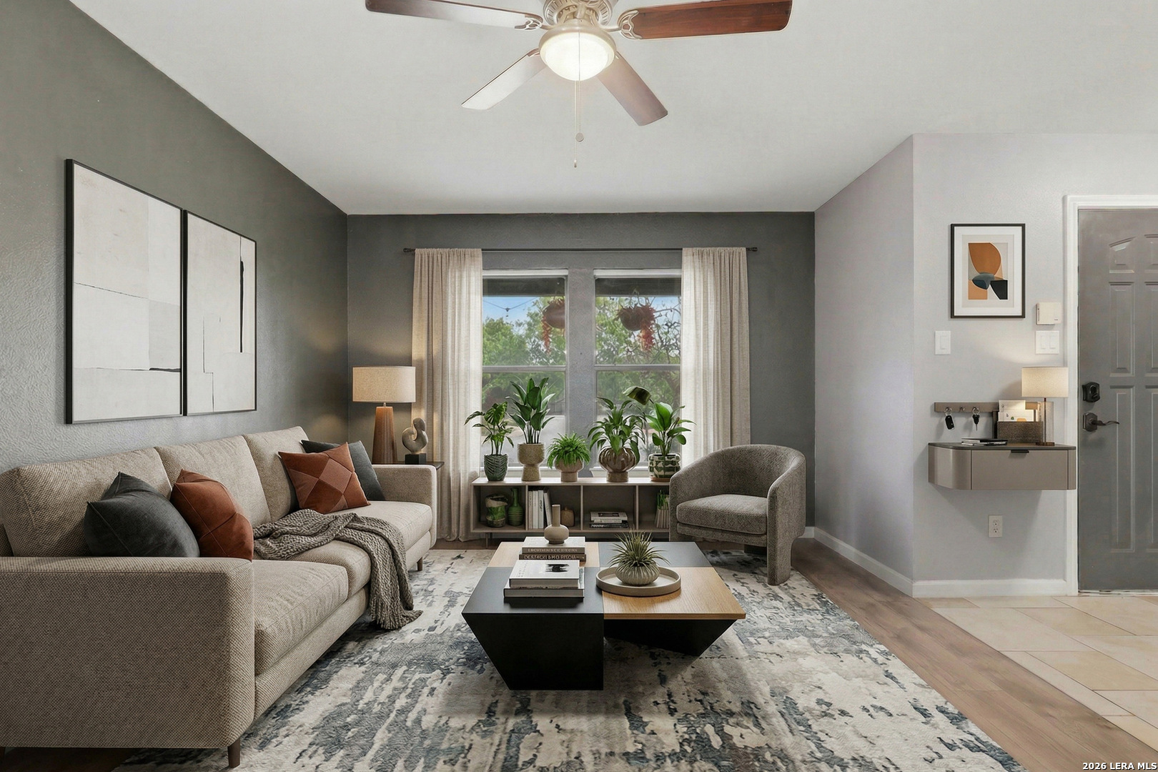Located in the established Westcreek Oaks community, this well maintained San Antonio home offers an open concept design creates a seamless flow between the living, dining, and kitchen areas, filled with natural light and ideal for both everyday living and entertaining. The kitchen offers ample counter space and cabinetry, opening to the main living area for effortless connection. The spacious primary suite provides a private retreat and features dual closet setup along with a well-appointed ensuite bath. Secondary bedrooms offer flexibility and an upstairs loft ideal for playroom, office or home gym. This carpet free home is full of possibilities. Step outside to a private, rustic backyard perfect for relaxing or gathering with friends. Residents enjoy community amenities including a pool and sports court, adding to the lifestyle appeal. Conveniently located with easy access to major highways, shopping, and dining, this home offers comfort, convenience, and value in a sought-after neighborhood. Area conveniences - Lackland AFB is 11 miles, Seaworld 2 miles, USAA and San Antonio Riverwalk within 20 miles. Zoned to Northside ISD schools.