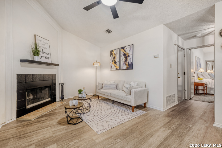 Welcome to 12105 Stoney Crossing! This beautifully updated 2-bedroom, 2-bath condo that perfectly blends comfort and style. Recently painted throughout, this home features brand-new vinyl and carpet flooring that adds a fresh, modern feel to every room. The inviting living area centers around a charming wood-burning fireplace with a classic mantle that's perfect for cozy evenings at home. The kitchen is both functional and stylish, complete with a dishwasher, microwave, and updated finishes that make everyday living easy. Check out the stunning Edison Bulb Chandelier that sets the stage for memorable dinners and holiday dishes. Step outside to enjoy a private outdoor space surrounded by mature trees and a privacy fence, offering both shade and seclusion. Whether you're relaxing or entertaining, this town-home style condo provides the perfect setting to call home.