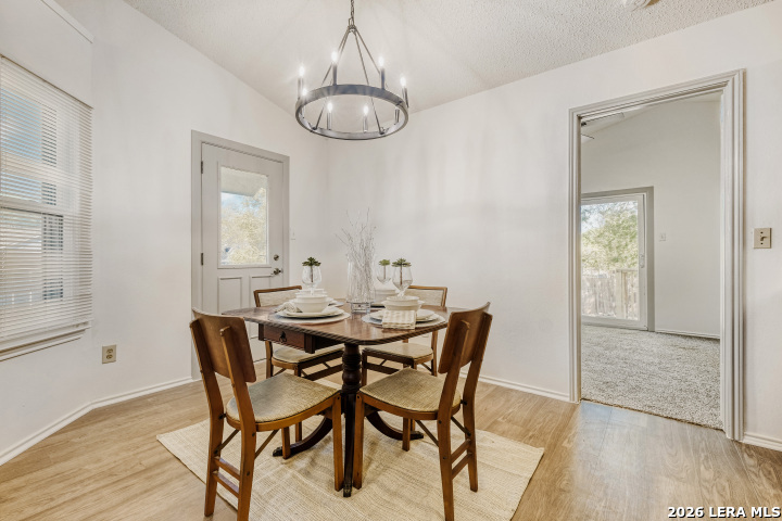 Welcome to 12105 Stoney Crossing! This beautifully updated 2-bedroom, 2-bath townhome style home that perfectly blends comfort and style. Recently painted throughout, this home features brand-new vinyl and carpet flooring that adds a fresh, modern feel to every room. The inviting living area centers around a charming wood-burning fireplace with a classic mantle that's perfect for cozy evenings at home. The kitchen is both functional and stylish, complete with a dishwasher, microwave, and updated finishes that make everyday living easy. Check out the stunning Edison Bulb Chandelier that sets the stage for memorable dinners and holiday dishes. Step outside to enjoy a private outdoor space surrounded by mature trees and a privacy fence, offering both shade and seclusion. Whether you're relaxing or entertaining, this town-home style condo provides the perfect setting to call home.