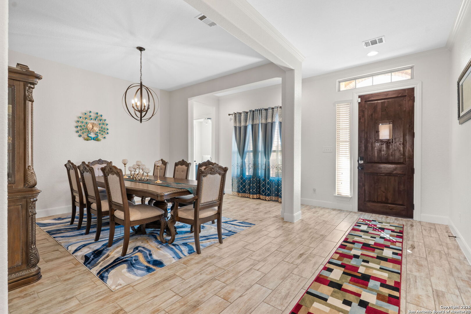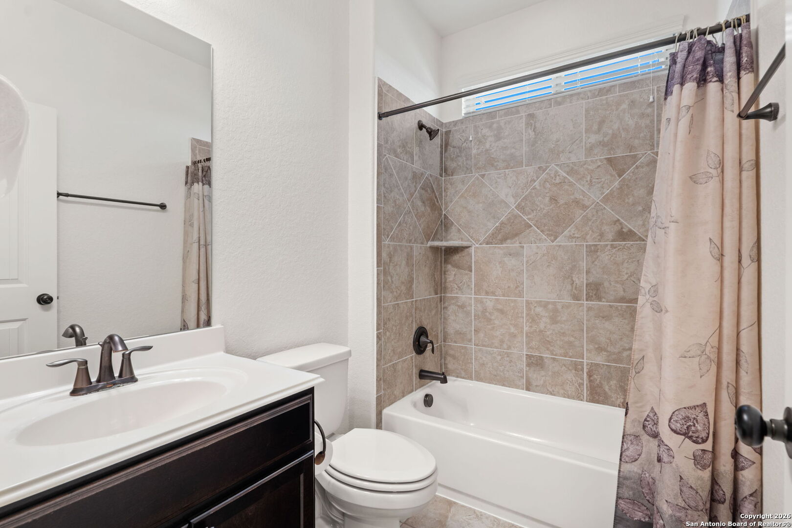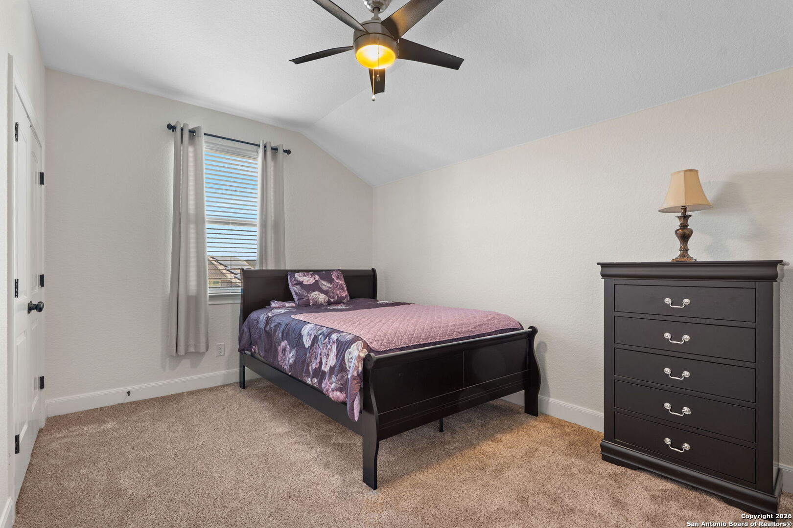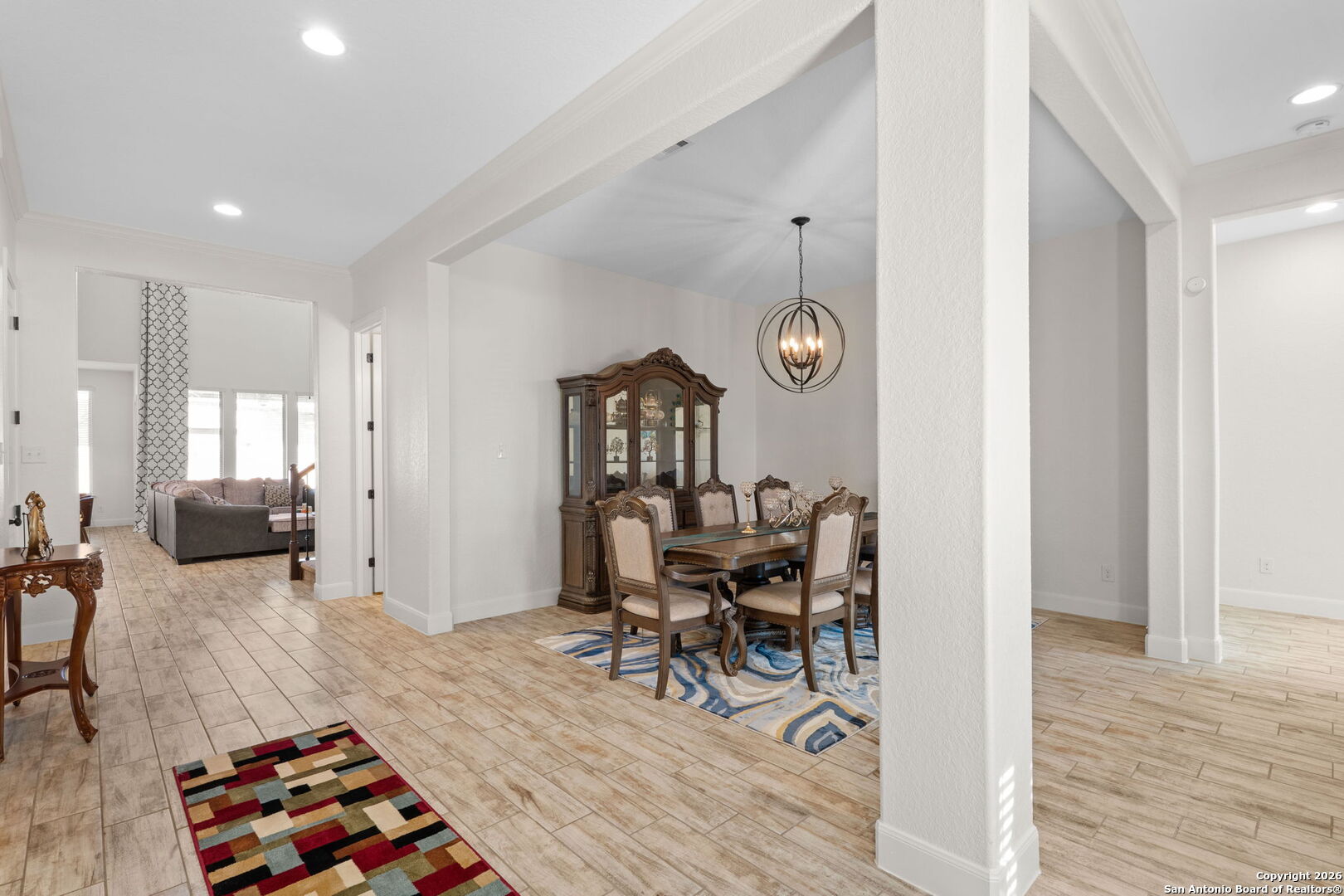 This well-maintained home offers a versatile layout with a guest suite on the main level, ideal for extended stays or multigenerational living, along with a private home office and a refined formal dining room. The main living areas feature an open floor plan complemented by high ceilings, recessed lighting, and abundant windows that allow natural light to fill the space. Ceramic tile flooring with a wood look provides durability and a cohesive design throughout the primary living areas. The living room features a stone fireplace and flows seamlessly into the kitchen, creating a comfortable setting for everyday living and entertaining. The kitchen is equipped with stainless steel appliances, a gas cooktop, and a large kitchen island with breakfast bar, offering excellent functionality and gathering space. A beautiful handrail leads upstairs to a loft that can be used as a game room, along with an additional theater room, providing multiple options for entertainment and flexible use. The backyard includes a covered patio slab and privacy fence, ideal for outdoor relaxation. Additional highlights include a RainSoft EC5 water softener system that conveys with the property, features a 10-year warranty, has been recently serviced, and requires no maintenance until December 2028. The location offers easy access to Loop 1604 and Highway 151, with convenient proximity to SeaWorld, Northwest Vista College, and Lackland Air Force Base. Situated within Northside ISD and zoned for William J. Brennan High School.