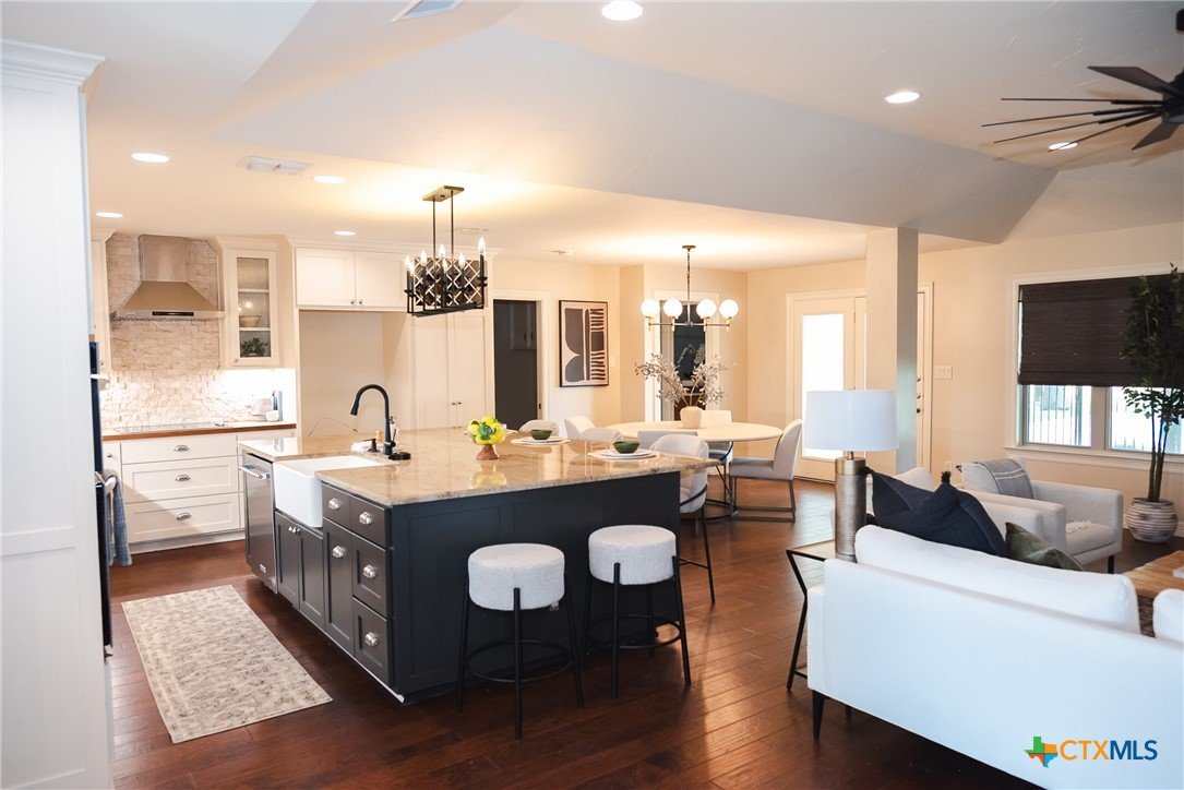 Home is located in Historic Gruene in the heart of New Braunfels Texas! Walk or drive your golf cart to enjoy the shopping, eating and recreational opportunities that this coveted area offers. Minutes from HEB and Creekside retail center, this location offers everything you need within a very small radius. The house really checks the boxes when it comes to space and layout. 4 Beds, 3 baths and 2 flex spaces that can be used as an office, game or play room etc. Home was renovated in 2014 to open up the floor plan and give it a more modern layout and feel. Open kitchen, living and dining family space with a huge kitchen island. Home offers ample closet storage and cabinet space throughout including a climate controlled closet off the garage that has been used by sellers for Christmas and holiday decoration safe keeping. Fantastic laundry/MUD room with built in lockers and 2 utility/pantry overflow closets. There is a fiberglass swimming pool, detached pool house/shop and plenty of covered outdoor living space. House will sell itself and wont last long. Owner Agent. Give me a call if you would like a tour.