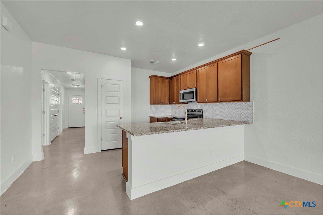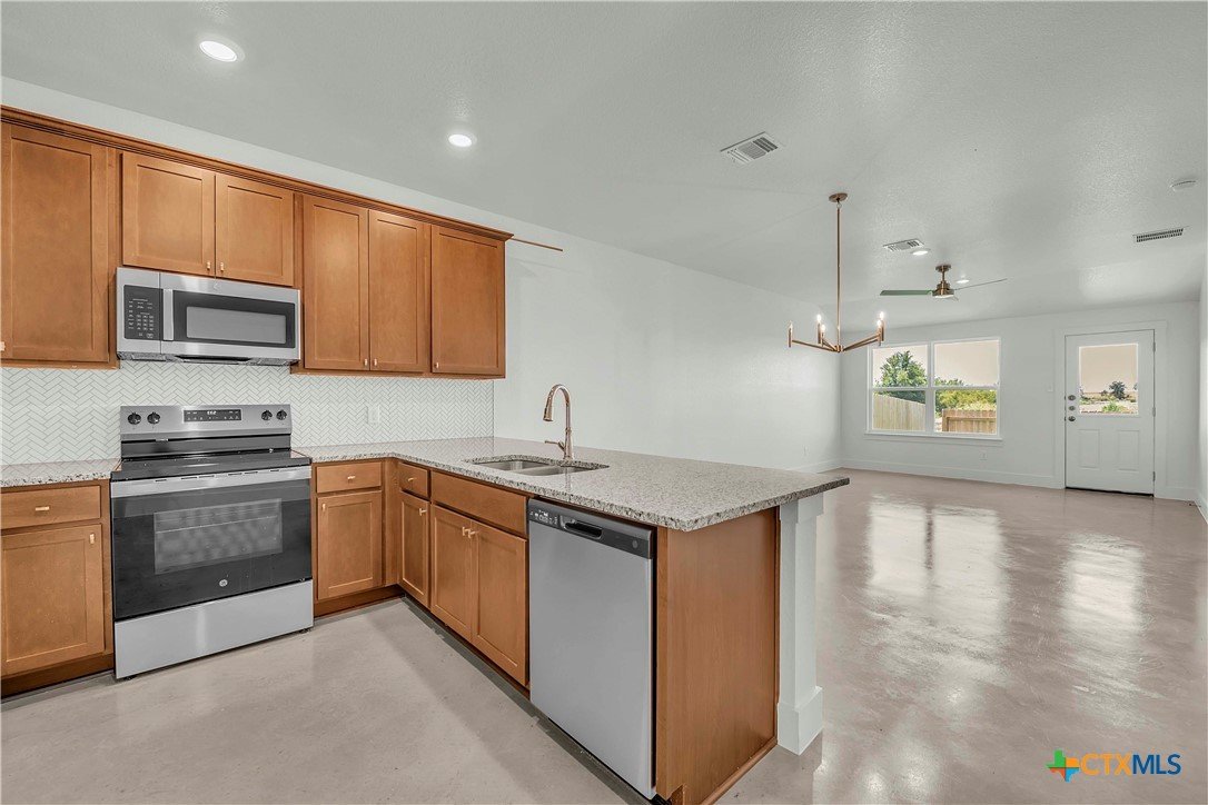 Discover the popular 'Nolan' floor plan by Flintrock Builders—a beautifully designed townhome offering 3 bedrooms, 2 bathrooms, and 1,174 square feet of thoughtfully crafted living space. This home features durable, low-maintenance sand and seal concrete flooring throughout, a fully sodded yard with a privacy fence and irrigation system, and a modern kitchen equipped with stainless steel appliances including a microwave, stove, and dishwasher. Ceiling fans in both the Master Suite and Family Room provide added comfort year-round. Known for their award-winning craftsmanship and attention to detail, Flintrock Builders continues to impress in the Parade of Homes. Please contact our sales team for complete details.