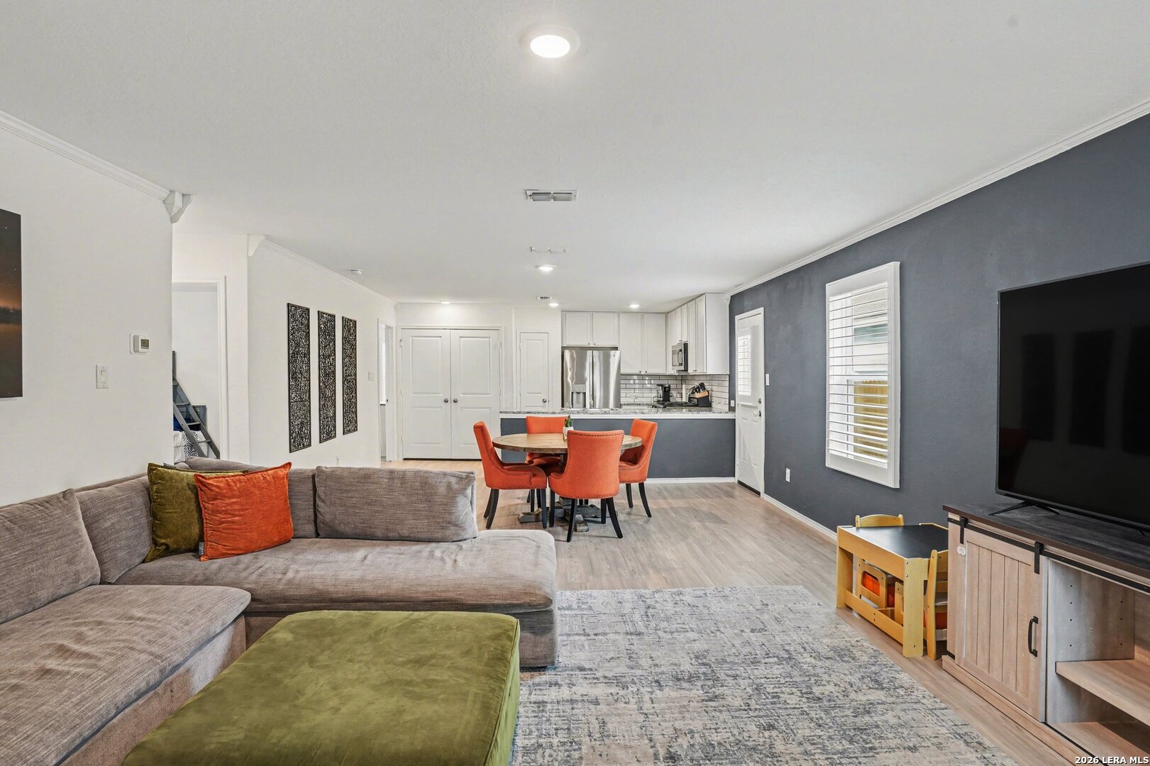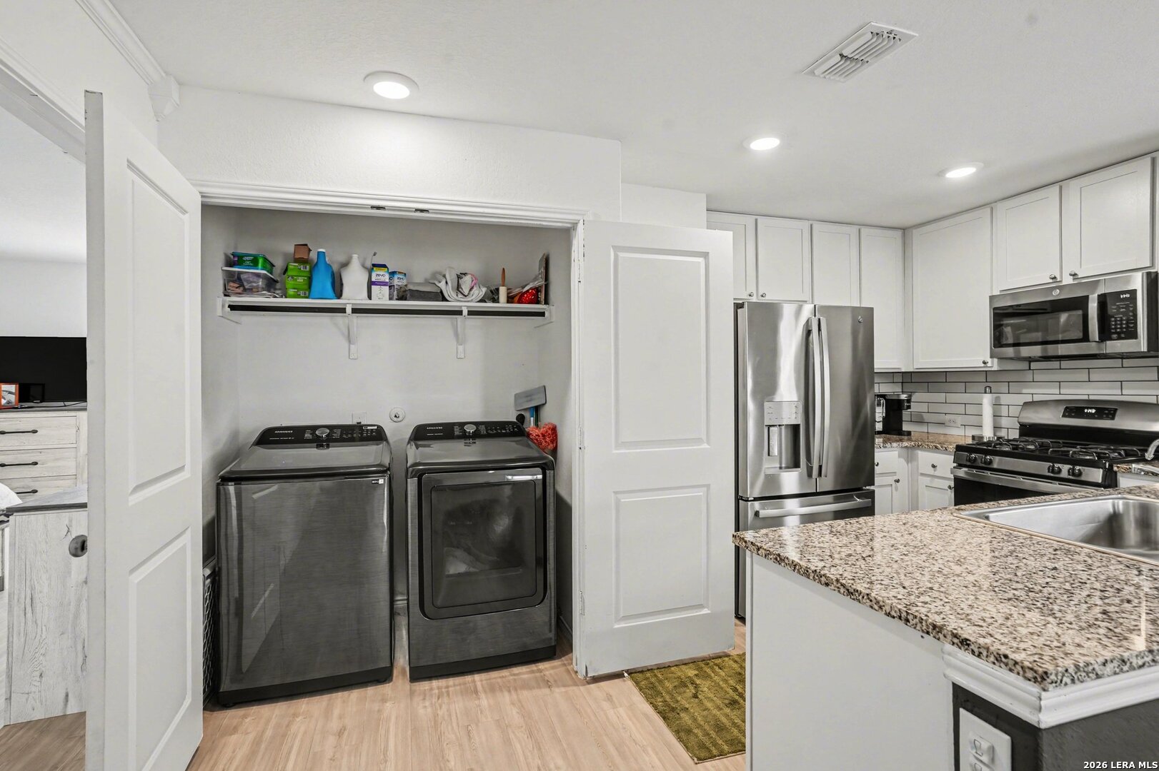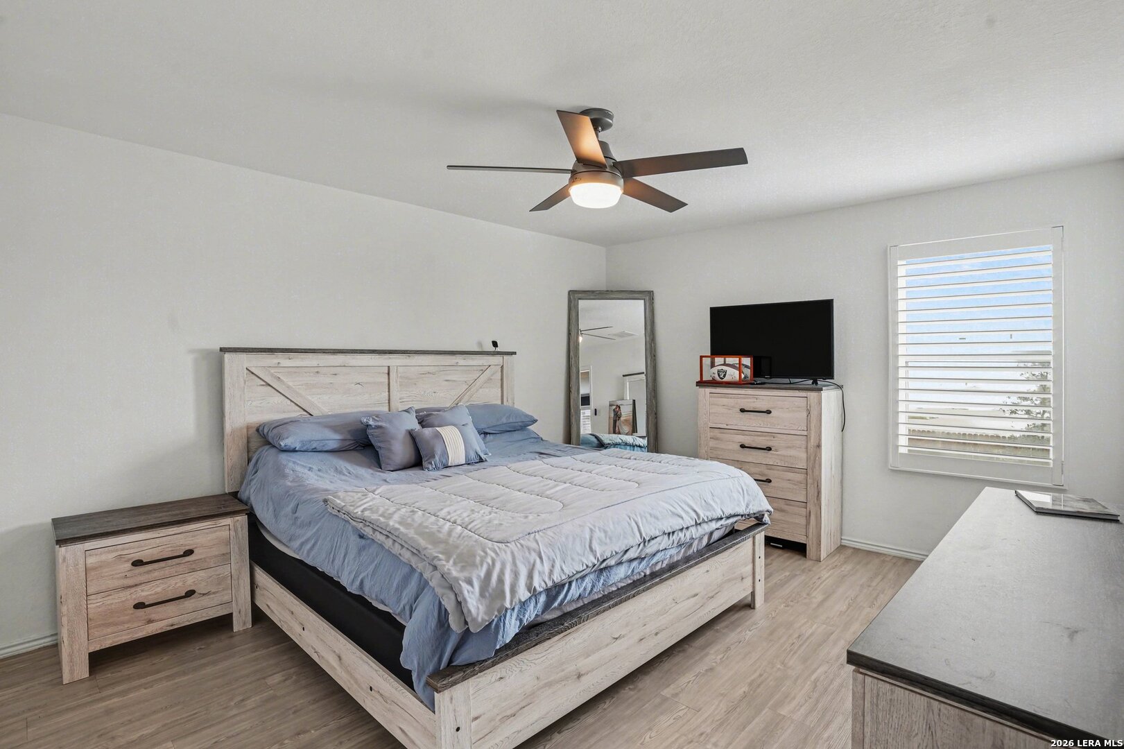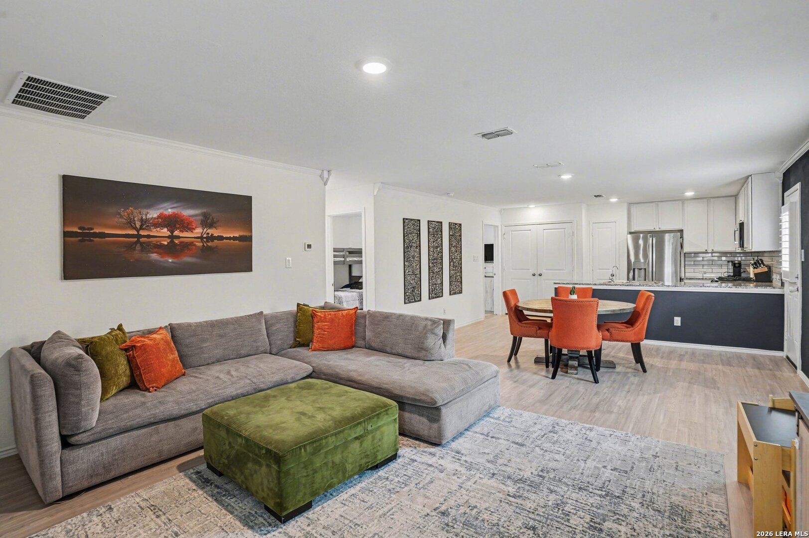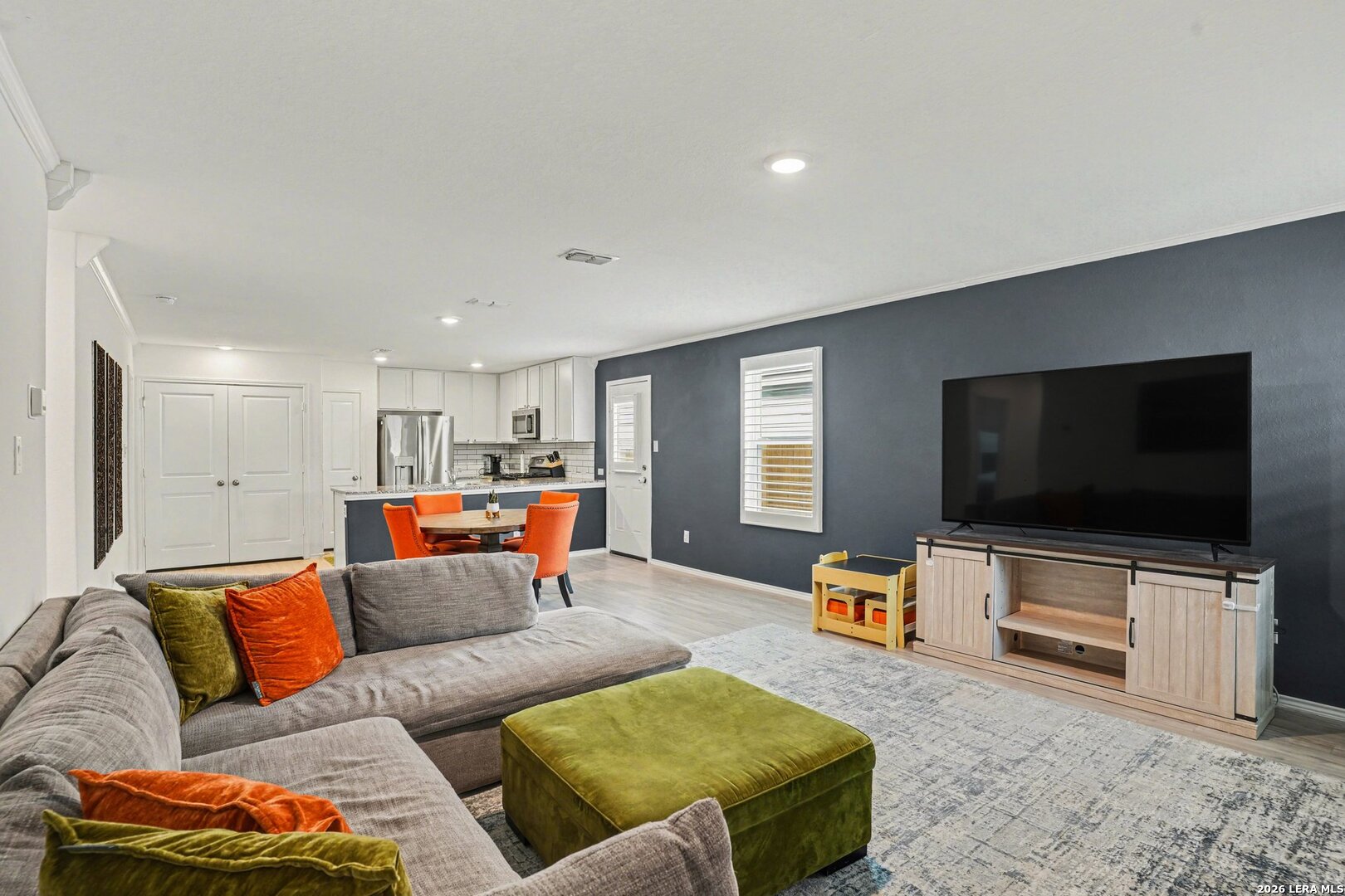 Clean and move-in ready 3 bedroom, 2 bath home featuring an open floorplan, no carpet throughout, and a spacious primary suite with a huge walk-in closet. Interior features include granite countertops, stainless steel appliances, gas cooking, crown molding, plantation shutters, and a water softener. Additional highlights include an epoxy-coated garage floor and well-maintained interior. Conveniently located with easy access to Loop 410 and Hwy 151, less than 5 miles from Lackland AFB, shopping, and dining.