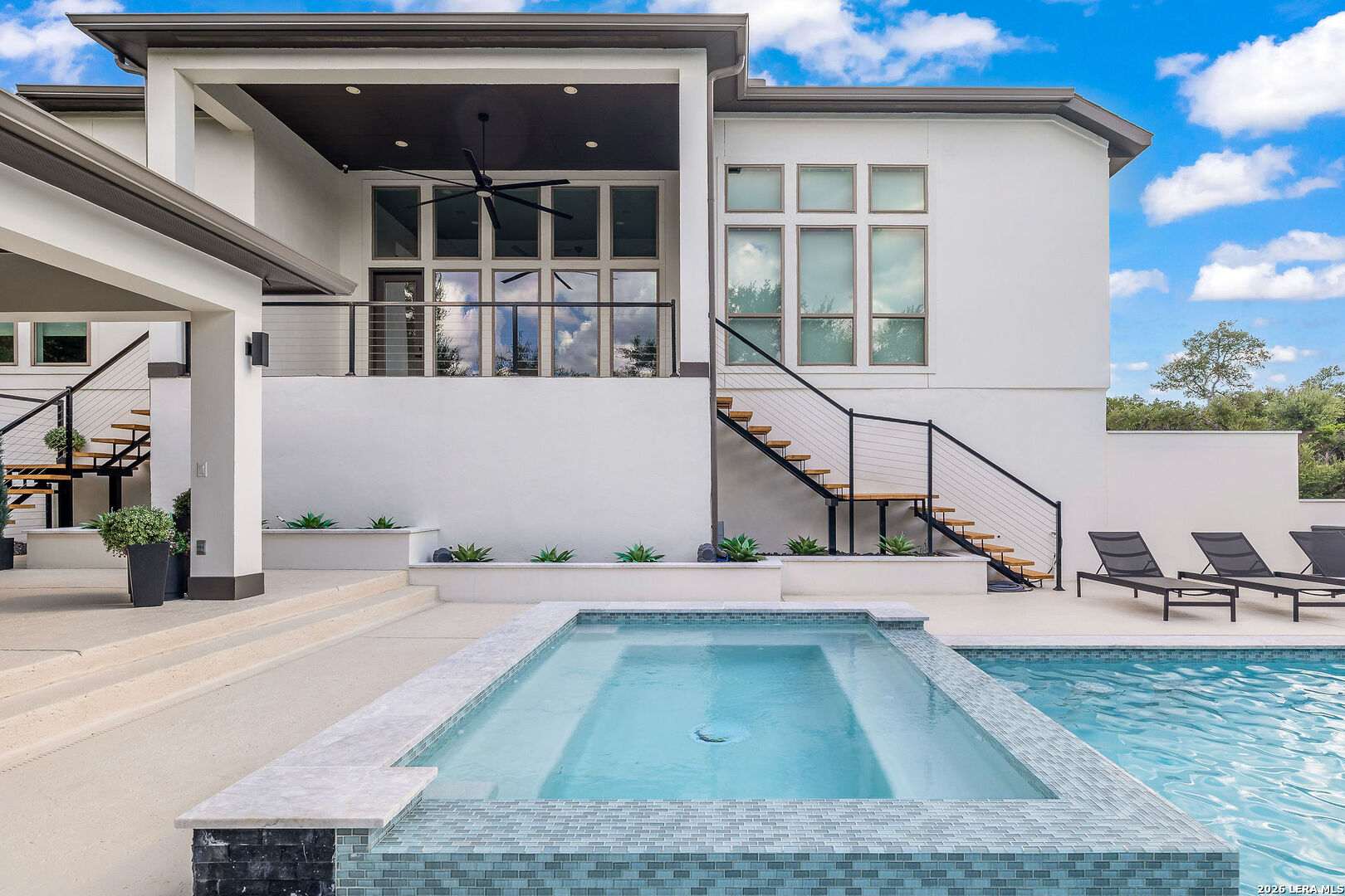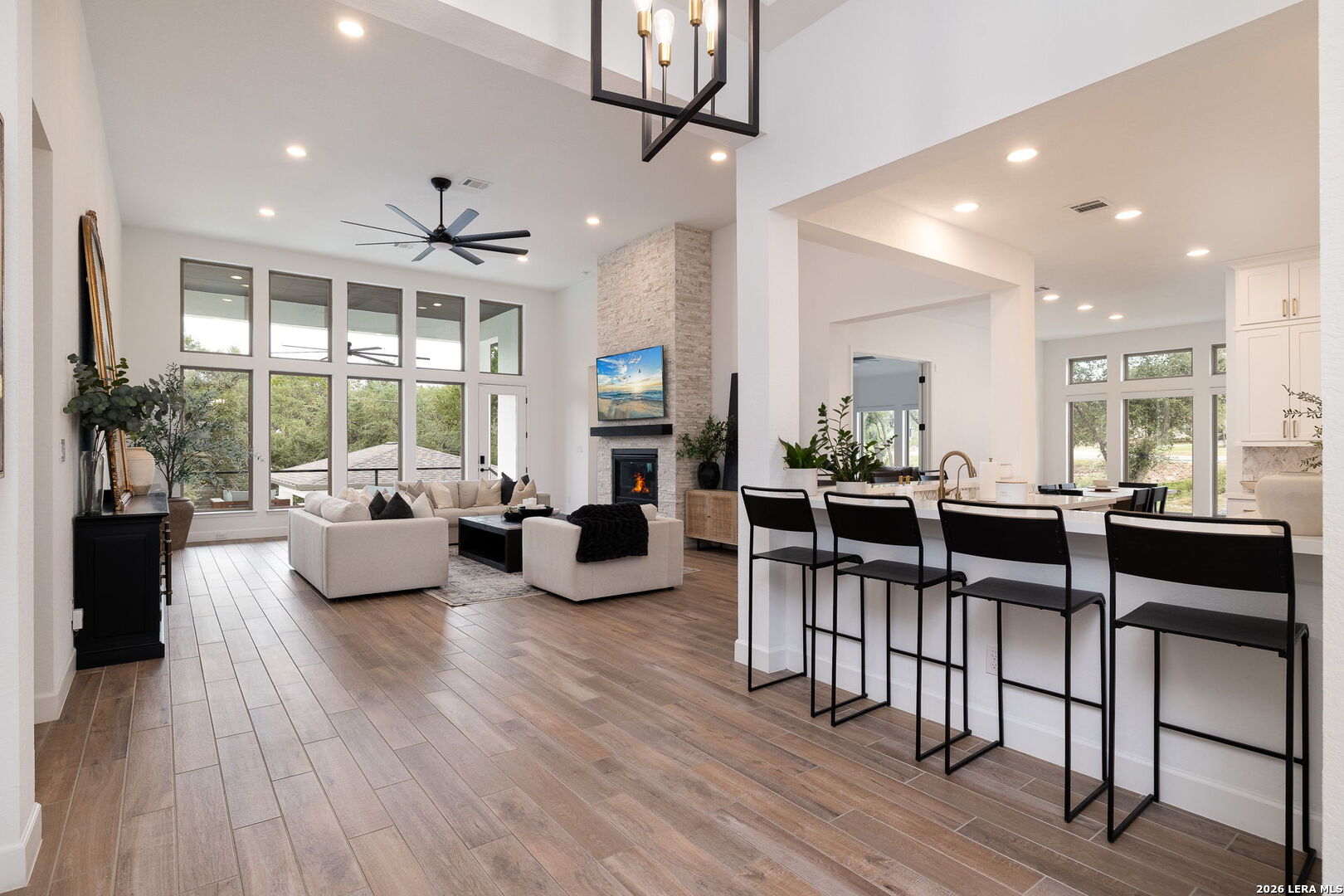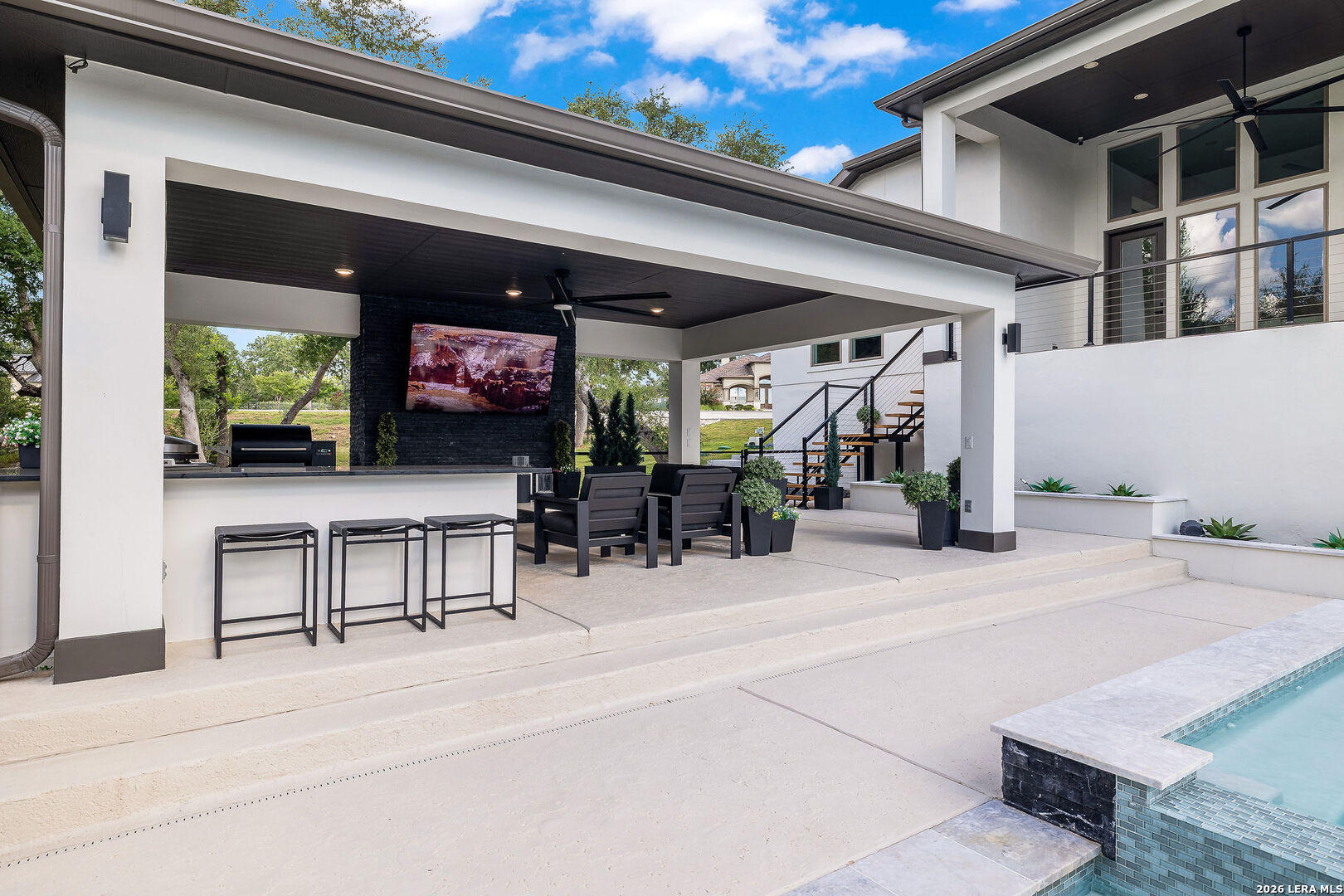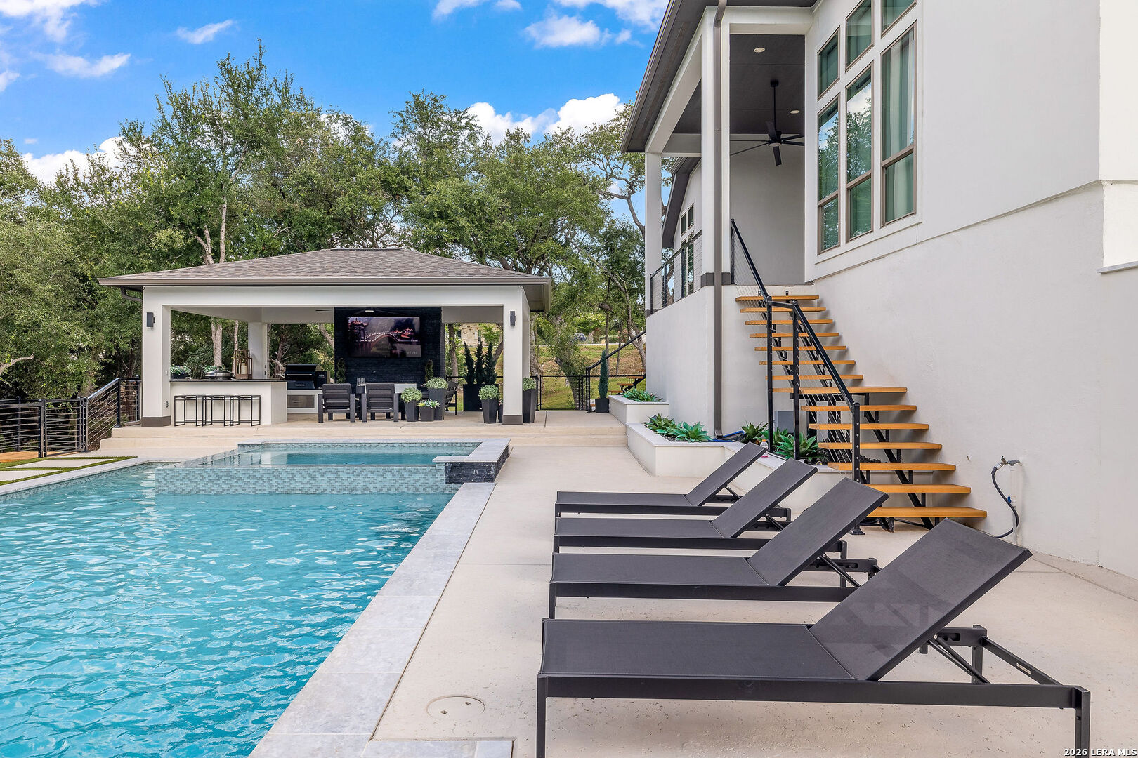 Situated on a private one-acre lot in the highly regarded Vintage Oaks community, this nearly 4,000-square-foot residence offers an ideal balance of scale and everyday functionality. The home is defined by an open, single-story floor plan with 14-foot ceilings and a grand double-door entry that establishes a sense of space the moment you arrive. Designed for those who value clean lines and low-maintenance living, the interior features hard flooring throughout-with no carpet-and custom electric shades that manage the abundant natural light. The kitchen is designed with extensive cabinetry and an open layout that transitions naturally into the main living areas and a dedicated executive office with built-in cabinetry. The outdoor living space is an extension of the home, featuring a tiered layout with a spacious covered deck leading down to a pool and spa. A large, detached cabana, complete with a stone fireplace and a fully equipped outdoor kitchen, provides a dedicated space for hosting year-round.