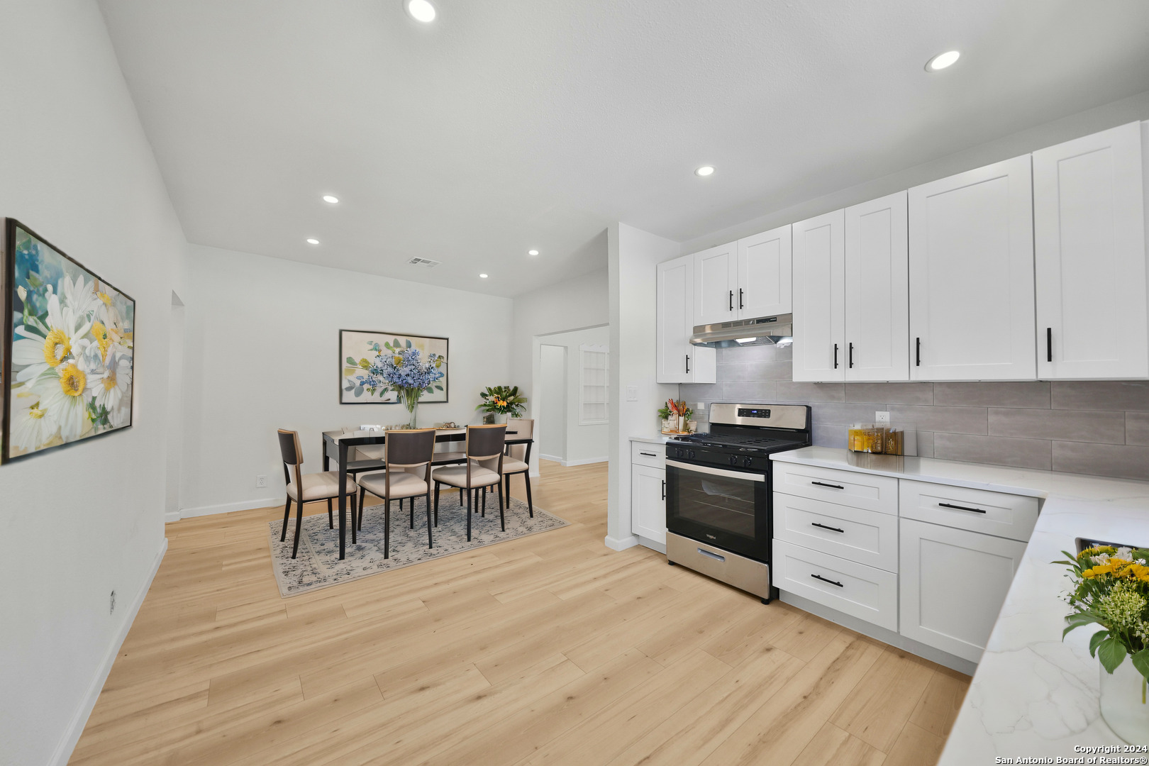 Come take a look at this meticulously updated 4-Bedroom 3 Bath residence in the highly sought after Highland Park Estates. This exquisite home boasts four generously sized bedrooms and three full bathrooms, two of which are elegantly modernized with walk-in showers, stunningly tiled walls and contemporary vanities. The kitchen is equipped with ample cabinetry, a new dishwasher and stove all complemented by luxurious quartz countertops.