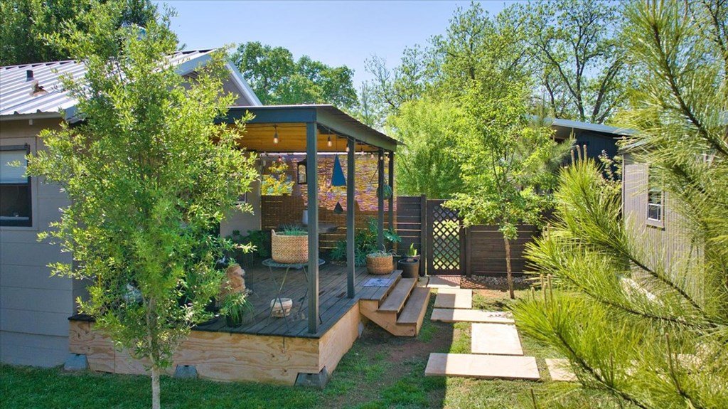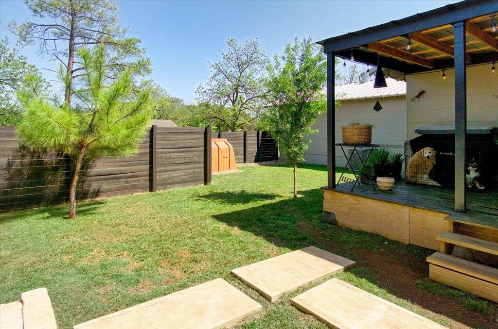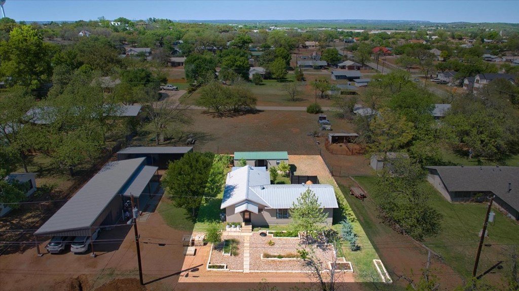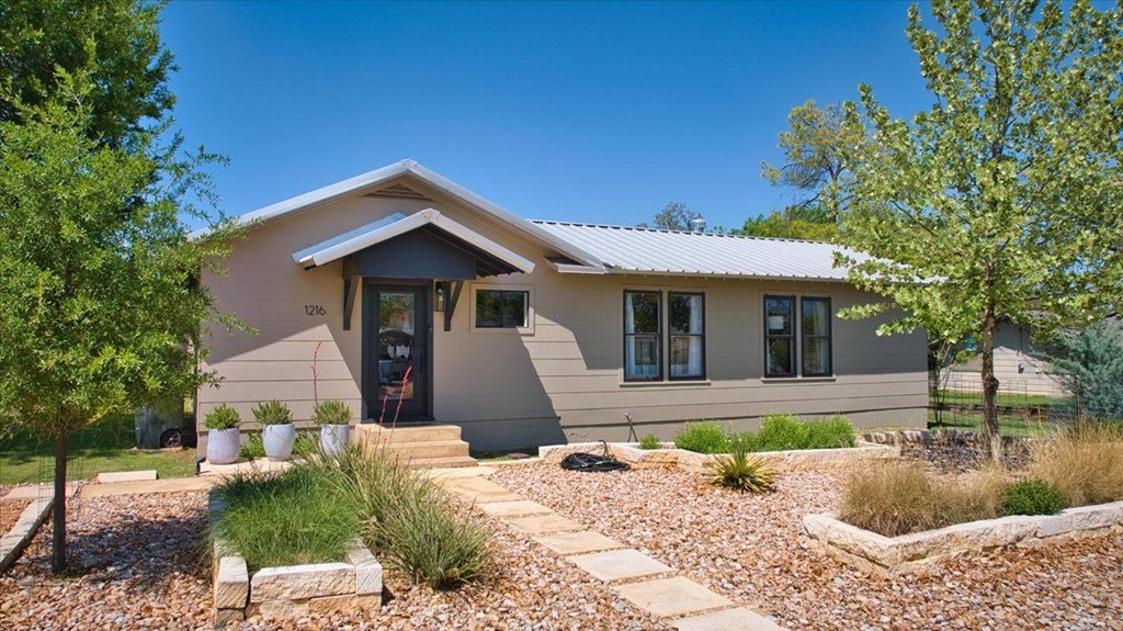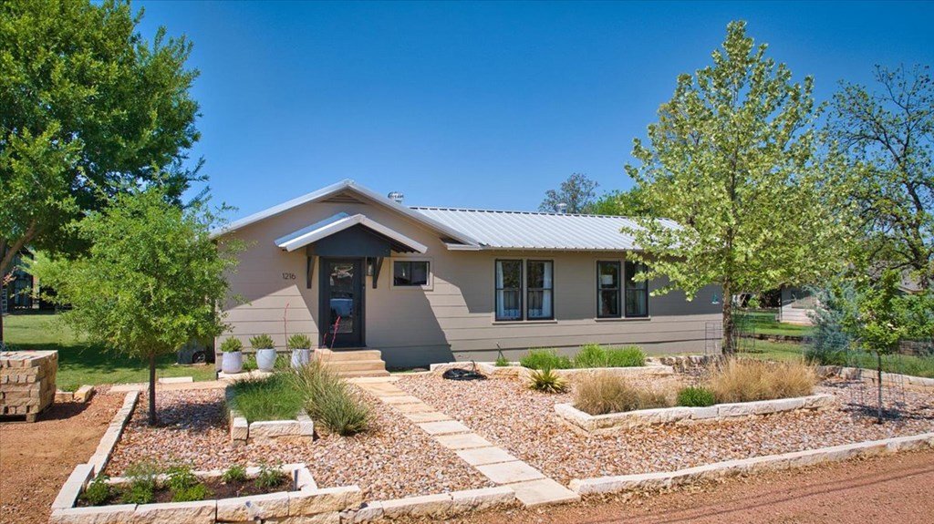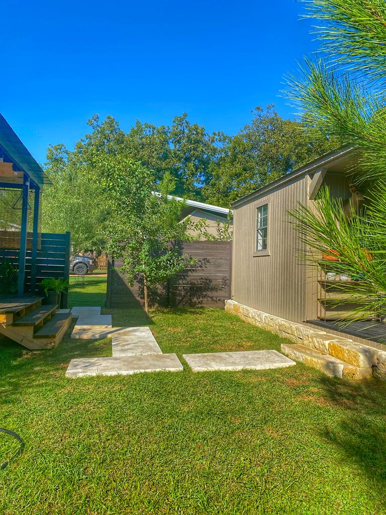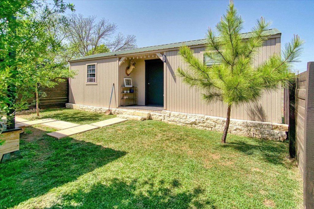 Located just a short walk from Mason ISD, this 2-bedroom, 1.5-bath home has been beautifully remodeled. Accent walls add character, while large windows keep the space bright and airy. The open layout features durable laminate floors and thoughtfully designed bedrooms. The master bathroom includes a relaxing tub-shower combo. The kitchen stands out with floating cabinets, modern appliances, a large stainless steel sink, and butcher block countertops. Out back, there's a 12x32 detached 2-bedroom building—perfect for guests, a home office, or extra storage. The yard is landscaped for low maintenance and great curb appeal.