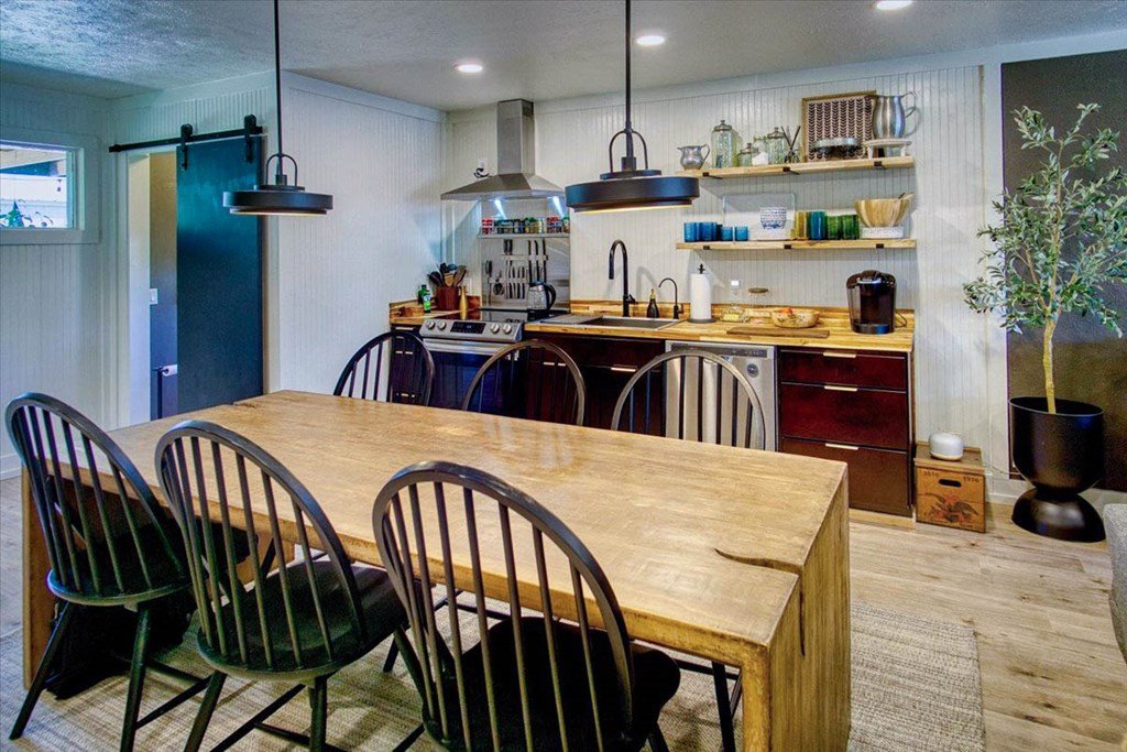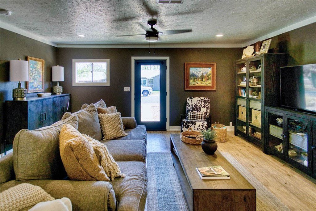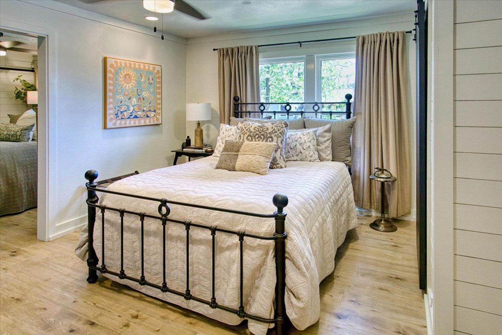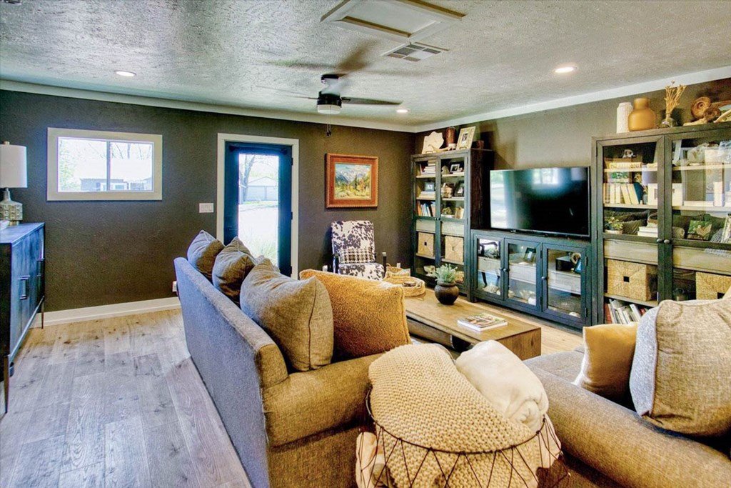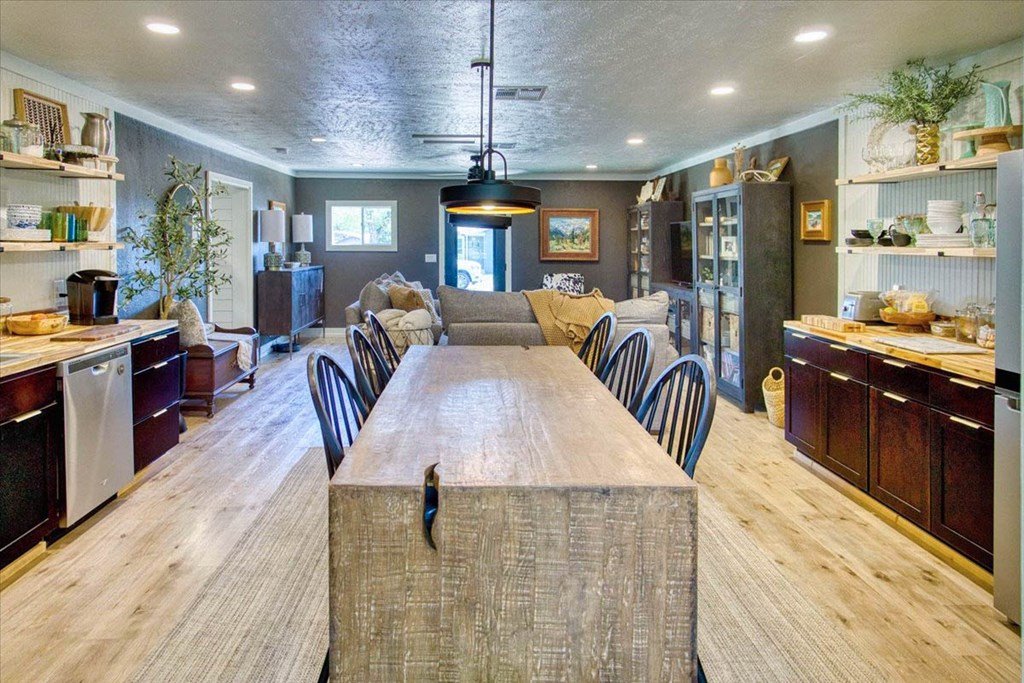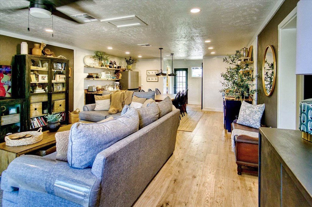 Located just a short walk from Mason ISD, this 2-bedroom, 1.5-bath home has been beautifully remodeled. Accent walls add character, while large windows keep the space bright and airy. The open layout features durable laminate floors and thoughtfully designed bedrooms. The master bathroom includes a relaxing tub-shower combo. The kitchen stands out with floating cabinets, modern appliances, a large stainless steel sink, and butcher block countertops. Out back, there's a 12x32 detached 2-bedroom building—perfect for guests, a home office, or extra storage. The yard is landscaped for low maintenance and great curb appeal.